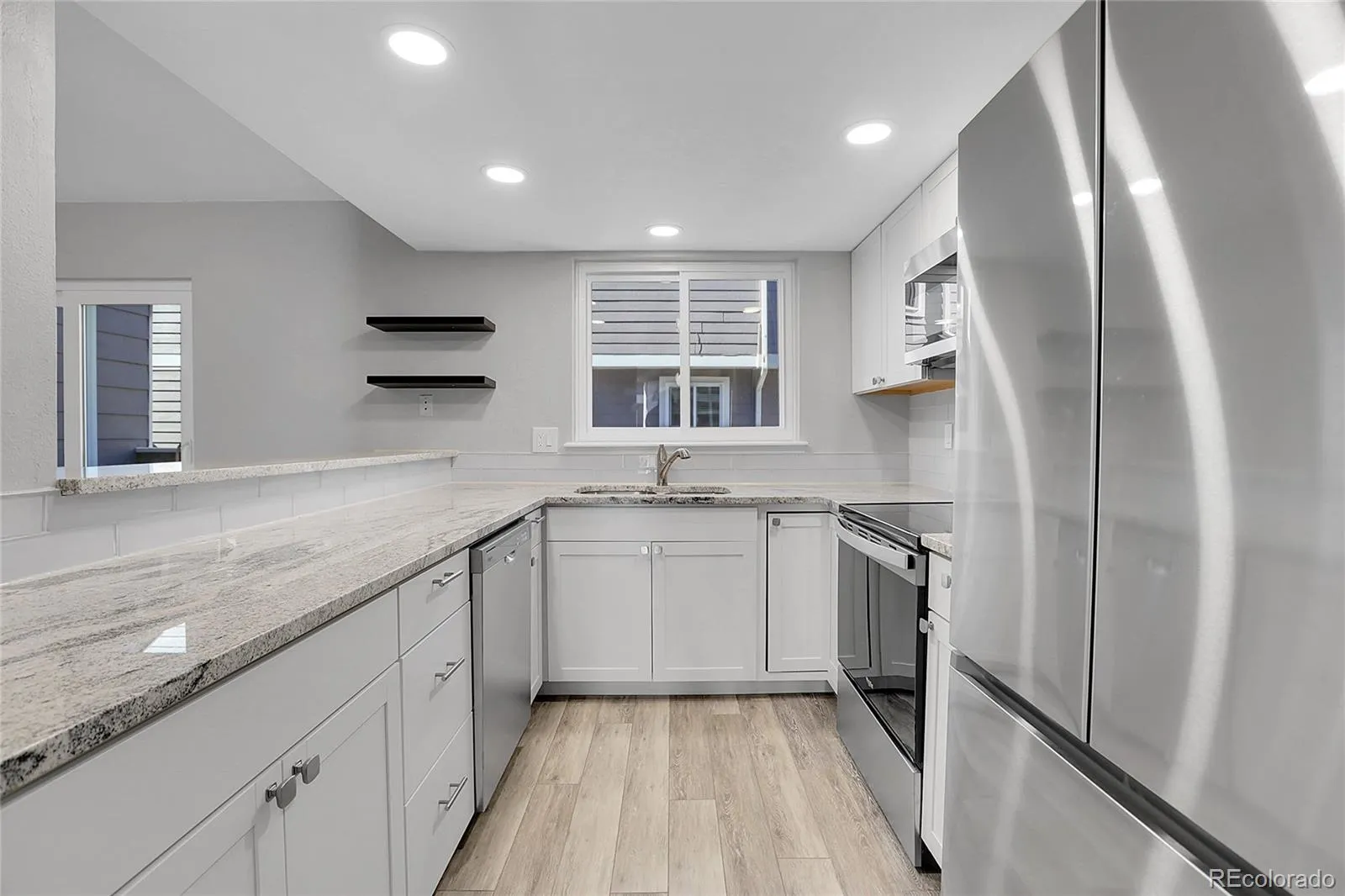 Complete remodel, windows, doors, all appliances, garage door, flooring, kitchen, plumbing under sinks , tile in bathrooms and fixtures, all outlets and switches including light fixtures, light fixtures have nightlight and change color.