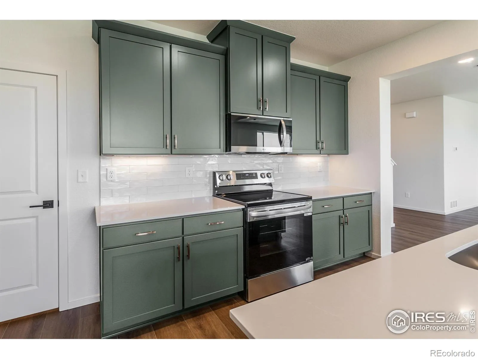 Experience modern elegance in the Oakley floor plan by Hartford Homes. This stunning NEW two-story home offers a perfect blend of style and functionality, featuring a spacious chef’s kitchen with a large island, walk-in pantry, quartz countertops, and sleek stainless steel appliances-including a gas range, refrigerator, dishwasher, and microwave. Enjoy designer finishes throughout, including eucalyptus-painted maple cabinetry, luxury vinyl plank flooring, and quartz surfaces in both the kitchen and baths. A main-level bedroom and bath provide flexibility for guests or a private home office. Upstairs, you’ll find four generous bedrooms, a versatile loft, and a conveniently located laundry room-complete with washer and dryer (the luxury vinyl plank flooring is featured on the stair case and primary bedroom/closet as well!). Front and backyard landscaping with a sprinkler system is included, creating a move-in-ready outdoor retreat. Nestled within a vibrant community offering resort-style amenities-park, splash pad, pool, pickleball courts, corn hole, and scenic trails-this home truly has it all. Ask about current lender and cash-buyer incentives! This home is complete and move in ready!