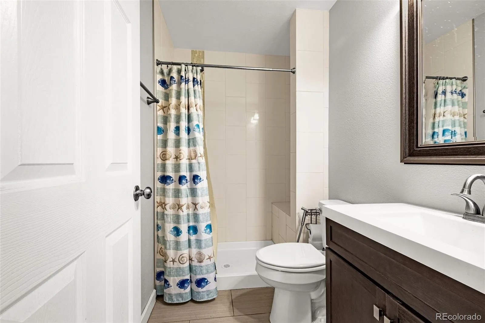 ball, and the family room’s gas fireplace is screaming for your Netflix-and-s’mores nights. The primary suite’s bathroom,
