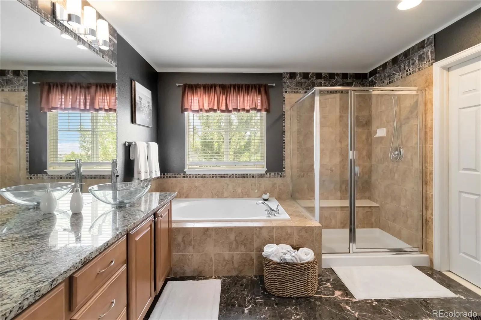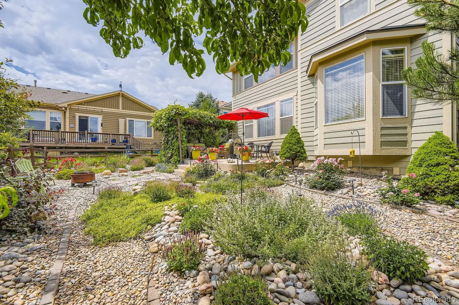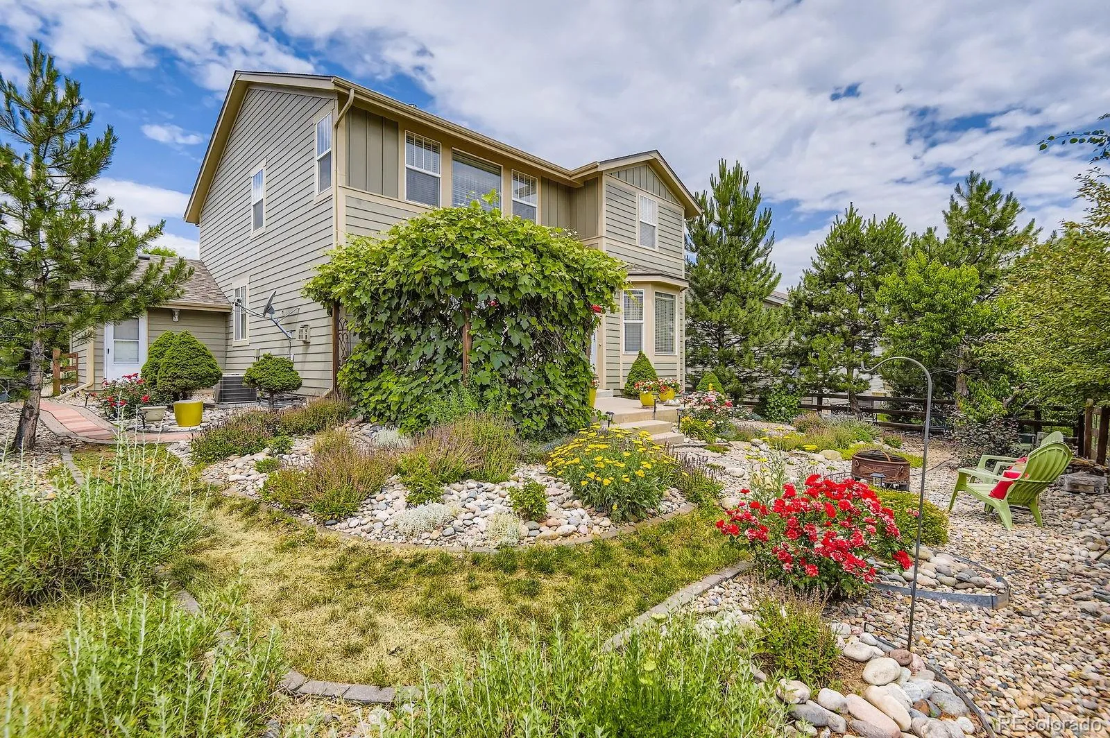 Welcome to this beautiful home nestled in the highly desired community of Chatfield Farms West. Walk inside to be greeted by vaulted ceilings, abundant natural light and lovely wood floors. Formal living and dining areas add function and flow. Main Level bedroom with 3/4 bathroom is perfect for guests. The kitchen boasts granite countertops with large island, stainless steel appliances including double ovens. The open concept floor plan creates a warm and inviting atmosphere and flows into the living area with lots of windows and cozy gas fireplace. Upstairs you’ll find a spacious primary suite with a beautiful 5 piece bathroom with double sinks and soaking tub. In addition, there is a large walk in closet. 2 additional bedrooms, a jack and jill bathroom with double sinks, and laundry room with washer and dryer included. Step outside into your serene backyard garden. Enjoy peaceful evenings in privacy under your grape vine awning. Pride of ownership is showcased throughout. This location is perfect for outdoor enthusiasts. Hike the Colorado Trail at Waterton Canyon, Paddle Board, Boat, or Camp at Chatfield Reservoir. Enjoy the expansive trail system steps away from your front door connecting to the Highline Canal Trail. Roxborough State Park and Arrowhead Golf Course are just around the corner. Award winning Douglas County School District! Don’t miss the opportunity to call this home!
