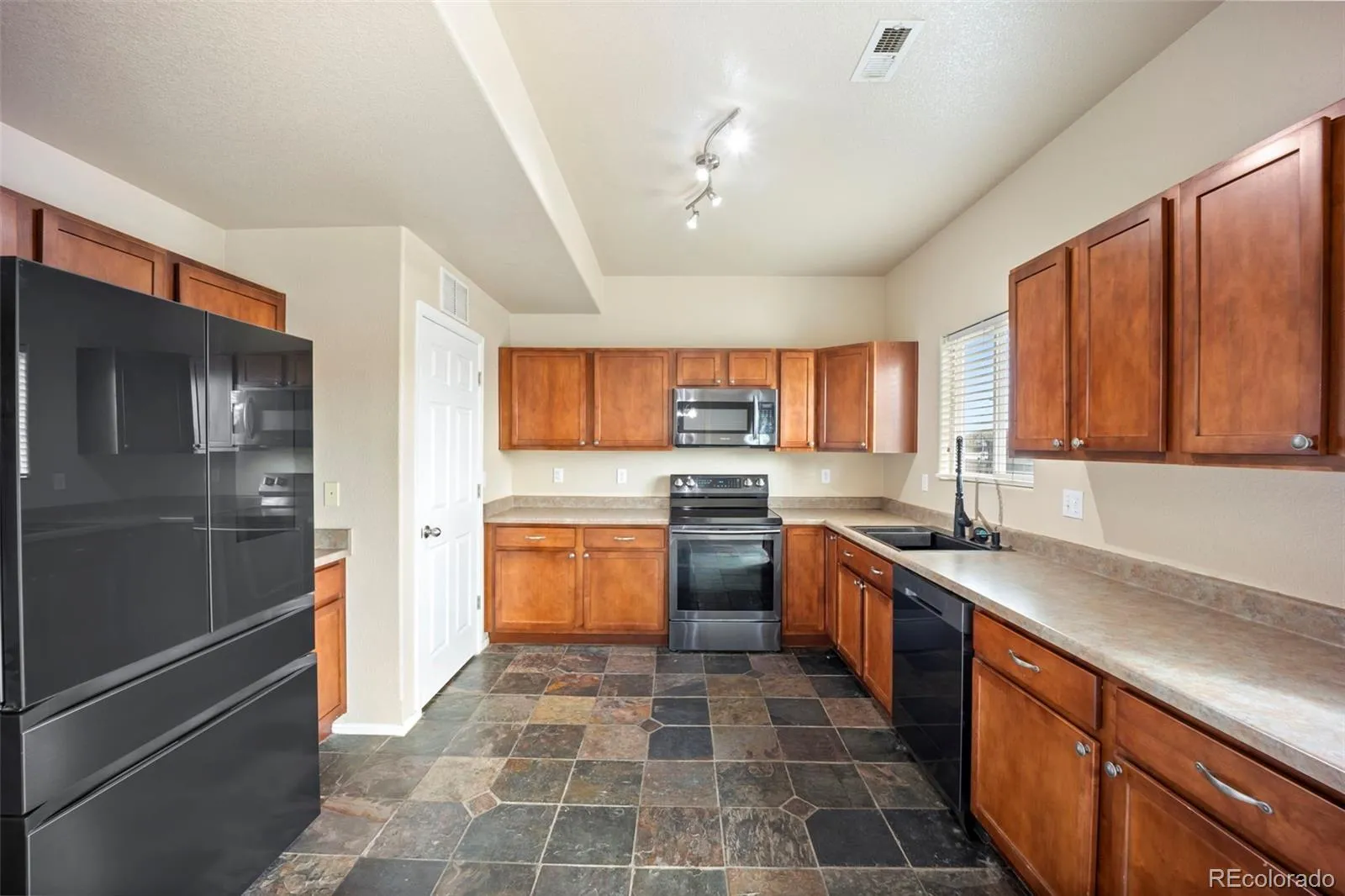 Custom Xeriscaping in the front yard, Welcomed through the covered front porch, a Stone Tile Entry opens up to a Cozy living room, Main level bedroom and half bath. With a blend of flooring updates and well-loved charm, enjoy the homey-feel of the living room seamlessly flowing into the dining area and kitchen with walk-out.