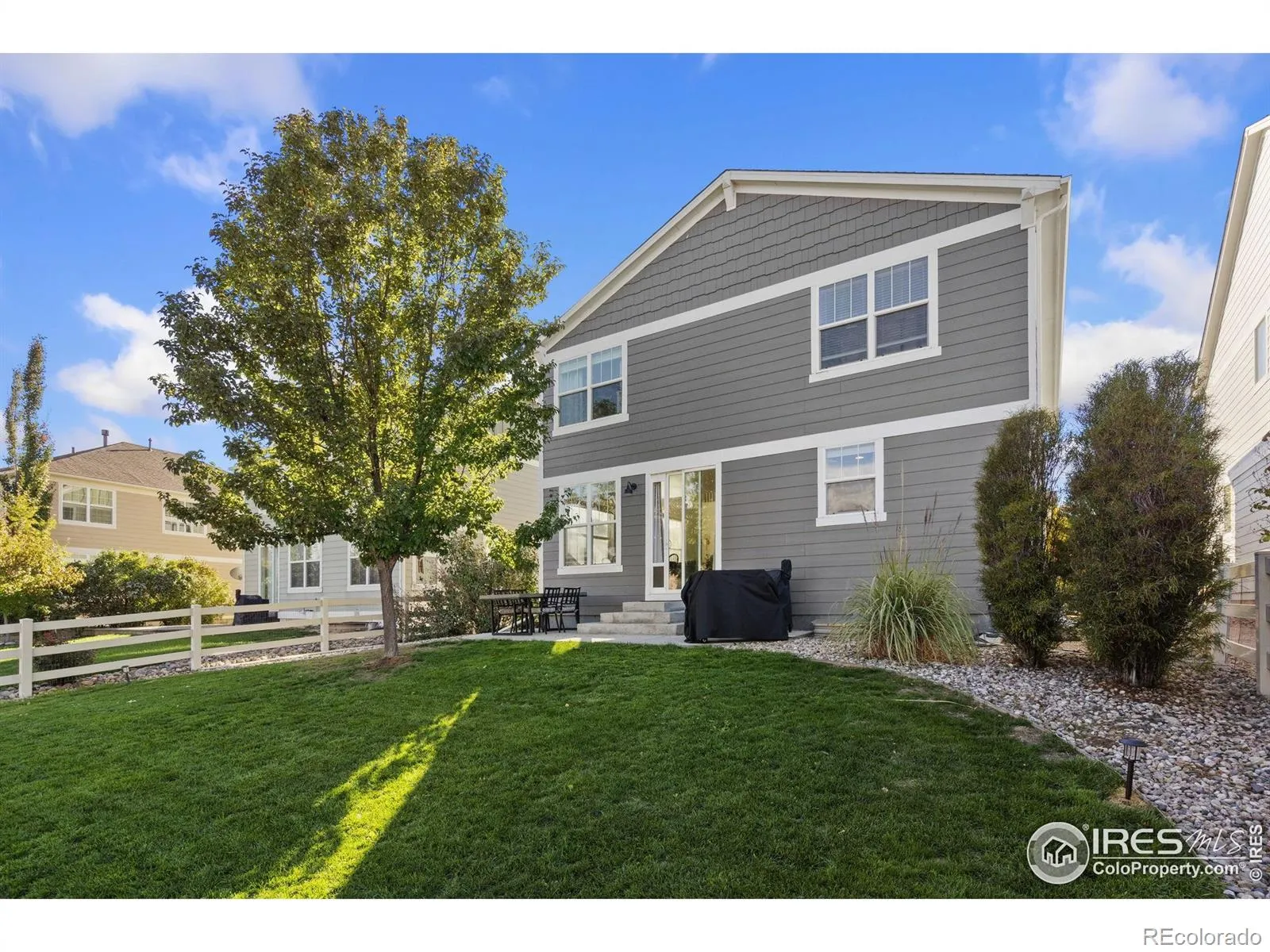 Thoughtfully designed for everyday living, this inviting two-story home offers comfort, space, and style in every detail. From the welcoming covered front porch, step inside to beautiful wood floors and an open main level filled with natural light. The great room features soaring ceilings, built-in shelving, and a cozy gas fireplace that makes the perfect gathering spot. The kitchen opens easily to the living and dining areas, as well as the back patio-ideal for family time or entertaining friends. A main-floor office provides a quiet spot to work from home or enjoy hobbies and crafts. Upstairs, the primary suite includes a spacious walk-in closet and a relaxing five-piece bath with a soaking tub and separate shower. The second bedroom has its own en-suite bathroom, while two additional bedrooms with walk-in closets share a full bath with a double-sink vanity. The laundry room is conveniently located on the same level. The oversized two-car garage-with an 8-foot door-offers plenty of room for vehicles and storage. A large unfinished basement adds extra space and future potential. Outside, the fully fenced backyard is perfect for kids, pets, and playtime. Enjoy the great trails throughout the neighborhood! Conveniently located near schools, parks, and shopping, this home is the perfect blend of comfort, function, and everyday family living.