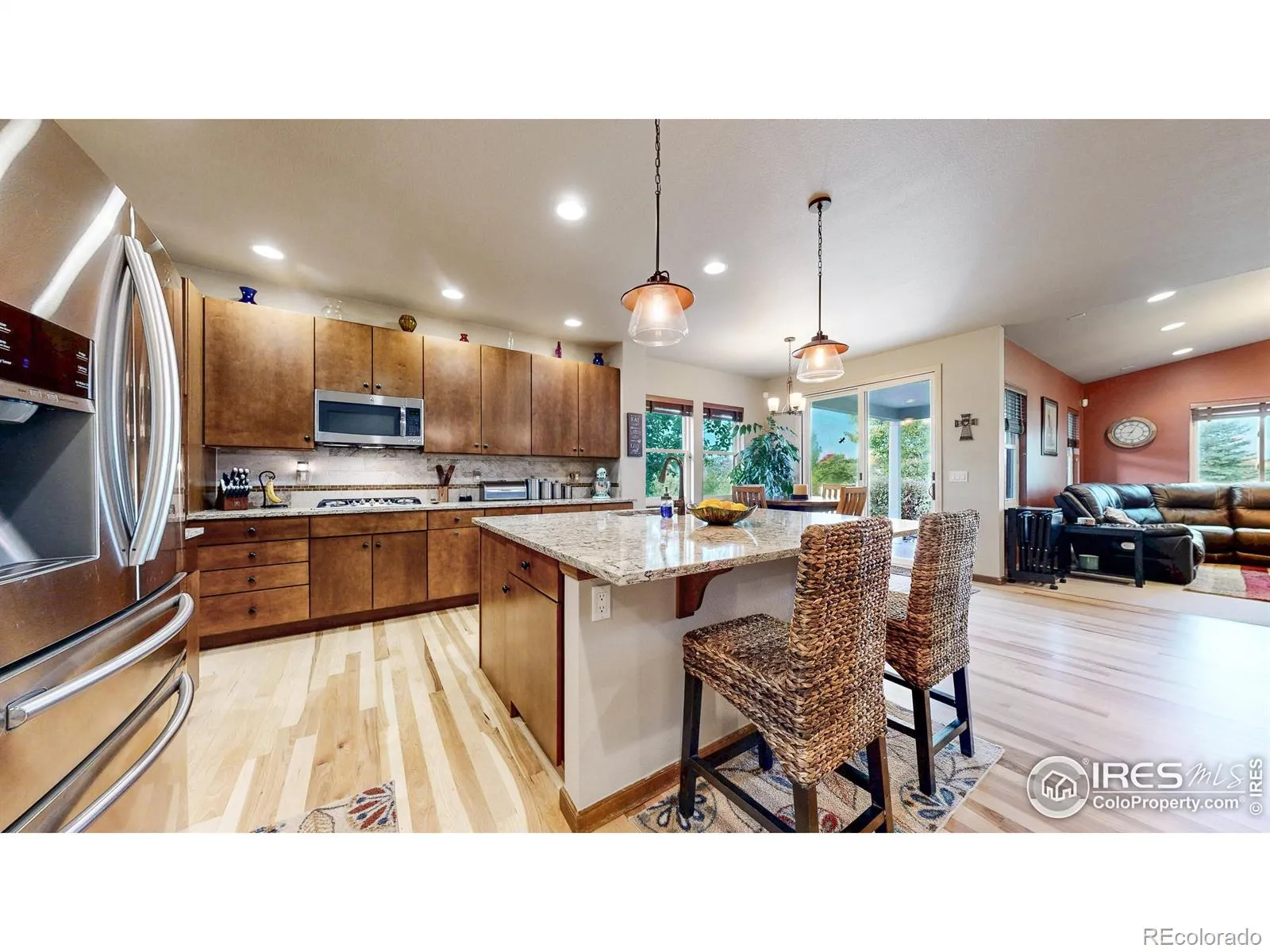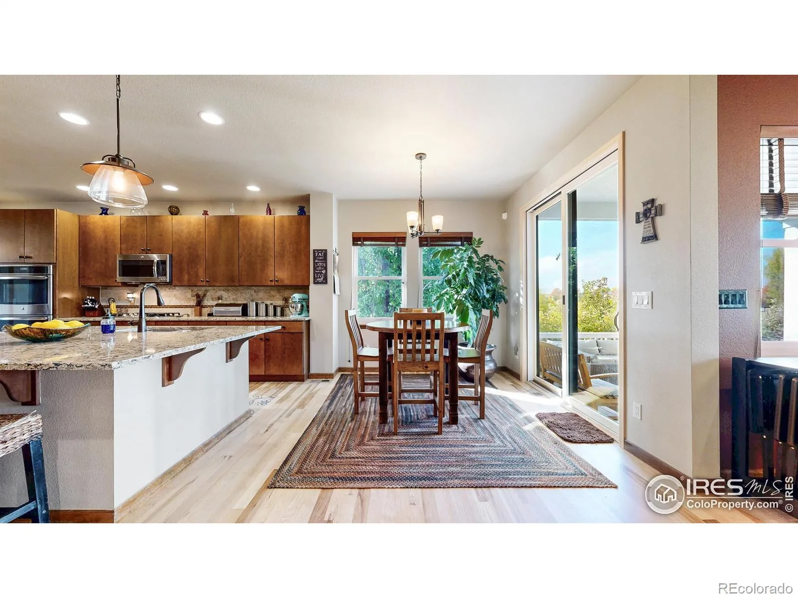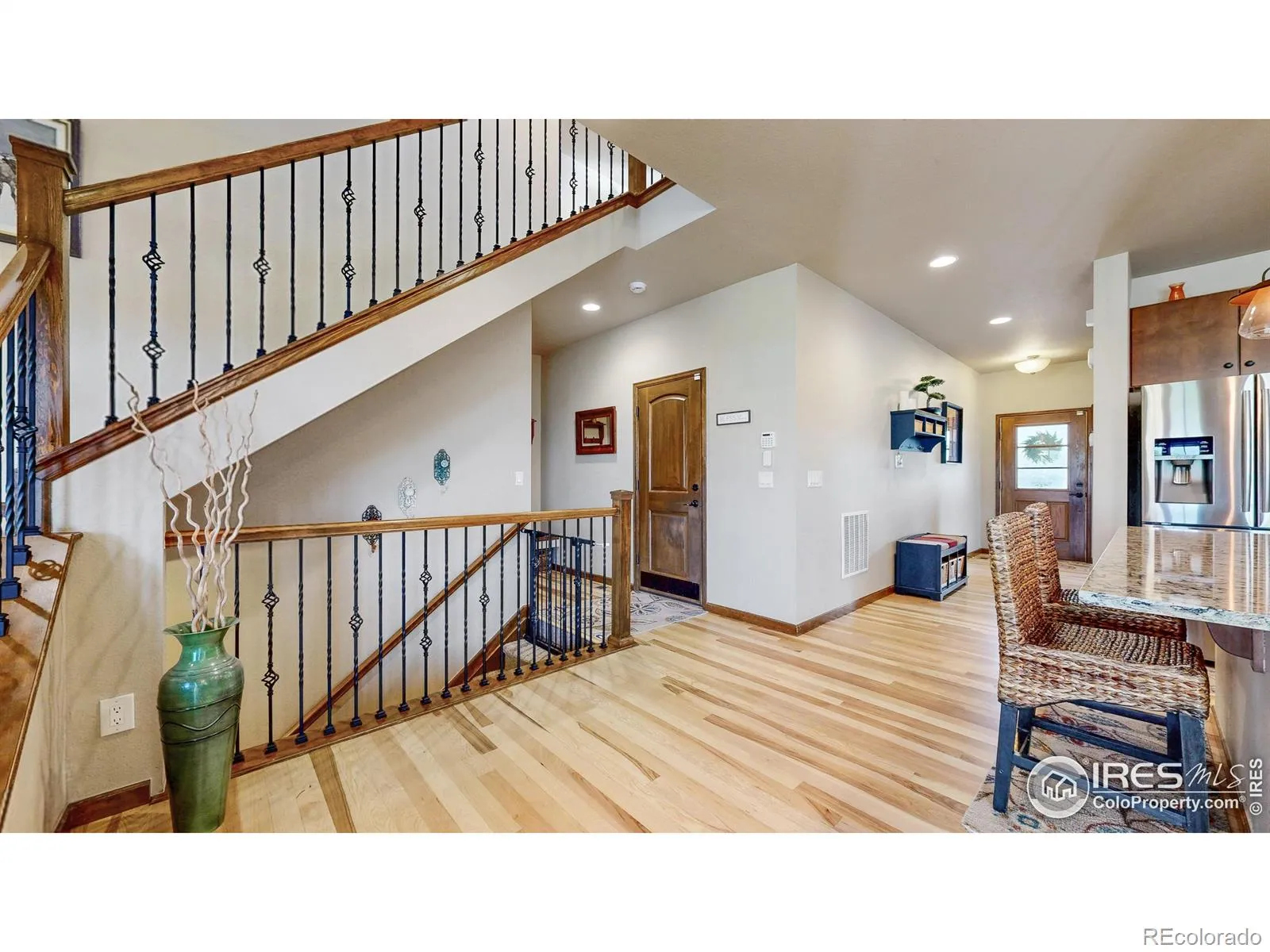 A must see home with $140k of recent improvements including windows and doors, paint, flooring, landscaping, and more. One of the best locations in McClelland’s Creek and South Fort Collins! Wide open views of the foothills as home backs to Zach Elementary School Fields & Radiant Park. No neighbor to the south abutting trail system that connects to Radian Park, Twin Silos Park, Strauss Cabin, Zach Elementary, & more for a walkable neighborhood lifestyle. Beautifully finished home including custom hardwood strip flooring, Sienna beige granite in the kitchen, all new Anderson Windows and patio door, stained trim and solid core doors, wrought-iron railing, and custom cabinets in basement. True gourmet kitchen with stainless appliances, double oven plus microwave, gas range, French door refrigerator, and large kitchen island. Main floor bedroom functions as luxury guest suite with separate 3/4 bath and living area, office, or dream kids bedroom. Main floor formal dining room or potential front office conversion. Living room features decorative and functional cast iron gas fireplace by Triangle Tube. Primary bedroom with foothills views, coffered ceiling, and five piece bathroom with extra depth soaking tub. Two spacious secondary upstairs bedrooms and functional dual sink bathroom with separator door allows two people to get ready at once. Fully finished basement with two rec room areas and wet bar w/ wine cooler designed with the functionality of a second kitchen. Beautiful backyard with covered patio, composite deck, built-in water feature, and multiple veggie gardens with split rail fence with wire mesh ready for your dog. Minutes from Fossil Creek Reservoir, 18 hole Southridge Greens Golf Course, Front Range Village, and more.