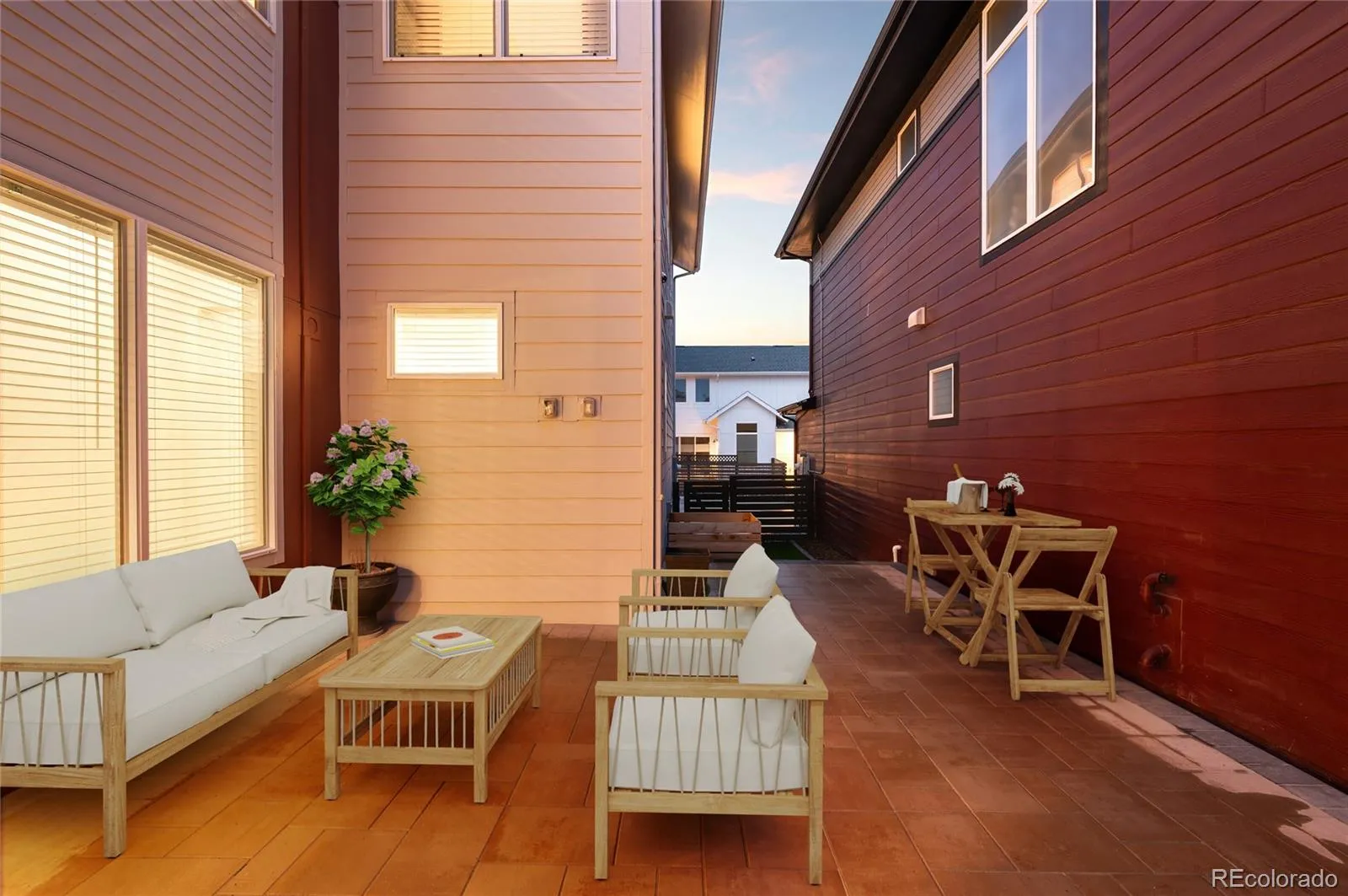 Far beyond the standard build, this west-facing 2023 Urban Contemporary home sits on a coveted green-space lot and showcases extensive upgrades, vaulted ceilings in the main living area, and modern finishes throughout. One of just 11 homes with front-facing views of the community green space, this residence offers a rare combination of location, layout, and thoughtful design. The main floor features open living, dining, and kitchen areas designed for effortless flow. The kitchen is a standout, with a large waterfall island with seating, full-height tile backsplash, stainless steel appliances, and a 6-burner gas range with vented hood. Extensive cabinetry-including storage beneath the island combine style and practicality. A designated dining area sits just off the kitchen beside sliding glass doors that open to the backyard, allowing seamless connection to the outdoors. Large windows frame views of the fenced turf yard and green space beyond, connecting to the heart of the home. The adjacent living area, with vaulted ceilings and gas fireplace, offers a comfortable space to gather. Upstairs, all four bedrooms are positioned on one level, including a spacious primary suite with room for a desk or sitting area, a walk-in closet with built-ins, and an upgraded en suite bath with dual vanities, walk-in shower, and private water closet. Three additional bedrooms share a full bath with dual sinks, and the laundry room-complete with sink and cabinetry-adds everyday ease. A flexible 12.4 x 7.7 office or study space on this level provides room for work or play. The finished basement expands the home’s versatility with a large recreation area, kitchenette, and powder bath- ideal for game nights, guests, or a home gym. Additional unfinished space provides storage for gear or seasonal items. With a tandem three-car garage, premium west-facing green-space lot, and proximity to trails, open space, and Boulder, this home pairs modern design with an effortless sense of livability.