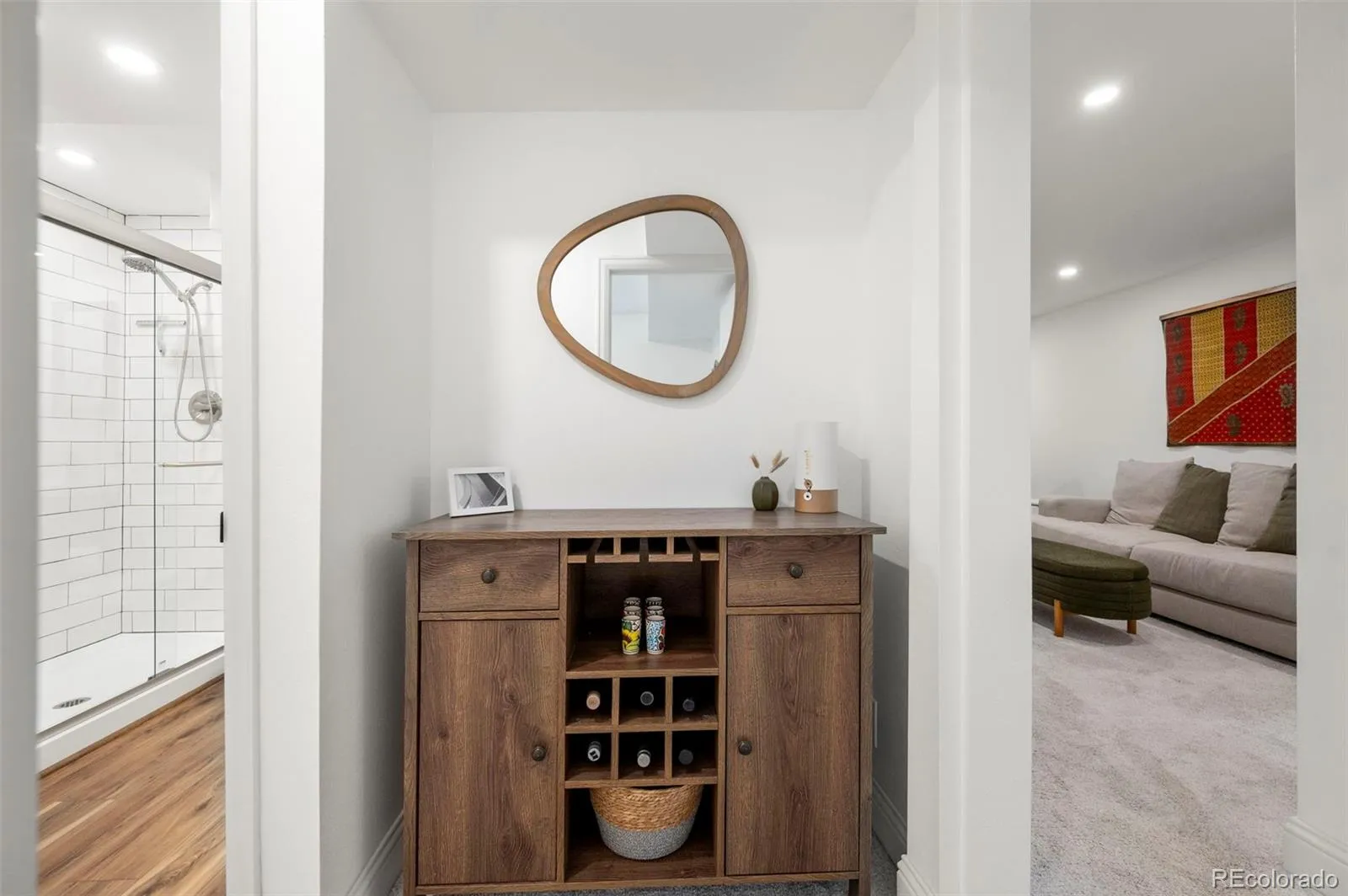 The main level offers three comfortable bedrooms and a remodeled full bath. Downstairs, the finished basement provides two conforming bedrooms with egress windows and large closets, a stylish ¾ bath, and a spacious flex area ideal for movie nights. The oversized laundry room adds storage and convenience.