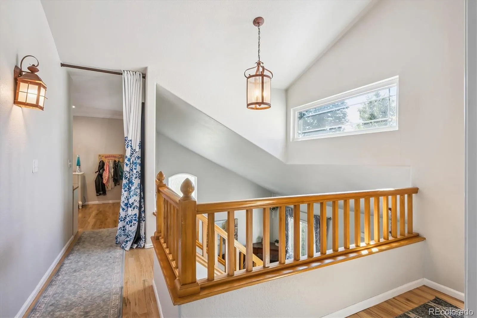 Welcome Home to this beautifully maintained and thoughtfully upgraded property backing to a serene greenbelt. Step inside to a welcoming foyer and soaring vaulted ceilings that create a grand, open feel. The gourmet kitchen features granite countertops, a gas range with double oven, and a triple-filtration water system with softener. Enjoy cozy evenings by the gas fireplace in the living room, accented with stone and custom built-ins. Upstairs, the primary suite boasts double doors, vaulted ceilings, a spacious 5-piece bath with soaking tub, and a large walk-in closet. Gorgeous oak wood floors span the main level, with wood flooring in the loft upstairs and upper bedrooms. The partially finished basement offers incredible flexibility—complete with a wine cellar, wet bar, Murphy bed, and great storage. Step outside to your private backyard oasis featuring mature trees, a stone fire pit, water feature, flagstone walkways, and vibrant landscaping including rose bushes and tulips. The backyard also has gate access on both sides, a doggy door, and a sprinkler system. Additional highlights include: newer triple-pane windows (excluding basement), tankless water heater, attic fan, formal living and dining rooms, south-facing driveway, 3-car garage with attic storage, newer garage door springs, and a 2016 Class 4 impact-resistant roof. A short stroll away, you’ll find downtown Parker’s vibrant amenities—including the Sunday Farmers Market, library, PACE Center, charming shops, and local restaurants. Enjoy easy access to year-round community events, all within walking distance. This home has been lovingly cared for and it shows—schedule your tour today!
