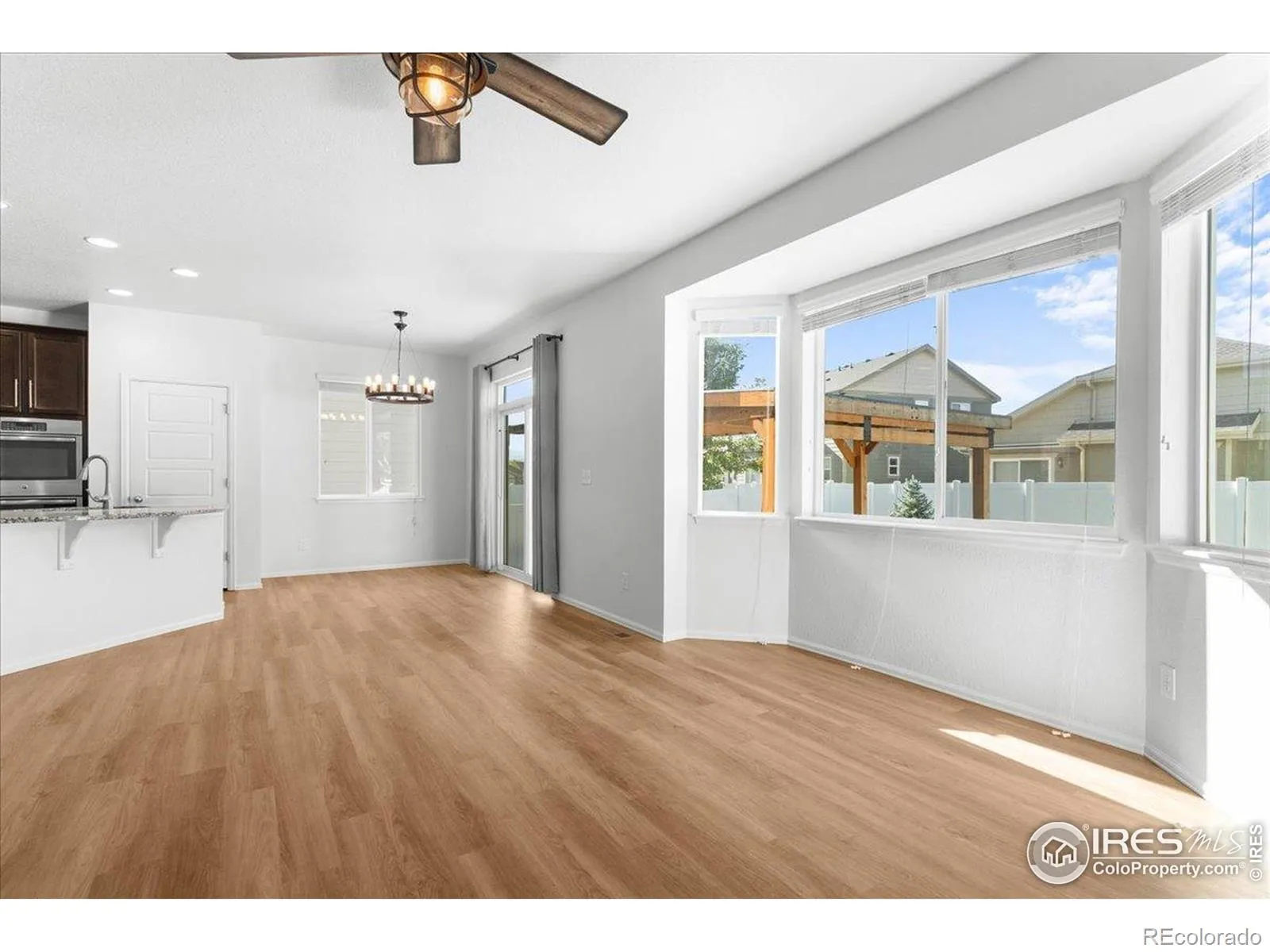 OPEN HOUSE SAT 1-3! Blend comfort, style & Colorado living! This beautifully maintained 3-bed, 3 bath home offers the perfect balance of modern finishes and timeless warmth. Main floor features brand-new luxury vinyl plank flooring while upstairs boasts stylish, untouched carpet, creating a perfect blend of durability & comfort. The open-concept layout flows seamlessly, making it easy to host gatherings, prepare meals, or simply relax together. Main level office area, updated kitchen w/ granite countertops, stainless steel appliances, thoughtful modern touches, & a cozy gas fireplace create the ideal setting for enjoying Colorado winters. Whole-home humidifier ensures comfort during the dry season. Room to grow in the unfinished basement – whether you dream of a home theatre, gym, or additional living space plus bathroom rough-in. New composite deck to take in the breathtaking views of Longs Peak, and enjoy the excellently maintained yard; perfect for morning coffee, evening relaxation, or entertaining. The ideal location provides convenient access to Fort Collins & Loveland, close to shopping Walmart, restaraunts, and more. Neighborhood park & path access make it easy to stay active, connect with neighbors, & enjoy family-friendly recreation right outside your door. Don’t miss the loft area which could easily be converted to a 4th bedroom and the oversized garage!