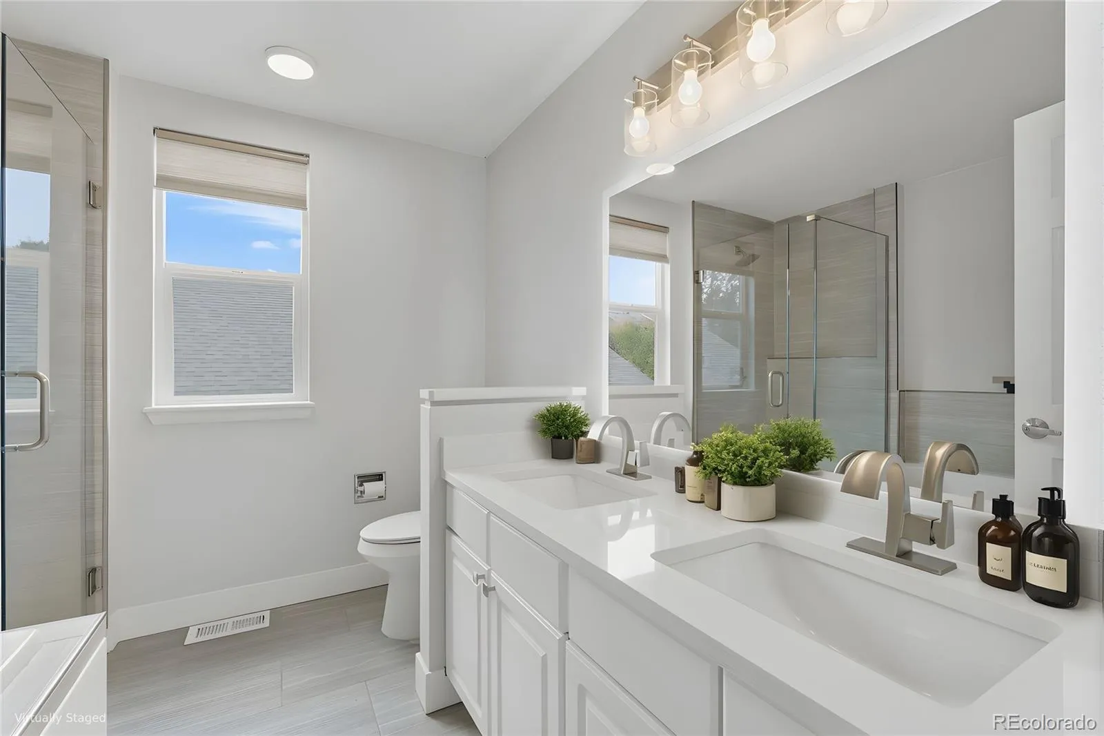 Welcome to this beautifully updated two-story home in the desirable Saddle Rock Ridge community. Bright and open with vaulted ceilings and modern finishes, this home offers the perfect blend of comfort and functionality. The main level features LVP flooring throughout, creating a seamless flow from the spacious living area into the inviting family room, where a cozy fireplace adds warmth and charm. The dining area connects the family room and kitchen, with sliding doors leading out to the private backyard and patio – ideal for entertaining or relaxing outdoors. The kitchen is designed for both everyday living and hosting, featuring sleek quartz countertops, stainless steel appliances, and a generous island for meal prep or casual dining. A convenient powder room and laundry room complete the main floor. Upstairs, the primary suite offers a bright and spacious layout with an en suite five-piece bathroom that includes a soaking tub, separate shower, dual sinks, and quartz countertops. A large walk-in closet provides ample storage and completes the space. Three additional bedrooms and another full bathroom provide plenty of space for family, guests, or a home office. The finished basement offers a spacious bonus room – perfect for a family/media space, gym, play area, or home office. The private backyard features a spacious deck, perfect for outdoor dining or weekend gatherings. Surrounded by mature landscaping, it offers a comfortable space to relax and unwind. Conveniently located near parks, trails, shopping, and dining—with access to top-rated Cherry Creek schools – this home combines modern comfort with an ideal neighborhood setting.