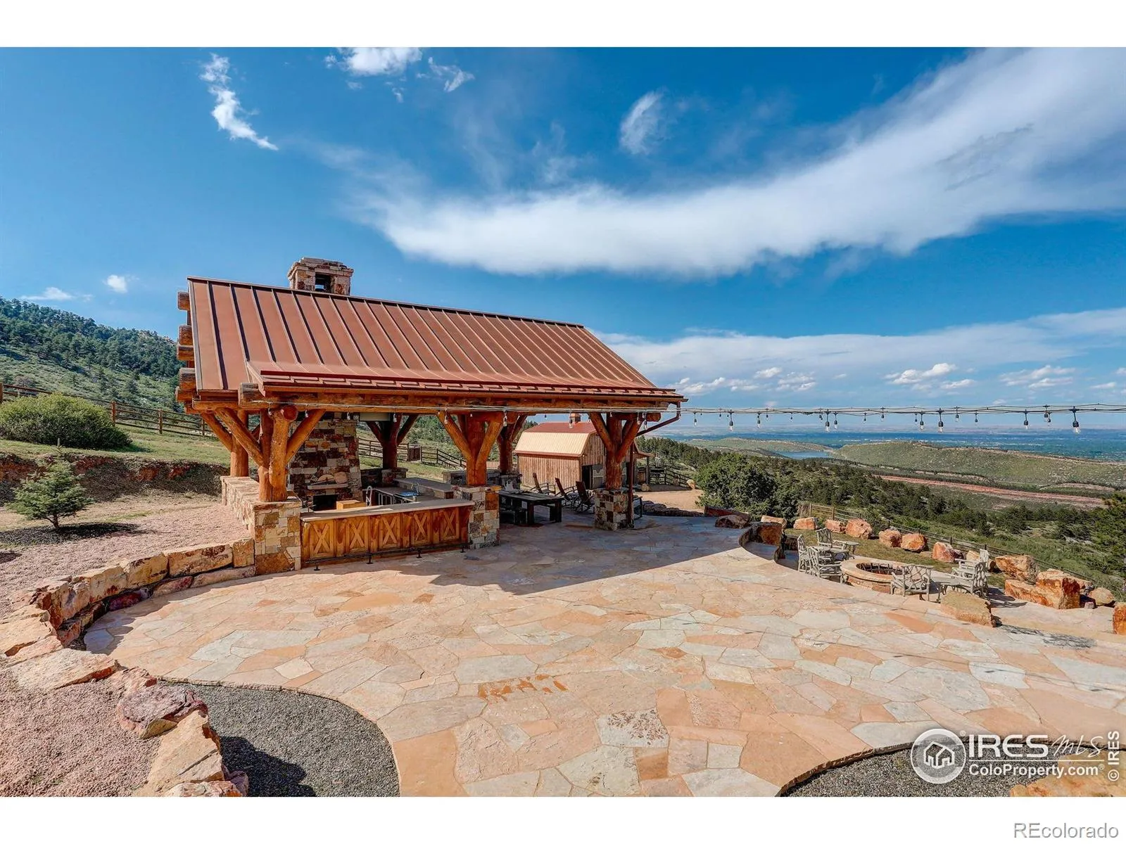 An Equestrian Sanctuary Above It All. One-of-a-kind equestrian estate spanning 38+ acres with 360 mountain and city views. Designed for luxurious indoor-outdoor living, this residence blends the rustic grandeur of a mountain log home with the refined sophistication of high-end design. Behind the gates of this exclusive enclave, privacy and perfection await. Accordion glass doors along the east wing open the home entirely to the landscape, framing breathtaking vistas in every direction. The chef’s kitchen is a work of art, featuring Sub-Zero, Miele, and AGA appliances, copper and reclaimed wood countertops, and a dramatic prep island at its center. The great room soars with beamed ceilings and panoramic light. The main-level primary suite overlooks Horsetooth Reservoir and features deck access, a loft, and a spa-like bath with a copper soaking tub and rain shower. The walkout lower level offers another gathering space with a wet bar and two guest suites opening to the outdoors. For the equestrian enthusiast, world-class facilities include a heated two-stall barn with automatic waterers, four fenced pastures, and a full-size dressage arena with round pen and warm-up space. The outdoor living spaces rival a luxury resort, complete with Viking appliances, a wood-fired pizza oven, fire pit, sound and lighting systems-all set against the glow of the city lights below. This is a property where architecture, nature, and lifestyle converge into something truly extraordinary.