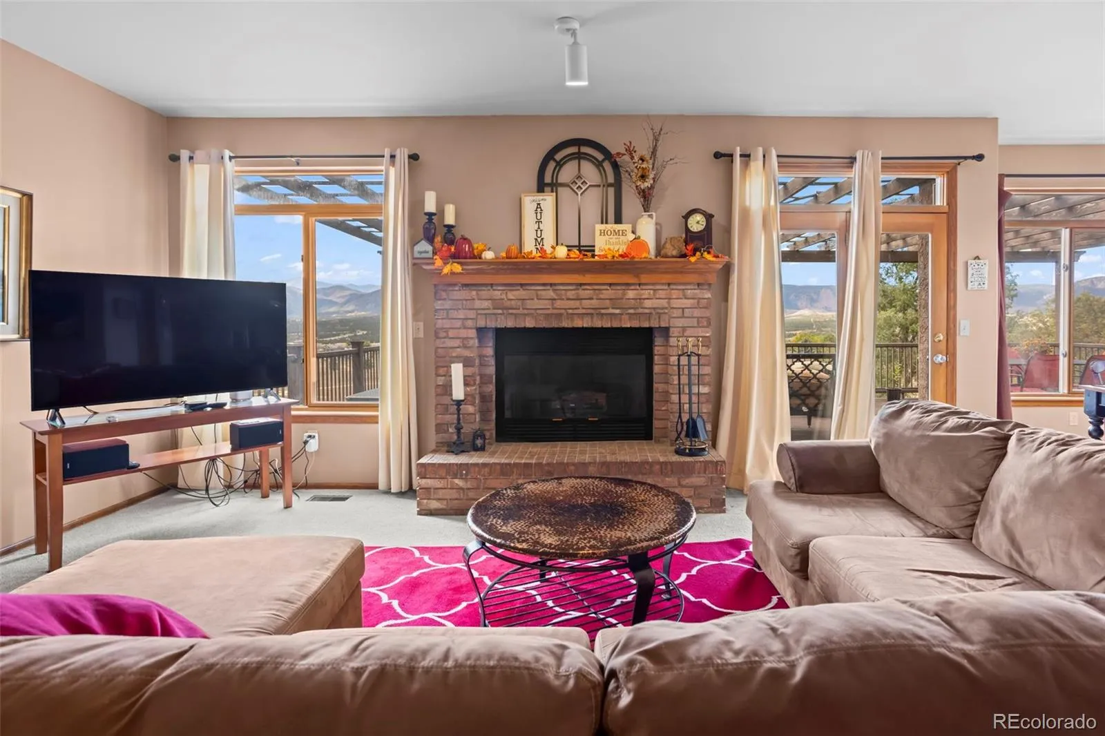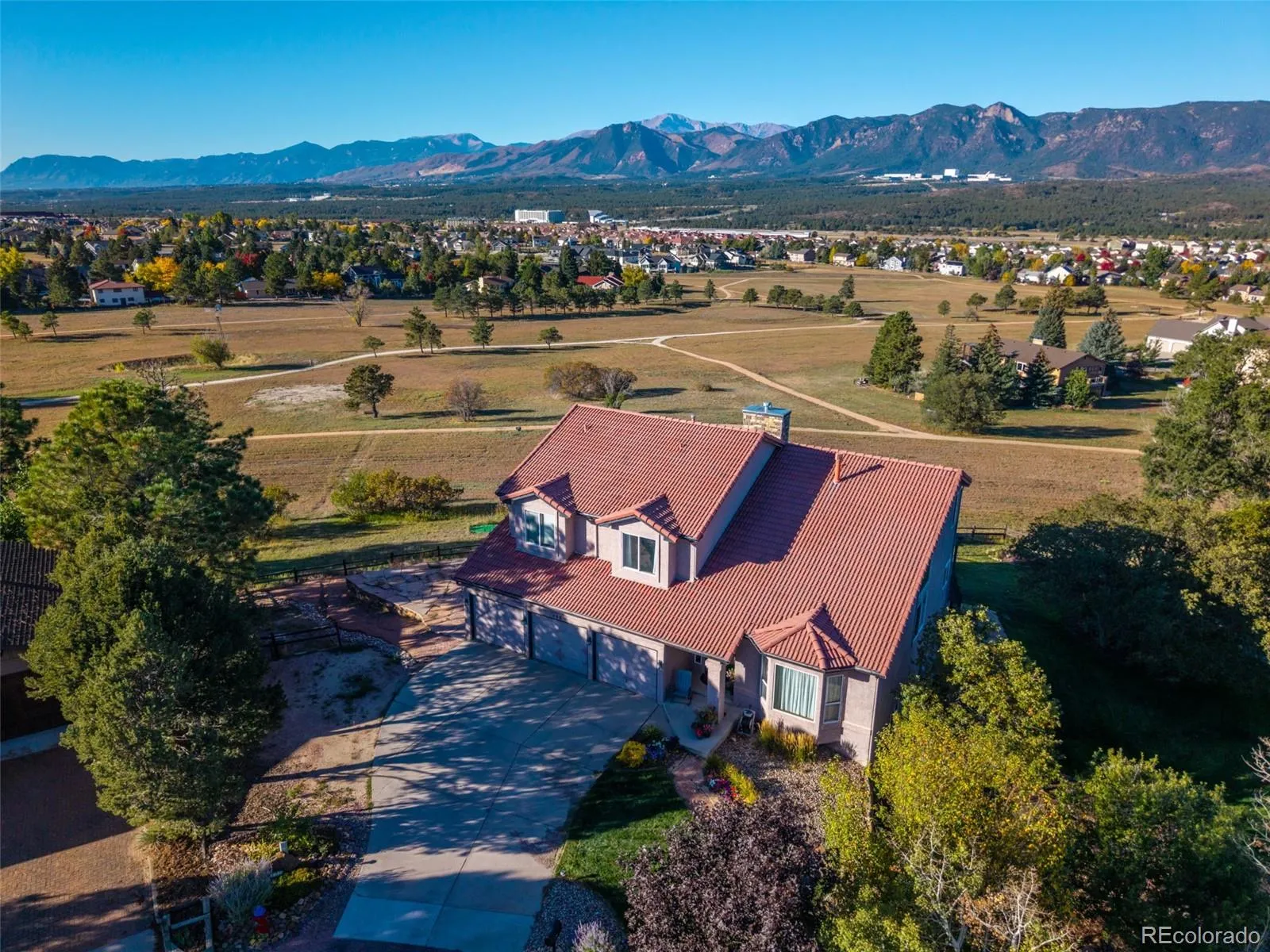 Perched at the end of a quiet cul-de-sac in the sought-after Gleneagle community, this home offers breathtaking mountain and Pikes Peak views from every level of the home. With over 4,400 finished square feet, this six-bedroom, four-bathroom residence perfectly blends spacious comfort with Colorado elegance. Step inside to soaring vaulted ceilings, warm natural wood accents, and large picture windows that capture the sweeping mountain panorama. The living room features a cozy fireplace and a walk-out to the back deck—perfect for taking in sunsets over the Front Range. The kitchen offers a welcoming eat-in layout with tile countertops, a large island, and ample storage, opening seamlessly to the dining and living spaces. The primary suite upstairs includes a sitting area, fireplace, and spa-like five-piece bath—all while overlooking those same expansive views that make this home unforgettable. The walk-out basement features a full wet bar, family room, and additional bedrooms—ideal for guests or entertaining. Outside, enjoy a private backyard that backs to open space, providing unobstructed views of Pikes Peak and a peaceful sense of seclusion. With a three-car garage, tile roof, and low annual HOA, this home is move-in ready and built to enjoy everything Colorado living offers. Located in Academy District 20, near parks, trails, and shopping—this is where space, serenity, and scenery meet.