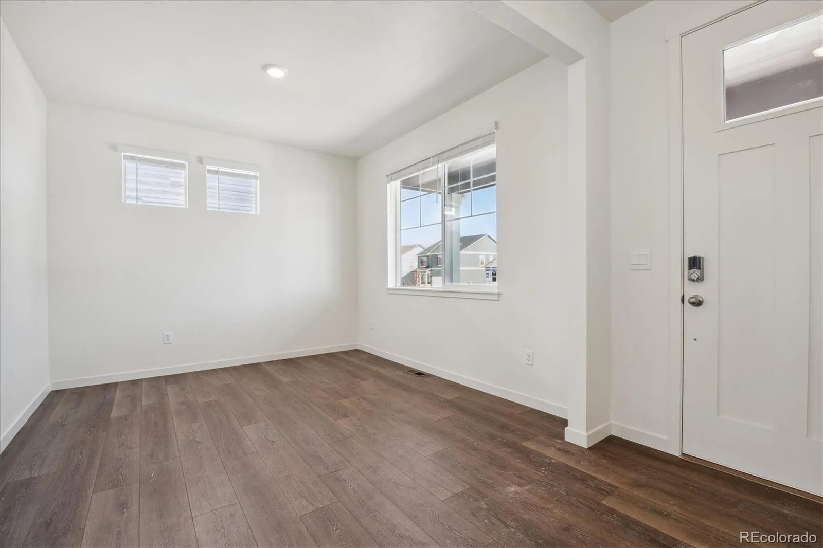 Corner Lot backing open space! Fully landscaped 5 Bedrooms, 3 baths, Loft, Study + 3 Car! Prestigious Douglas County Schools! Open flow between great room, dining, and kitchen. Light and bright decor features including classic white cabinetry with crown molding, beautiful granite kitchen counters with subway tile back splash, stainless appliances, tile bath floors & quartz bath countertops. This home offers an extensive list of features including 8′ front door, 2 panel interior doors and craftsman style trim, A/C, front yard xeriscape, 8′ tall garage doors, plus Smart home features: keyless entry, video doorbell, Smart lighting, thermostat, and Smart speaker! Deako customizable lighting switches! Come enjoy the open space and peace and quiet of our community! ***Estimated Delivery Date: December. Photos are representative and not of actual property***