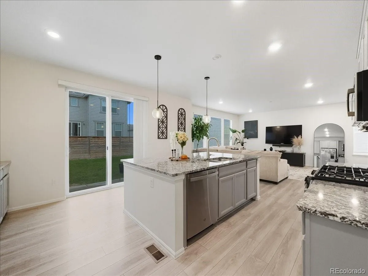 Step inside to an inviting open-concept main level featuring hard-surface flooring throughout and a dedicated office—perfect for remote work or study. The chef-inspired kitchen showcases a large island, ample cabinetry, and plenty of storage, ideal for cooking, entertaining, and gathering with family and friends.