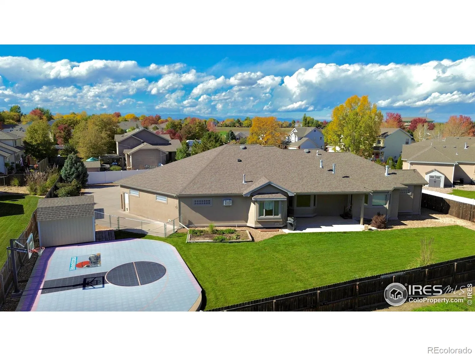 Discover this stunning 4-bedroom, 4-bath ranch-style home perfectly situated on a quiet cul-de-sac in West Greeley, Colorado. Nestled on nearly half an acre and backing to a serene greenbelt, this property offers the perfect blend of privacy and community.Designed with both luxury and functionality in mind, the home features an open and inviting floor plan with rich Amish hickory hardwood floors-each board hand-signed by its craftsman. The gourmet kitchen is a chef’s dream, showcasing a gas cooktop, double ovens, custom cabinetry, and a charming breakfast nook for morning coffee.The spacious primary en-suite serves as a private retreat with a spa-like 5-piece bathroom and double-sided fireplace. The finished basement provides a large recreation room-ideal for entertaining, games, or movie nights.There’s plenty of room in the basement for a home gym, but when you’re looking for a little cardio on those beautiful Colorado days you can step outside to enjoy your very own half basketball court or unwind in the serene backyard setting surrounded by mature landscaping and open green space.Car enthusiasts and hobbyists will love the oversized 7-car attached garage and shop, fully equipped with a floor drain, 220V outlet, heating, and A/C.Combining craftsmanship, comfort, and one-of-a-kind amenities, this home truly embodies the best of Colorado living. Book a showing today!