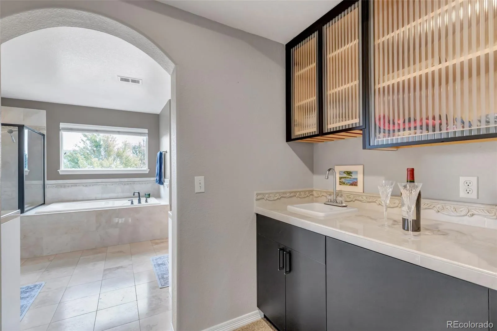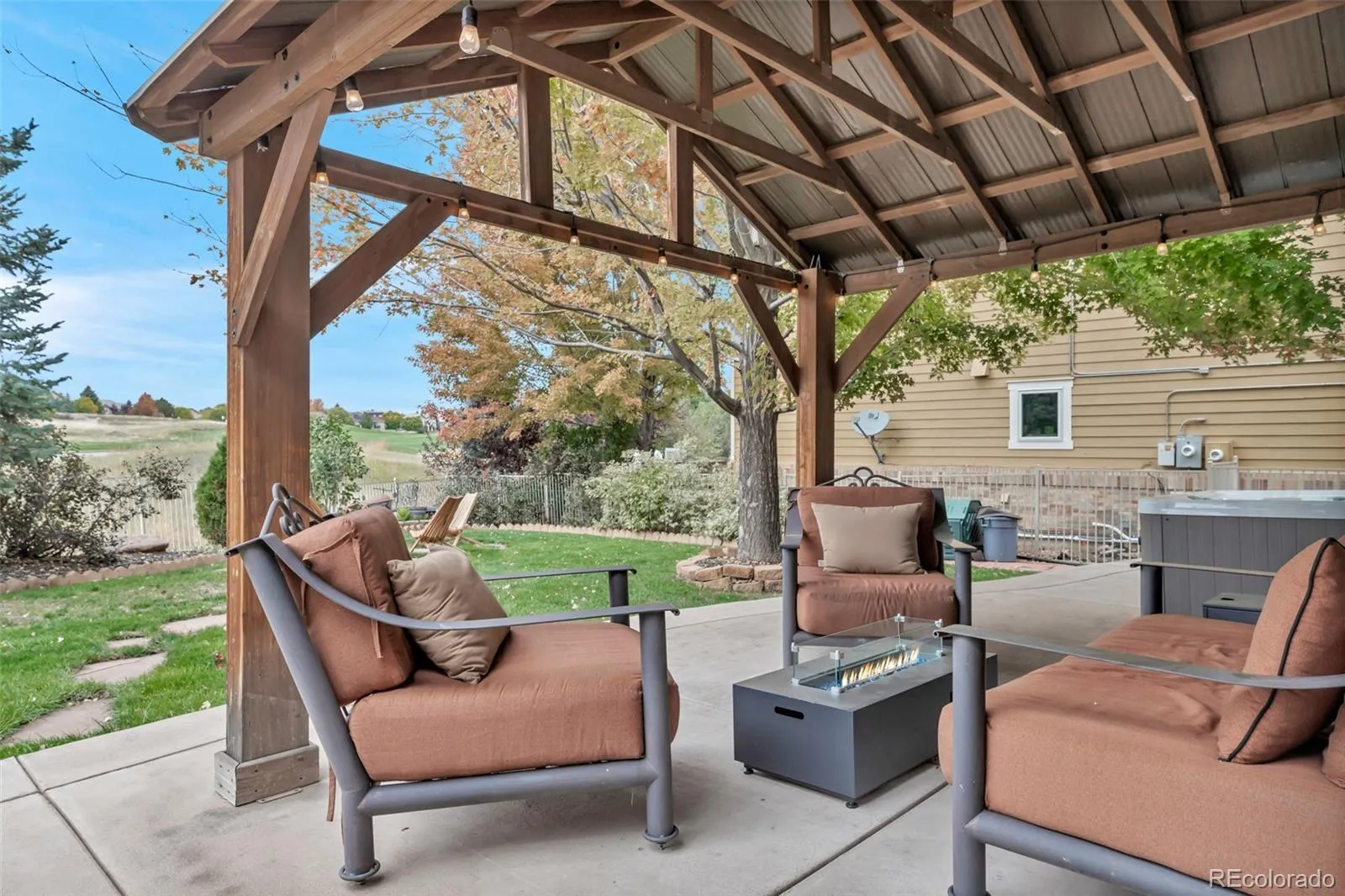 Enjoy golf course living at 7063 S Shawnee Street — ideally positioned on the tee box of the 13th hole of Saddle Rock Golf Course with peaceful fairway views and beautiful evening sunsets. This updated home combines quality finishes, thoughtful design, and a highly functional layout. Recent upgrades include new black-framed windows, a new sliding door, fresh interior paint, and updated fixtures, fans, and hardware throughout. The kitchen features modern cabinetry, stainless steel appliances, a 6-burner gas range, and a walk-in pantry. Upstairs, you’ll find a guest suite with private bath and two additional bedrooms connected by a Jack-and-Jill bathroom. The spacious primary suite has golf course views, a fireplace, wet bar, two large closets and a generous master bath with dual sink areas and separate vanities. The finished lower level is designed for entertaining, complete with a built in bar, second family room, theater room (projector included), game room, additional bedroom and ample storage. Outdoor living is a highlight — relax under the pergola and take in the serene fairway setting. Additional features include a 3-car garage with generous storage and a BRAND NEW Class 4 impact-resistant roof. Saddle Rock residents enjoy community pools, pickleball courts, a golf clubhouse, and direct access to the Cherry Creek Trail system, with quick connections to E-470, DIA, Southlands, and Parker.