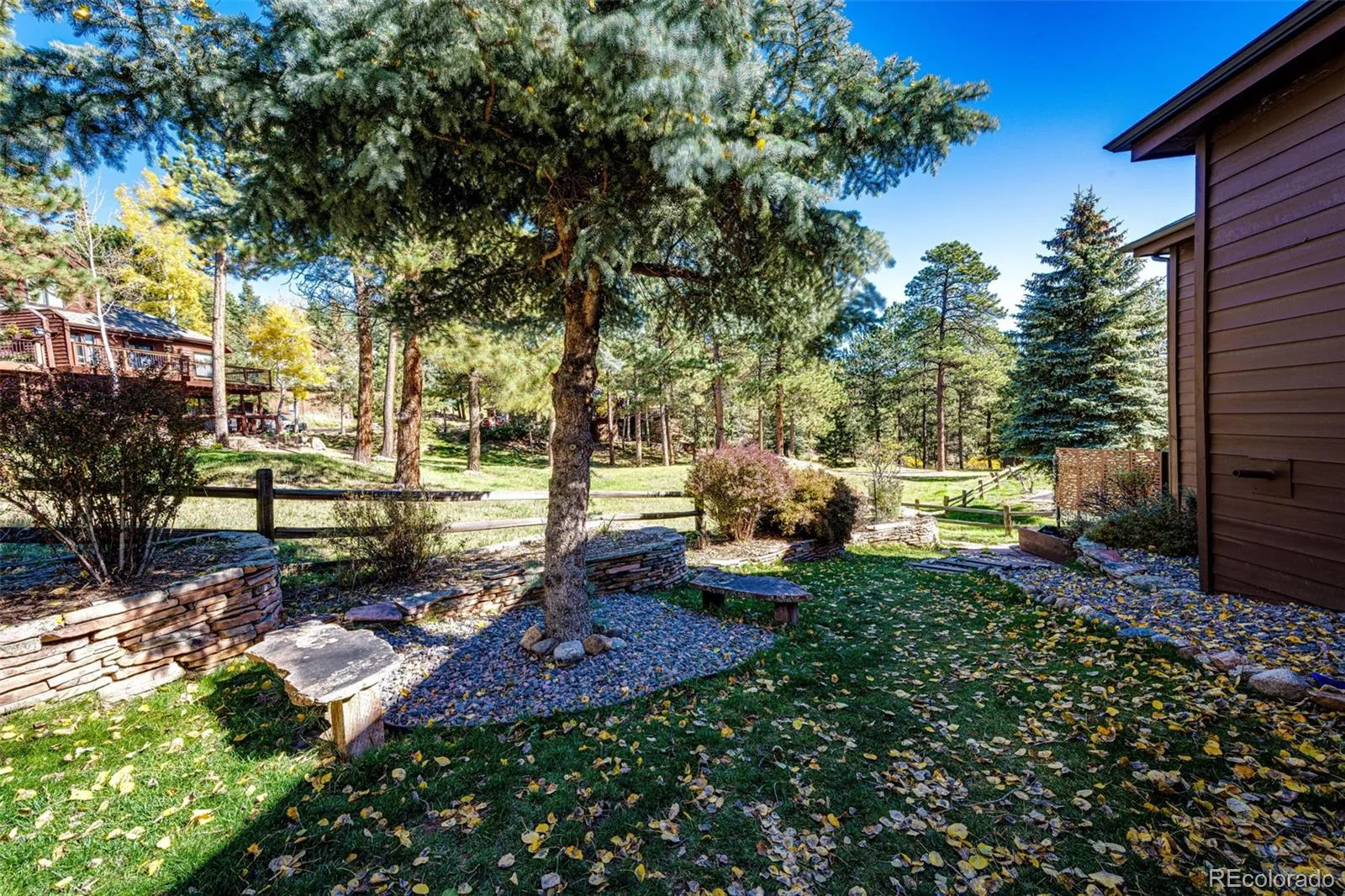 LOCATION, LOCATION! Walk from your front door through Dedisse Park to the lake, golf course, restaruants and downtown from this premium central Evergreen location. Nestled in one of the few stand-alone residences in the highly desirable Troutdale Village community, this property offers a rare combination of tranquility, convenience, and style. Set amid towering evergreens and bordered by stacked-stone garden beds, the yard feels like your own private sanctuary. From your doorstep, follow a scenic trail that connects directly to Dedisse Park, Evergreen Lake, and the vast trail networks of Alderfer/Three Sisters Open Space—where hiking, biking, and cross-country skiing await just minutes away. Inside, the home has been thoughtfully updated to balance mountain charm with modern comfort. Major upgrades in 2025 include a brand-new composite deck perfect for outdoor dining and morning coffee, all new energy-efficient windows and doors on the main level, luxury vinyl flooring laid seamlessly over original hardwood, newly designed interior stairs and railings, and elegant quartz countertops and backsplash. A new roof and gutter system were installed in 2024, ensuring years of worry-free living. The systems are equally impressive—central air conditioning, a whole-house humidifier, furnace, gas fireplace, hot water heater, and a radon mitigation system, all less than eight years old. Additional touches elevate daily living: an electric car charging station in the garage, an invisible fence for pets, an irrigation system for the lawn and garden beds, and a private hot tub off the lower-level patio where you can unwind beneath Colorado’s starlit sky. Just moments from downtown Evergreen’s cafes, art galleries, and seasonal festivals, and with quick access to I-70 for an easy Denver commute, this home embodies the best of both worlds—a quiet, friendly community surrounded by nature, with all the modern comforts and local amenities that make Evergreen truly exceptional.