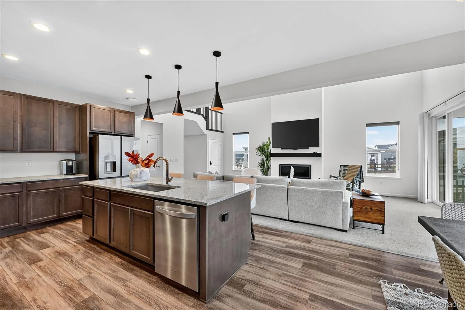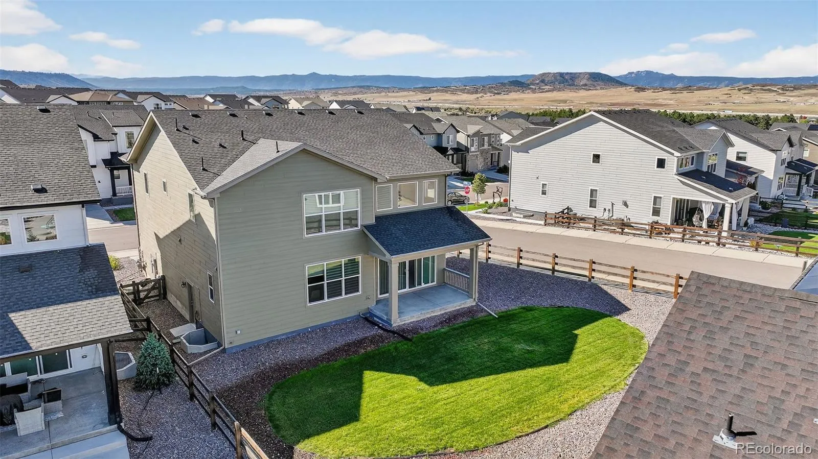 Easy living elegance in this BETTER-THAN-NEW Toll Bros. home in Montaine. Walk to the neighborhood playground and enjoy year-round activities at the resort-style community clubhouse. Featuring a beach entry pool, spa, pickleball/tennis and designated kids rooms with games, puzzles and TV. Presented in mint-condition, this exceptional home showcases flawless craftsmanship and a refined turnkey living experience. Located on a huge, *south facing* corner lot. The two-story entry sweeps upward inviting you in. Beyond the entry is a grand living room with custom window coverings, clerestory windows, gorgeous linear fireplace and a center-opening glass wall. Chef’s dream kitchen with granite counters, stainless appliances, oversized island with seating. It flows effortlessly into the dining room, creating an ideal space for entertaining groups large or small. A walk-in pantry cleverly placed behind the kitchen offers added organization and storage. Home office has wifi and TV prewire installed. Upstairs features a laundry room conveniently located near all bedrooms with built-in cabinetry. Samsung washer and dryer are included. The luxurious primary suite on the upper level is a tranquil space with recessed lighting in the tray ceiling. Spa-like bath has a walk-in shower with a frameless glass enclosure and dual shower design. Walk-in closet completes this private primary retreat. Bright secondary bedrooms each feature walk-in closets. Daylight windows and 10′ ceilings in the full basement let in natural light. Thoughtfully designed with plumbing rough-in. Pet washing station with hot and cold water lines is a great addition in the basement. Whole house WiFi connectivity, prewiring for solar and programmable Jellyfish exterior lighting are some of the many features of this beautiful home. Enjoy life in Castle Rock – summer concerts, holiday star lighting, and home of the Douglas County Fair.