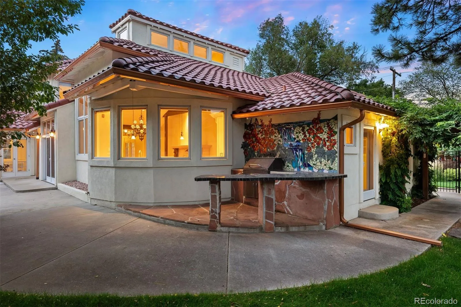 This updated and upgraded 1924 Spanish Colonial is tucked away on a quiet lot on coveted Broadmoor Avenue * As you pull into the relaxed circle drive nestled amongst the beautiful mature trees, you notice a charming decrottoir (boot-scraper) next to the wrought iron accents as you walk through the hand-carved front door (complete with speakeasy window and key cabinet harkening back to Prohibition) that welcomes you into the entryway…accented by more hand-carved wood as a unique accent radiator cover * Refinished hardwood floors * Fully fenced back yard * Vaulted great room / kitchen with tons of natural light and big beautiful wood beams * Luxurious primary en suite with clawfoot tub, walk-in closet, and private walled outdoor sanctuary * Copper tile ceiling and fireplace in primary bedroom * Moorish cross radiator covers to capture essence of the style and era * Bonus room connected to primary bath would be a wonderful office, workout room, or nursery * Wet bar with beverage fridge leads to the mother of all mudrooms – the ultimate flex space – which could be utilized as a private living space for an au pair or tenant, a spacious workout area, or a landing zone for sports equipment / bench seating with hooks/lockers, etc. * Main level laundry * Thoughtfully landscaped serene & private yard with tile patio, pergola, drip lines, and apricot tree (owner has harvested to create delicious preserves and pastries) * OVERSIZED FOUR CAR GARAGE with bonus golf cart bay * Award winning Cheyenne Mountain D12 school district – the #1 district in the entire state of Colorado * Just a short stroll to the Broadmoor, The Golden Bee, Broadmoor Elementary, and the prestigious Colorado Springs School * Travel with ease – only 15 minutes from the Colorado Springs airport * Old World vibes plus modern amenities and a spectacular location make this special estate a rare opportunity to enjoy privacy, prestige, and proximity to the best amenities that Colorado Springs has to offer *