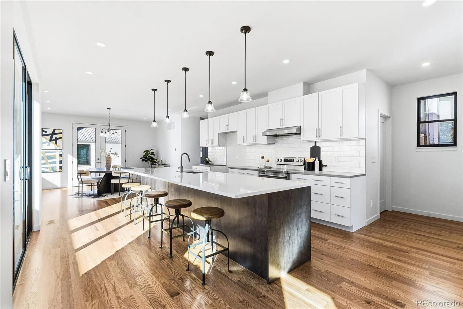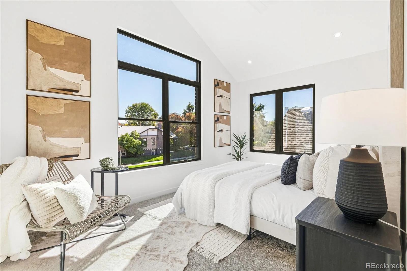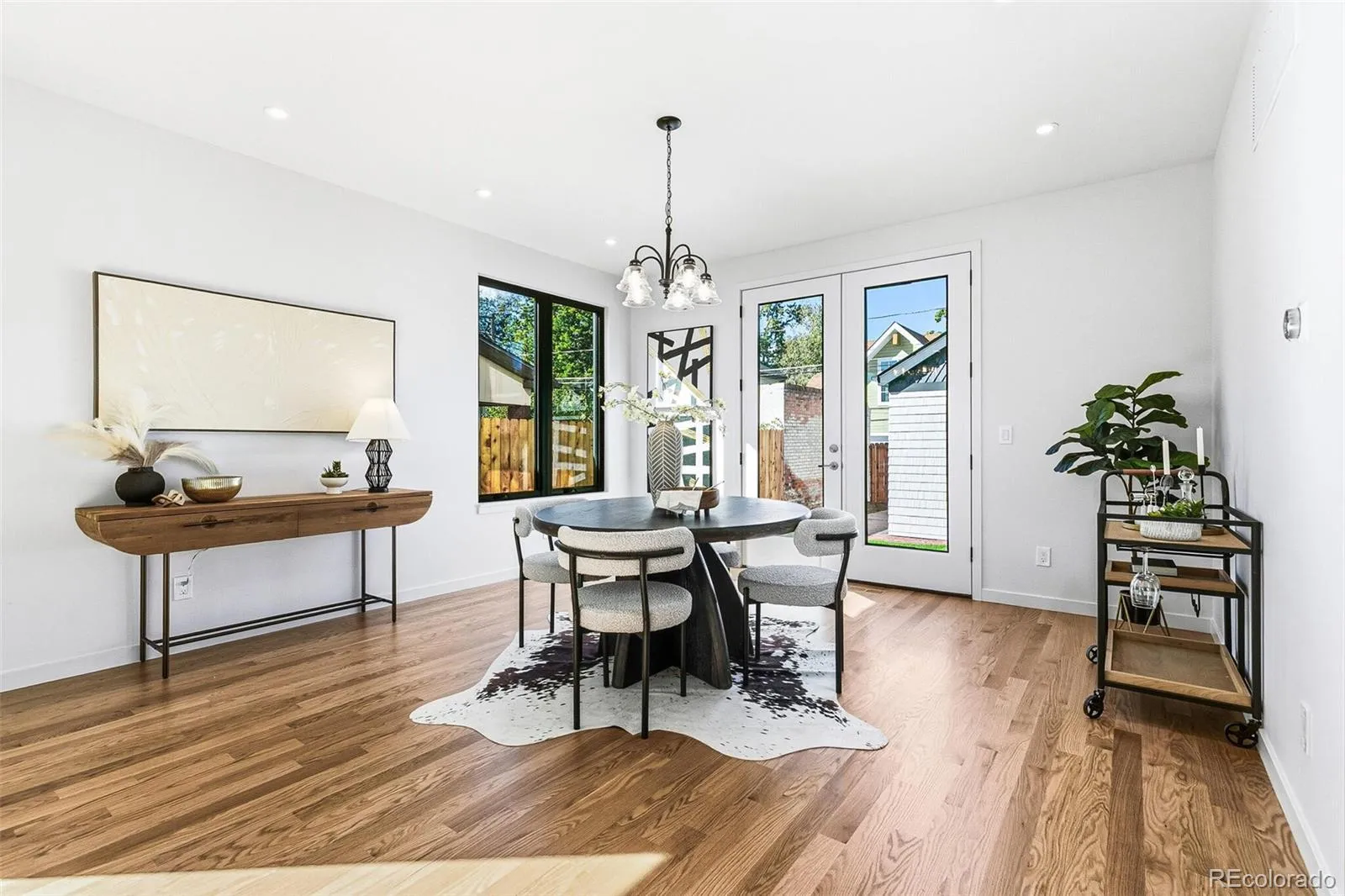 An incredible opportunity awaits you to own brand new construction in the heart of one of Denver’s beloved historic neighborhoods. You’ll find this home to be a wonderful compliment of past meeting the present, literally built from the dirt up with classic design and repurposed brick from the original 1921 bungalow, all in charming Alamo Placita. Start with the covered front porch that opens to a grand main level featuring soaring ceilings, gleaming oak wood flooring, oversized windows, and custom lighting. The kitchen offers matching stainless appliances, an abundance of cabinet and counter space, and a HUGE quartz island with custom pendant lighting. Sliding glass doors lead to a side-yard repurposed brick patio, perfect for grilling and outdoor dining. The dining area is sunlit from a large window and contemporary french doors, leading to the private, fenced backyard with a second repurposed brick patio, lush yard, and detached large 2-car garage (wired for EV charging). Adjacent to the dining room is the extra deep walk-in pantry (offering additional cabinet and counter space, and appliance storage, or a wine fridge), and a small mud room and door leading to the backyard for garage access. Past the 1/2 bath are stairs to the unfinished basement. Up the luxurious hardwood oak staircase to the generous landing above finds the primary bedroom and two additional guest bedrooms. The primary suite is sunlit with vaulted ceiling, carpeted floor, walk-in closet, and ensuite 3/4 bath with quartz dual sink counter. This level also finds an enclosed laundry room and full bath with white quartz dual sink counter. Additional upgrades include soft-close cabinetry, solar ready wiring, sump pump, radon mitigation system, basement egress window wells with french drains, rough-ins in basement for easy additions. You can enjoy the walkable neighborhood with easy proximity to area restaurants, quaint cafes, city parks, including access to downtown Denver and Cherry Creek amenities.