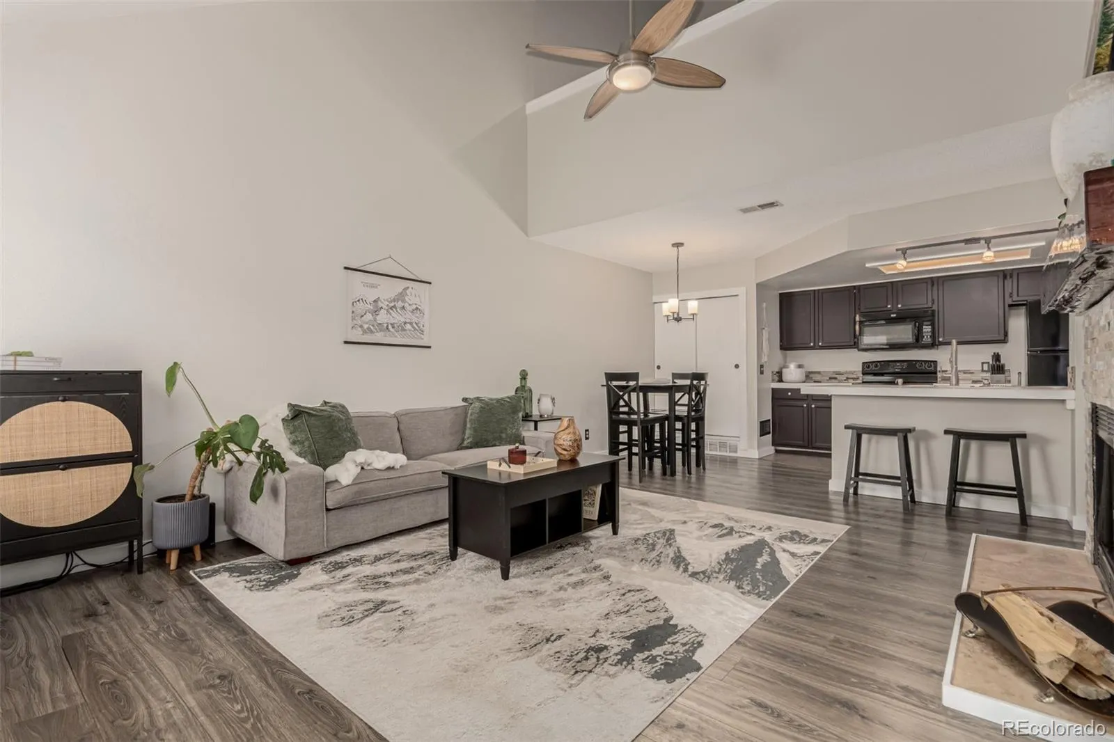 Enjoy your morning coffee on the peaceful deck or cozy up by the fireplace on cool Colorado evenings. The spacious living area flows seamlessly into the eat-in kitchen featuring a breakfast bar, making it easy to entertain guests or gather with family.