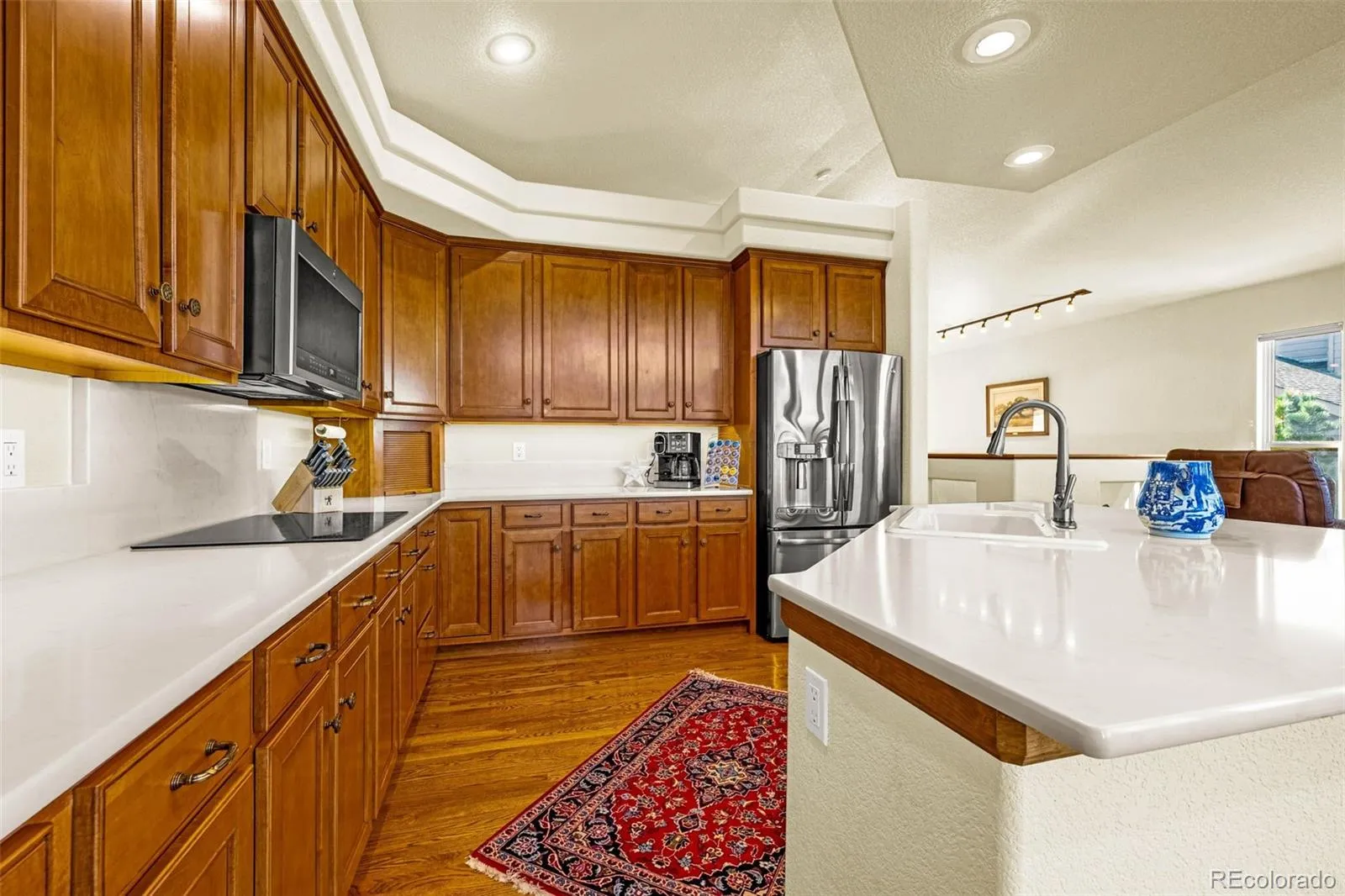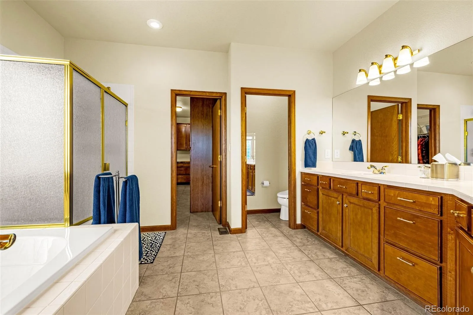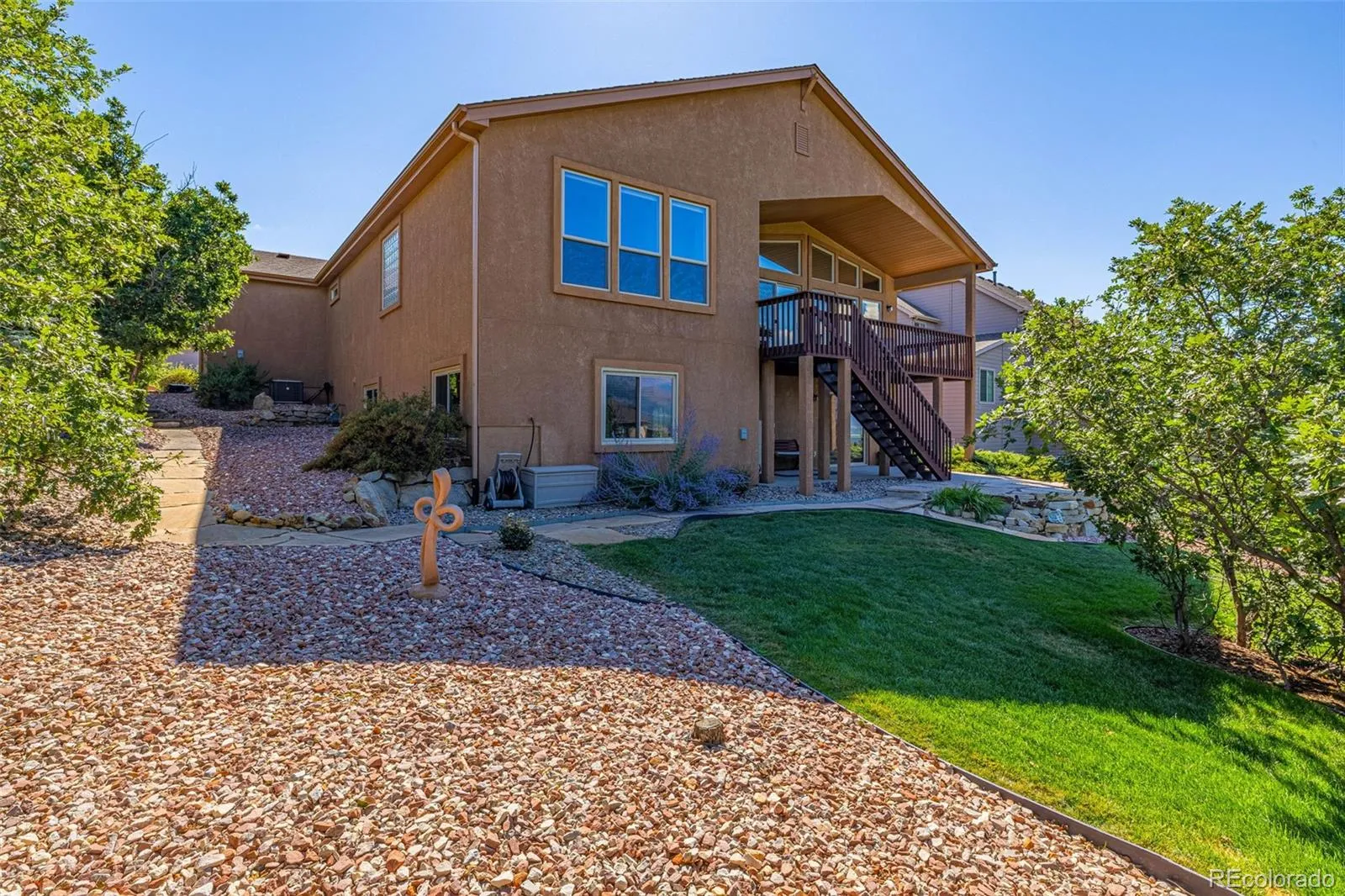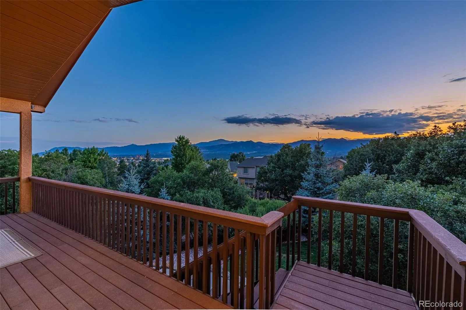 UNMATCHED Front Range views, refined finishes, and a seamless ranch-style layout — this home captures the very best of Colorado Springs living! This stunning home features unobstructed views of the entire Front Range, including the majestic Pikes Peak, from the covered composite deck. The views can also be enjoyed from the Kitchen, which features a large island with quartz countertops and backsplash, 42″ maple cabinets with crown molding, touchless faucet, under-cabinet lighting, and a convenient appliance nook with outlets. Premium GE Profile appliances—including double ovens, induction cooktop and a 3-drawer refrigerator— will satisfy any home chef. The Main Level also offers real hardwood floors, gas fireplace, a stunning separate Dining Area, and vaulted ceilings to highlight those views. The primary suite is a true retreat, sharing the same dramatic Pikes Peak view, with separate deck access, a luxurious five-piece bath, and a massive walk-in closet with heated floors and custom closet system. The heated floors continue into through the Bath, Closet and into the mud room, which features a utility sink. The fully finished walkout basement extends the living space, offering its own stunning mountain views, abundant storage across three areas, and recessed lighting throughout. The secondary bedrooms are spacious, and the curb appeal is spectacular. A rare find, this home features exquisite touches throughout! Enjoy the home’s elegance, functionality, and Mountain Contemporary style in one of the premier neighborhoods in Northgate- Middle Creek! Welcome Home.