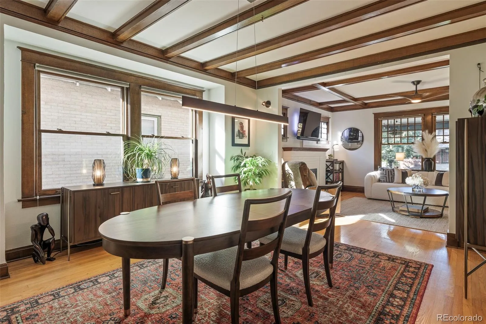 Steeped in historic charm yet beautifully reimagined for modern living, this Congress Park residence radiates timeless elegance. A welcoming covered front porch invites entry into sunlit interiors, where original craftsmanship — wood-beamed ceilings, rich millwork and built-in details — meets contemporary updates. The living room’s cozy fireplace anchors the main level, flowing effortlessly into a formal dining room featuring a built-in buffet. A newly remodeled kitchen showcases sleek cabinetry, a stylish tiled backsplash and stainless steel appliances. Upstairs, the entire second level is dedicated to a serene primary suite complete with a sitting area and a spa-like bath with a soaking tub and walk-in shower. The finished basement offers flexible living space with a rec room, a wet bar with a farmhouse sink, a guest bedroom and a full bath. Outside, a shaded backyard with a deck and patio creates a peaceful retreat, all just moments from vibrant shops and restaurants on 12th Avenue.