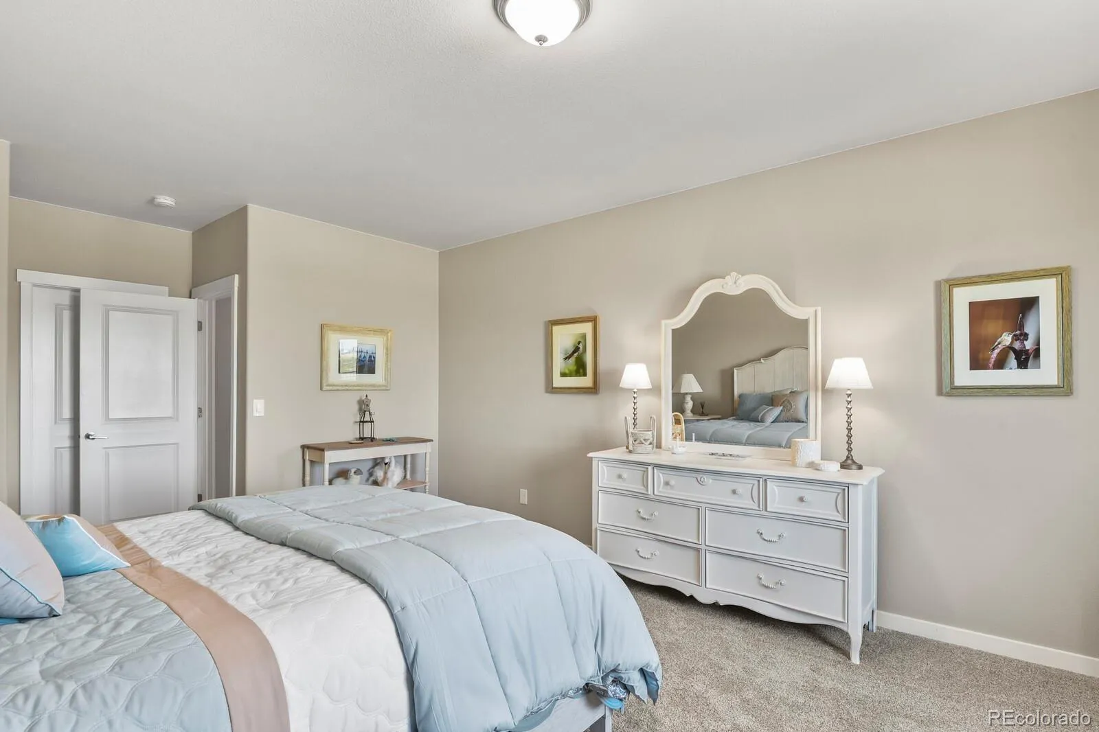 A one in a thousand home! A builder-upgraded Spec home. Stunning ranch with a walkout basement. 180 degree Million Dollar view of the mountain range from Cheyenne Mtn. to the north end mountains featuring Pikes Peak right in the middle. If you are not sitting on the expansive deck enjoying the view and the open space behind and to the side of the home, You will be enjoying Open Concept Main Level with full height windows to let the light and view into the home. Eat breakfast at the Oversized Granite Breakfast Bar / Island or sit at the table in the Dining Space which is large enough to hold an 8 guest dining table! Relax and enjoy the light or retire to the Basement Great Room with Stone Face Gas Fireplace with a Walnut Mantel. Of course you could sit outside on the Walkout Patio and the custom low maintenance Garden Area and the privacy allowed with Open Space Behind and to the side. Retire at night to the Main Bedroom that is Oversized ( no problem with California King size bed and dress set.) Enjoy a shower in the Frame Free Shower or soak in the Large Tub. If you own a lot of clothes you will love the Very Large Walk In Closet. Have guests? No problem! You have 3 more bedrooms to select from including an Oversize Guest Suite downstairs that also has an Oversize Walk In Closet. Plenty of Linen Closets and a Large Storage Room for the Christmas stuff and everything you need to store. On the weekend enjoy a good game of Pickle Ball on one of the 8 courts or take a swim or sit in the Hot Tub. No need to keep weight sets/exercise equipment in the home. There is a private Community Fitness Center just a short walk from the home. All of this in the quiet of a Full Fence and Gated 55plus Community. Just a few minutes to I-25 and yet you miss a lot the noise of the city. Shopping and the Air Bases & Airport are a short drive . A True One of A kind !