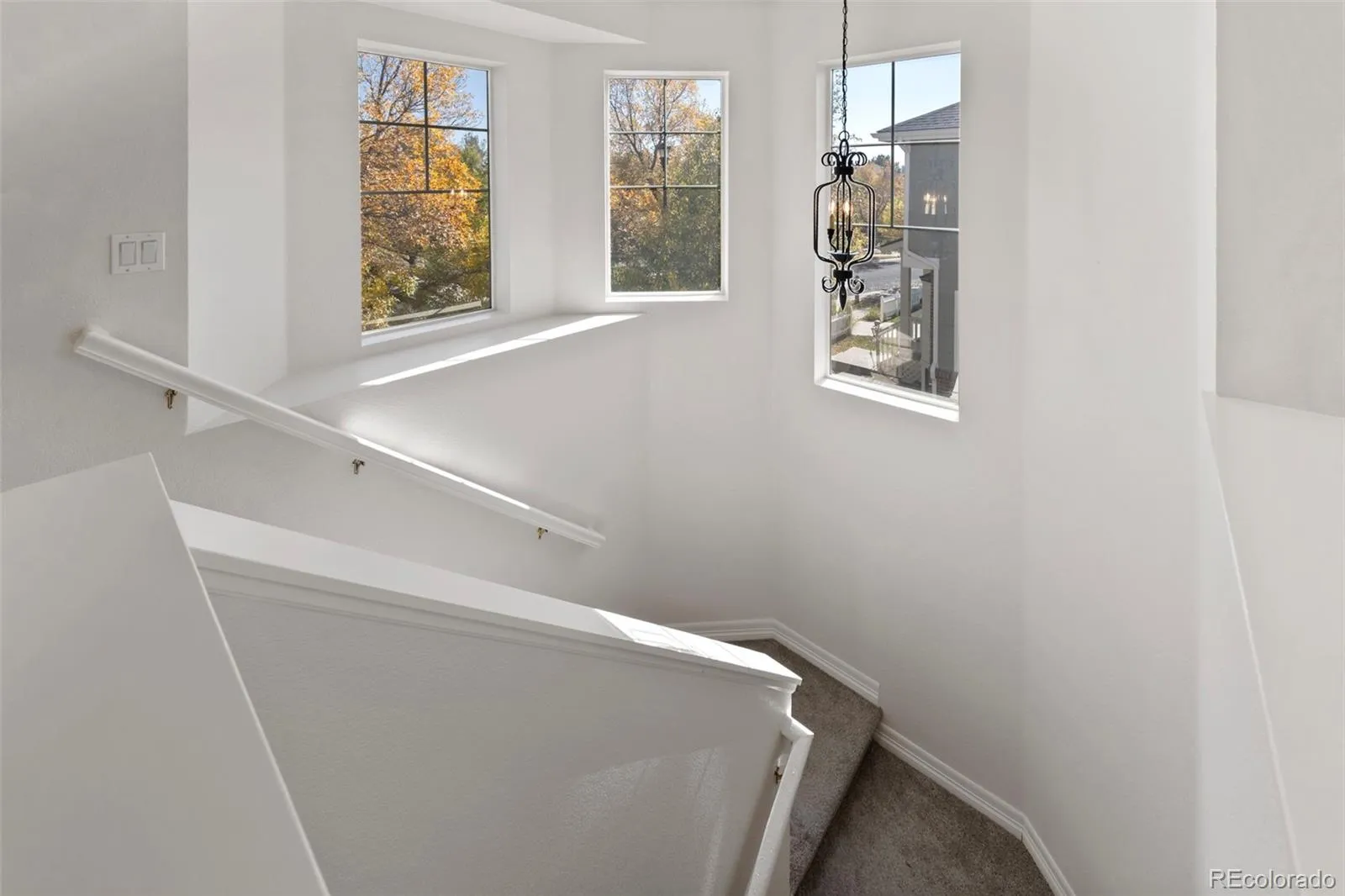 Magnificent mountain views and a prime location across from the community park! This beautiful Broadlands home features a versatile carriage house with its own bathroom—ideal for guests, in-laws, multi-generational living or older children. Enjoy peaceful mornings on the front porch swing overlooking the park. Inside, the main level offers an open layout with new LVP flooring, fresh paint, and a cozy gas fireplace in the living room. The kitchen features stainless steel appliances, a center island, pantry, and new overhead lighting, while the large dining area is perfect for gatherings. Upstairs are three spacious bedrooms including a primary suite with a five-piece bath and large walk-in closet. A built-in desk in the loft creates the perfect homework or home office nook. The partially finished basement provides additional space for recreation or media use. Step out back to enjoy the mountain views from the patio and relax in the included hot tub. The fenced, landscaped yard offers privacy and charm. The carriage house, accessed from the rear stairs, adds incredible flexibility and value. Located in The Broadlands, one of Broomfield’s most desirable communities featuring golf, pools, trails, and multiple parks, this home delivers comfort, beauty, and convenience in every detail.