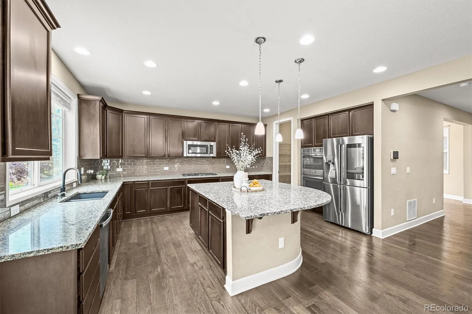 Welcome to 7711 S Queensburg Way in the highly sought-after Blackstone Country Club community of Aurora—a beautifully maintained 6-bedroom, 5-bath home that blends comfort, space, and timeless style. The main level features an open layout with a gourmet kitchen including granite counters, double ovens, and a large island that flows into a bright, welcoming family room. Upstairs, the primary suite offers a sitting area and spa-inspired bath, while an ensuite bedroom is ideal for guests or an in-law suite. Every bedroom includes a walk-in closet for exceptional storage. The finished basement provides a versatile rec room, bedroom, and full bath—perfect for entertaining or relaxing. Step outside to a spacious, beautifully landscaped yard with room to play, garden, or unwind. Enjoy resort-style amenities at Blackstone Country Club—golf, pool, fitness, tennis, and clubhouse dining—plus convenient access to nearby restaurants, shopping, and top-rated Cherry Creek schools. Easy commute to Denver, DTC, and DIA makes this home an exceptional value in one of Aurora’s premier golf communities.Offers are being accepted through FinalOffer.com, where buyers can view terms and submit offers transparently. Don’t miss your chance — this home stands out as one of the best values in Blackstone! Reach out to me and also review supplements for a document to help you submit.