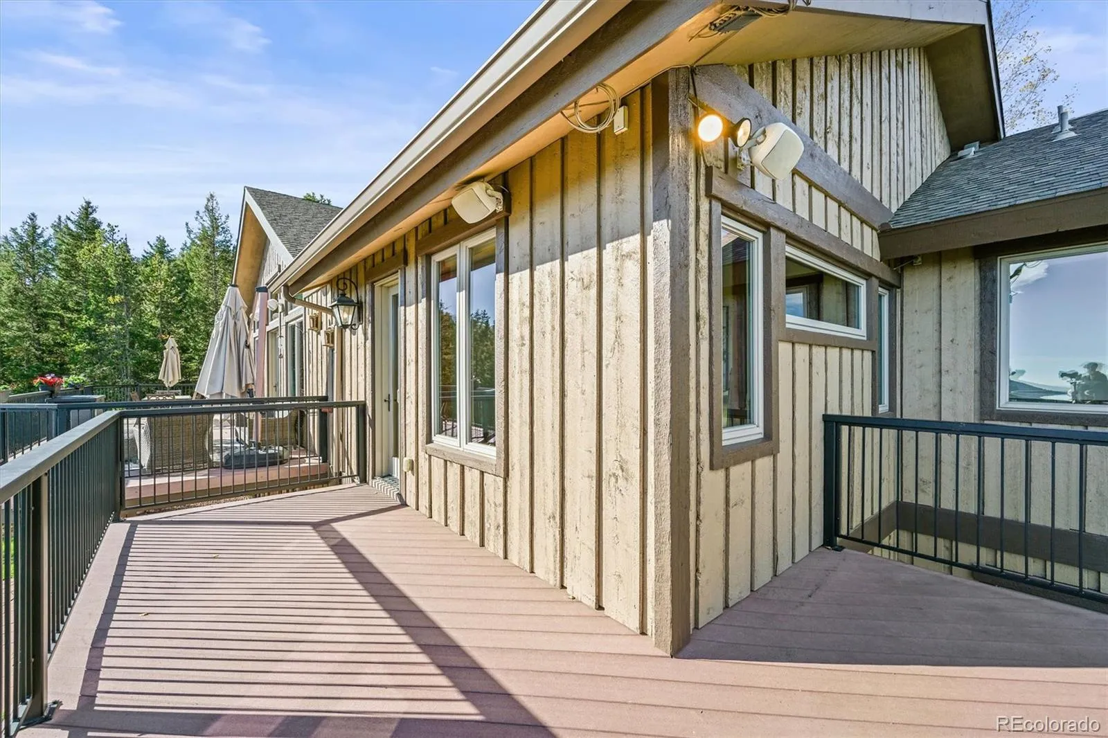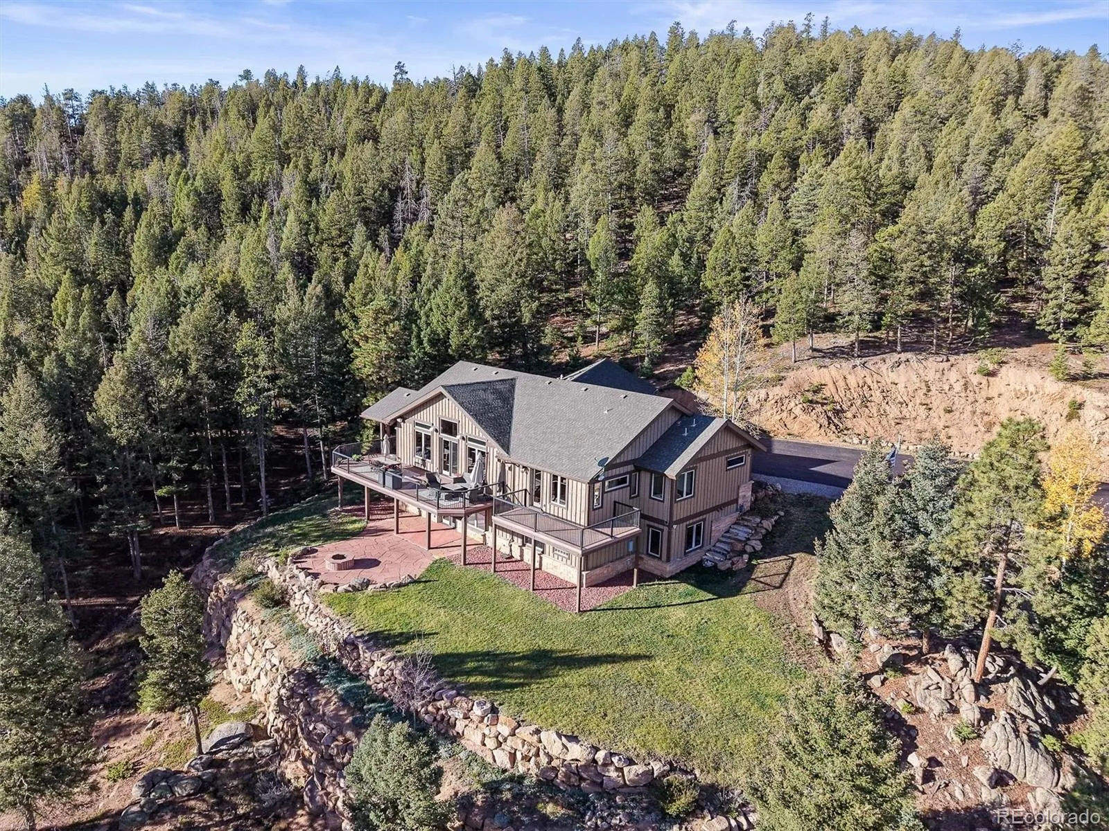 This exclusive Colorado mountain estate spans nearly 49 pristine acres of whispering pines, breathtaking views and absolute tranquility, just 10 minutes from Conifer! These 4 private parcels, sold separately or together within Wapiti Run Estates, back to Jefferson County Open Space—offering the rare opportunity to develop, expand, or preserve your own mountain sanctuary. The centerpiece of this estate is a stunning mountain home, thoughtfully designed to combine elegance, comfort, and functionality. The quality of craftsmanship is unmatched! Step into the jaw-dropping great room, where a wall of picture windows frames the spectacular landscape! The chef’s kitchen is a showstopper—featuring tall counters, high-end appliances, rich dark-wood cabinetry and gleaming granite countertops. Enjoy the sweeping mountain vistas from the adjoining dining area. The luxurious primary suite offers a true retreat, complete with a stone fireplace, jetted soaking tub, walk-in shower, and dual closets—one conveniently equipped with washer/dryer hookups. Outdoor living at it’s best with a magnificent deck and large flagstone patio with fire pit, overlooking a peaceful valley. The finished walk-out basement is designed for relaxation and recreation, featuring a wet bar, game area, and fireplace. Spacious guest bedrooms share a luxurious bath with a steam shower, while the main floor office—enhanced with built-in shelving, a desk, and a Murphy bed—doubles as an additional guest room. Don’t miss the one-of-a-kind safe room, custom dog wash, hidden storage room, finished garage with radiant heat-ready driveway. Adding to the allure is the true crown jewel—a 2,400-square-foot outbuilding featuring dual RV-sized doors, full insulation, propane heat, a big-game cooler and hoist, a finished room, and a loft. This impressive space is paradise for the outdoor enthusiast, offering secure storage for all your toys, tools, and treasures. This is more than a home—it’s a private mountain retreat!