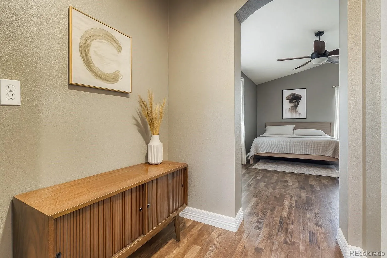 Step inside to discover refinished hardwood floors flowing through the open-concept main level. The modern kitchen features quartz countertops, a butcher block island and stainless steel appliances, all opening to a bright dining nook and comfortable living area. From the kitchen, step outside to the private backyard and patio, ideal for relaxing or entertaining.