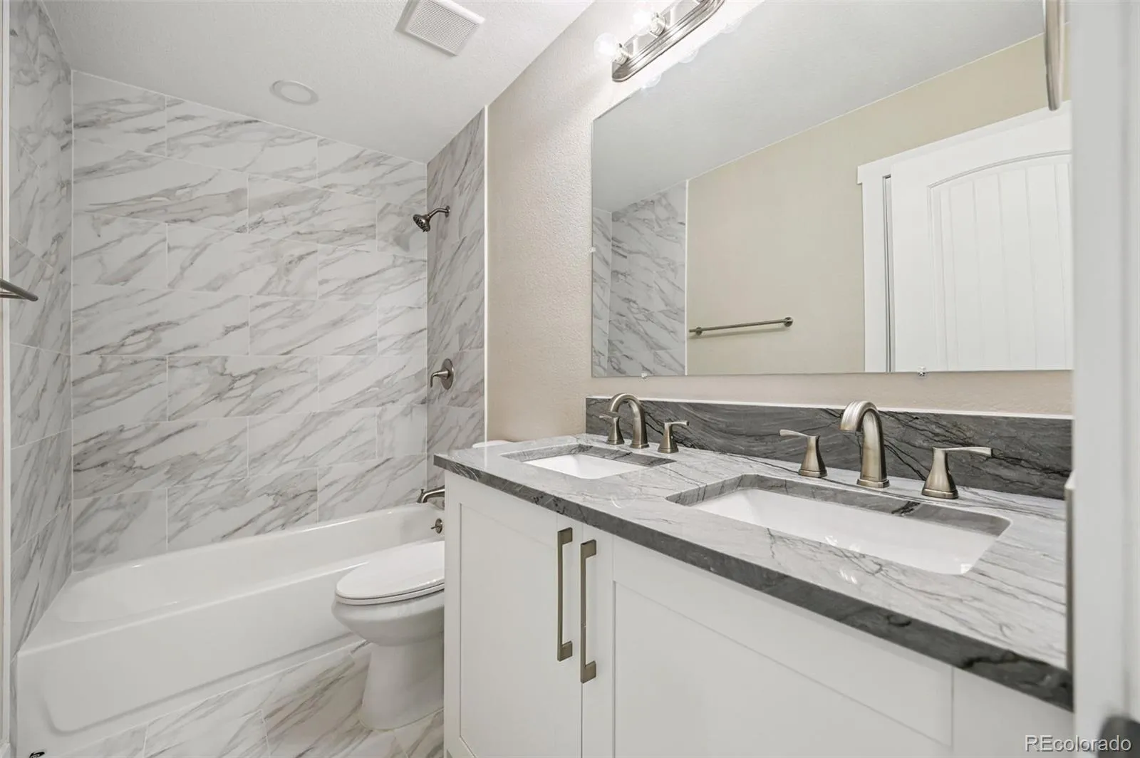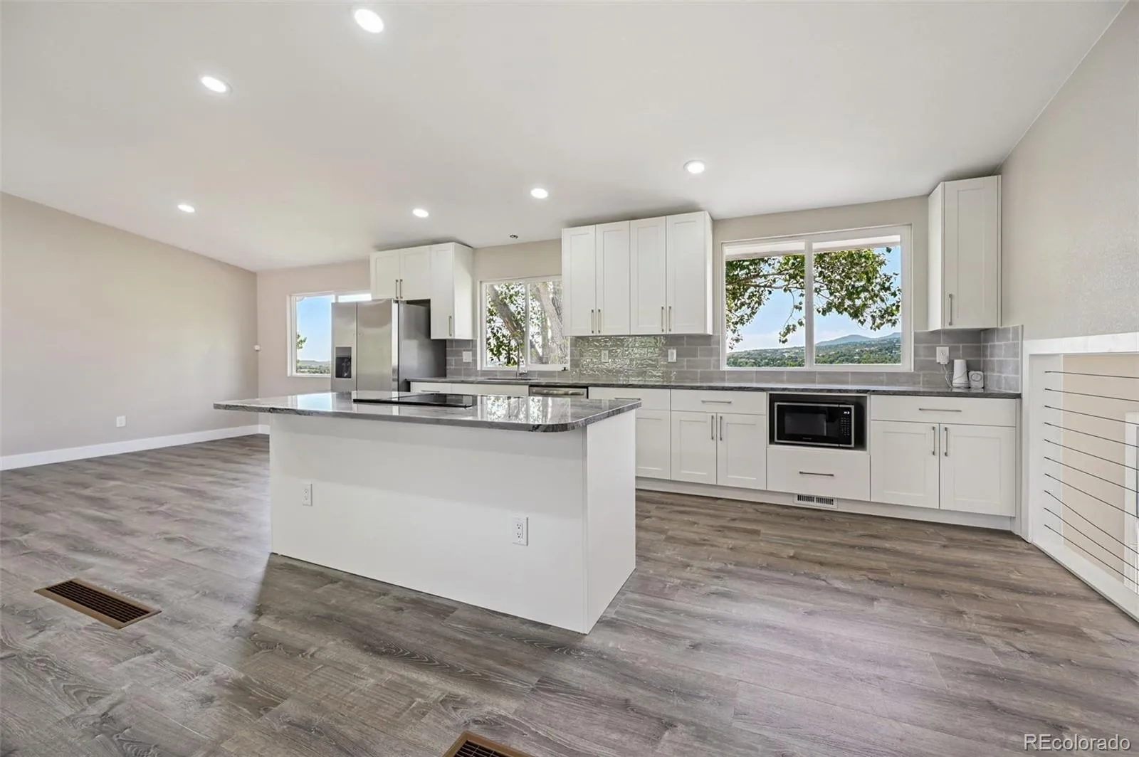 Completely Remodeled with Stunning Mountain Views! This beautifully updated 4-bedroom, 3-bathroom home has been fully remodeled from top to bottom. Step inside to find fresh interior paint, luxury vinyl plank flooring, new carpet, and modern canned lighting throughout. The stylish kitchen features quartzite countertops, new stainless steel appliances, and opens seamlessly to the living and dining areas—perfect for entertaining. The upper level includes the master bedroom and ensuite, 2 additional bedrooms, and another full bathroom. The lower level features a fireplace and a walk-out to the backyard deck with city and mountain views. The basement includes a 4th bedroom, 3/4 bathroom, laundry room, and extra storage. Also the basement includes a second family room with a wet bar that makes the finished space ideal for gatherings or game nights. A 2-car garage completes this move-in ready home that truly has it all. New roof, new windows, new garage door and opener, and new exterior paint. Conveniently located just minutes from Fort Carson and NORAD, this home offers both comfort and convenience.