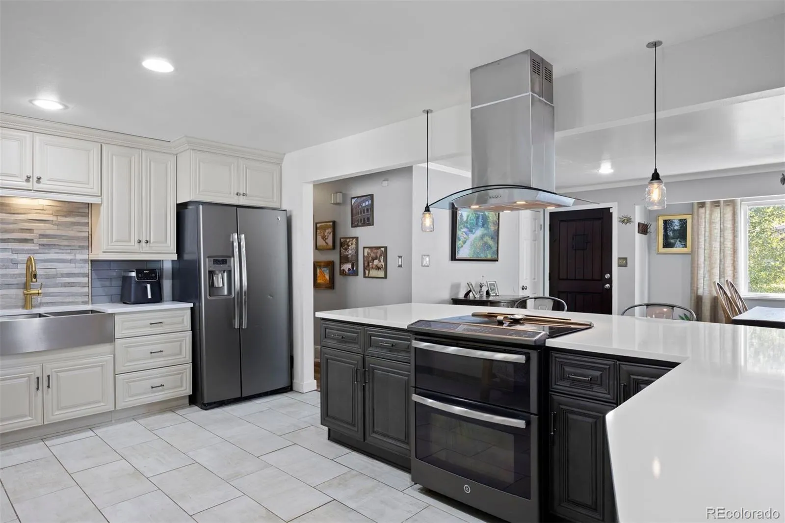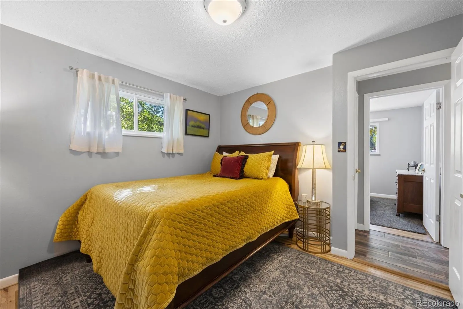 Wonderfully remodeled ranch in Lakewood’s desirable Cloverdale West with wide picturesque treelined streets! This 4-bedroom, 2-bath home sits on a spacious 8,146 sq ft lot and blends comfort, style, and true Colorado living. New Class 4 Impact Resistant Roof to be installed prior to closing! Enjoy an open-concept kitchen with quartz countertops, glass tile backsplash, a center island with added cabinet storage beneath and stainless-steel appliances. The dining is adjacent the kitchen as the once garage has been converted into a cozy family room retreat. The main floor offers newer vinyl plank flooring as it leads you to the main floor full-bath followed by three versatile bedrooms. The current primary bedroom functions in the basement with a 3/4 bath that has a beautiful new tile finish. This home lives large with all the different living spaces and bedrooms so you can have home-office, exercise room and media room options. Air conditioning bonus addition. Step outside to your backyard oasis, a beautifully landscaped retreat with raised garden beds and mature perennials with coneflowers, lavender, black eye susan, tall grass and lily bulbs to name a few. Mature seasonal base perennials that will delight as seasons change. Low maintenance and Colorado friendly. An expansive covered patio complete with a built-in gas grill and edison lighting strung about, perfect for entertaining year-round. The oversized, finished, and insulated 2-car detached garage offers epoxy floors, extra storage, and plenty of off-street or RV parking (no HOA!). Just a short walk to Kendrick Lake Park and nearby trails, and minutes to Belmar shopping & dining, Green Mountain, and Red Rocks Amphitheatre. This is more than a home, it’s the Colorado lifestyle you’ve been waiting for.