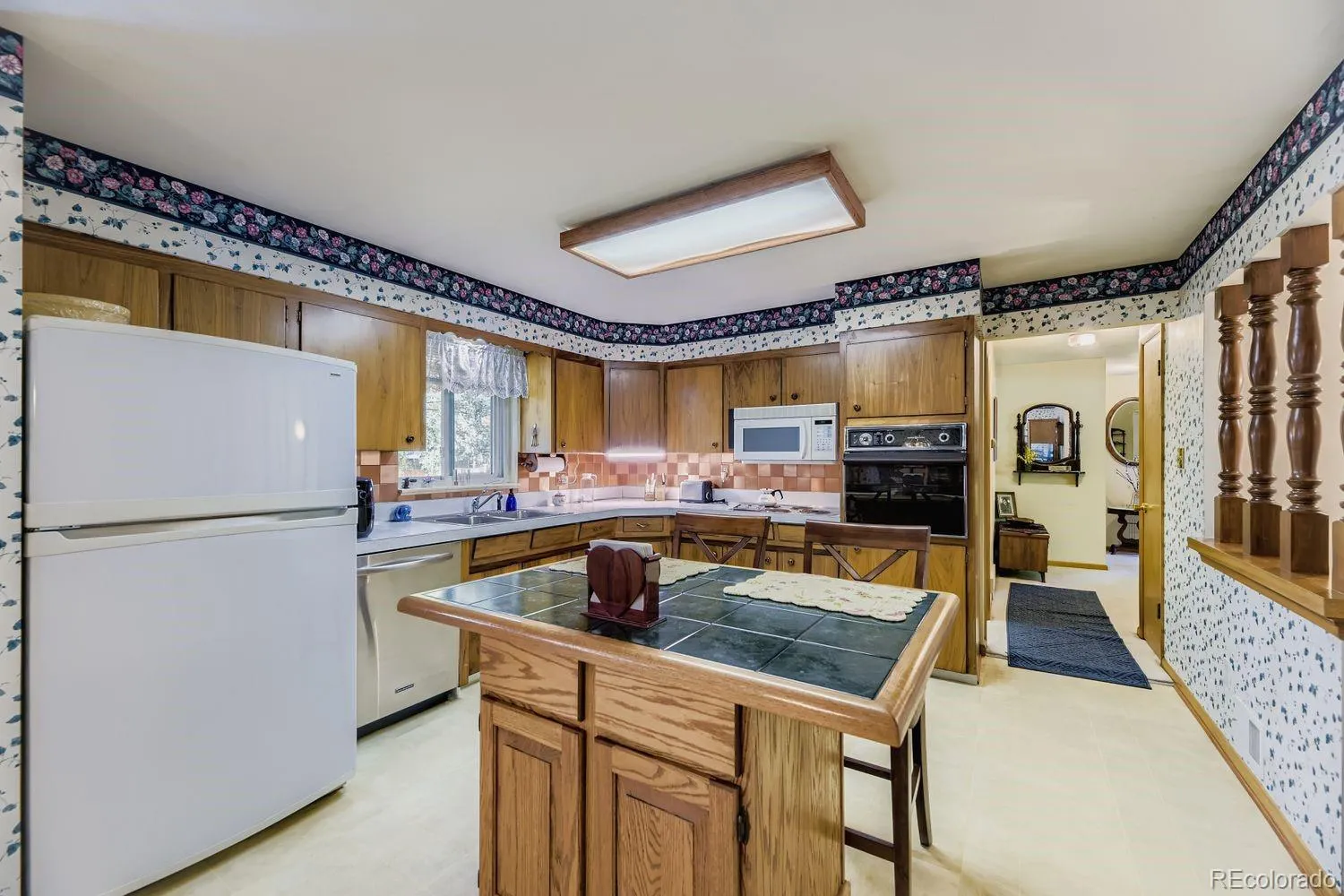 Best Price in the area for this sturdy brick ranch-style home in the highly desirable Park East neighborhood! This lovely 3-bedroom, 2-bath residence has a 2 car attached garage for your convenience. A new roof is being installed for added peace of mind. Step inside to find a warm and inviting living room perfect for relaxing or entertaining. The main level offers 2 comfortable bedrooms and a full 4-piece bath, while the finished lower level includes a non-conforming 3rd bedroom, a ¾ bath, and a massive family room—ideal for movie nights, a playroom, or hosting guests. The chef in the family will love the spacious kitchen with an abundance of cupboards, a center island, and an adjacent dining area featuring a cozy fireplace—perfect for chilly Colorado evenings. Stay comfortable year-round with central air conditioning for those hot summer days. Just off the kitchen, enjoy the enclosed sunroom, a great bonus space that leads to the generously sized backyard with mature trees offering shade and privacy, plus an oversized shed for extra storage or hobbies. The lower level also includes a spacious laundry room with utility sink, as well as a dedicated workshop—perfect for DIY projects or extra storage. Don’t miss your chance to own this well-maintained home in a prime location near parks, schools, shopping, and more. Schedule your private showing today! Sentrilock lockbox. Call Listing Broker if you need a code.
