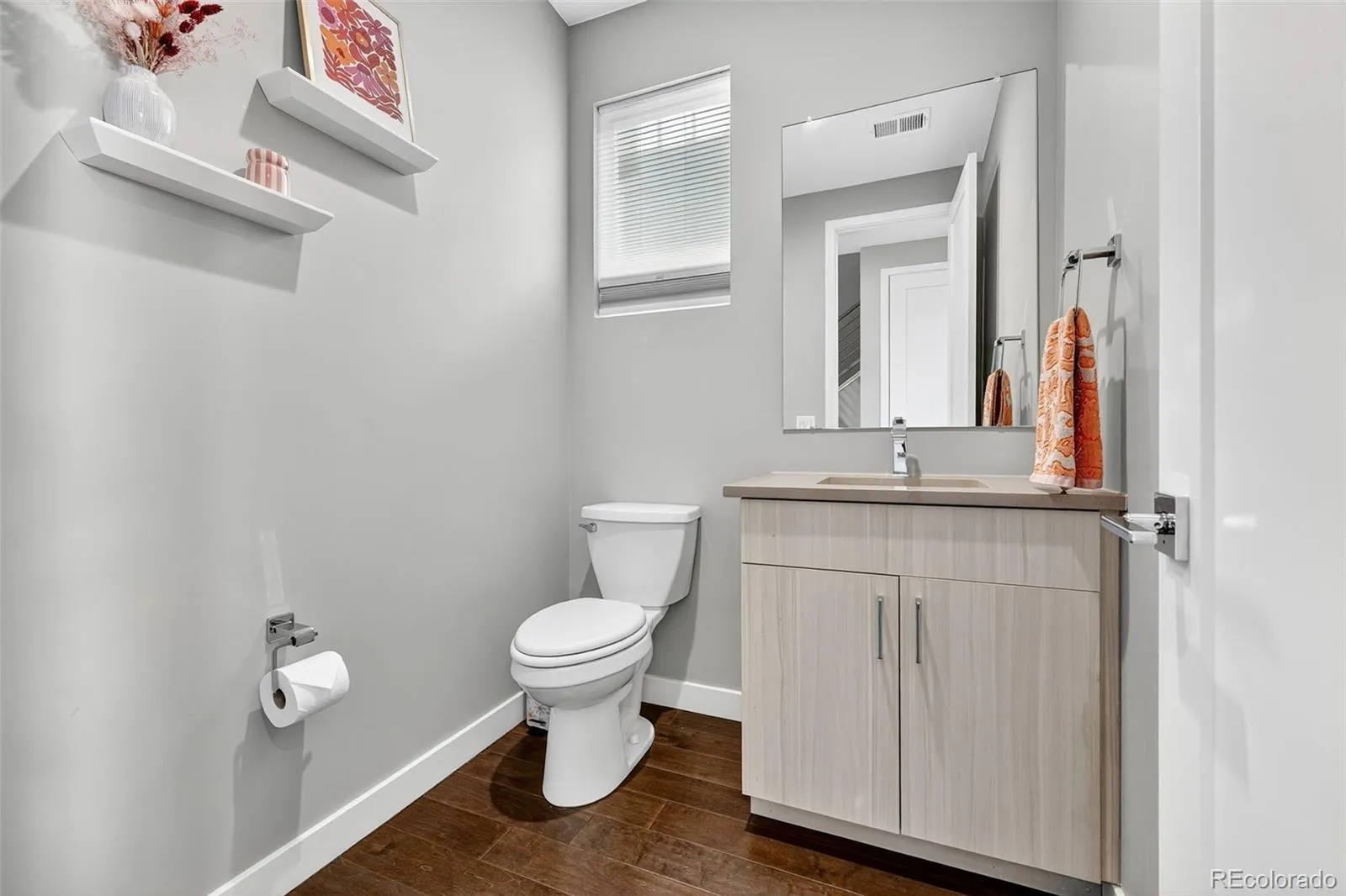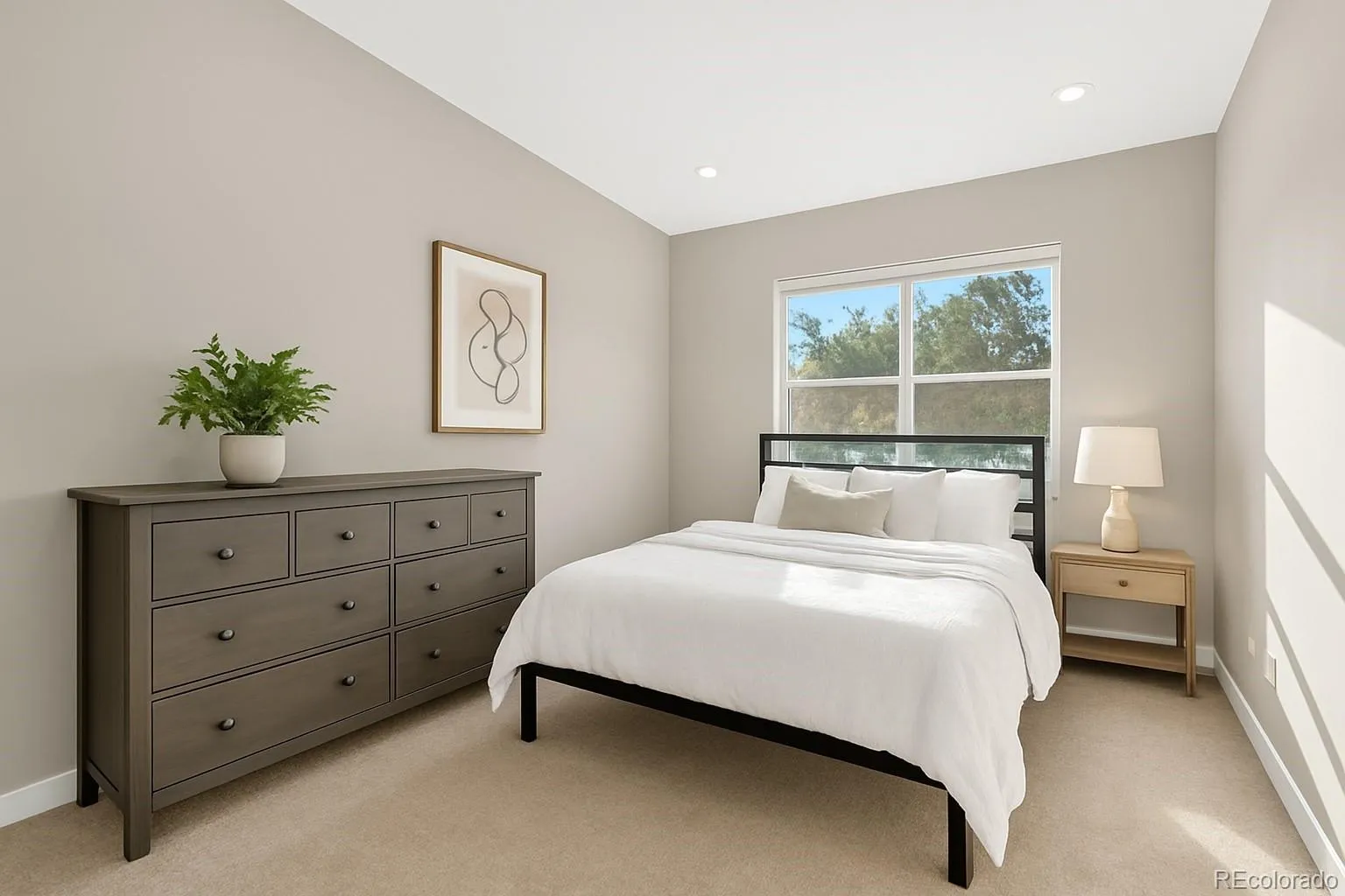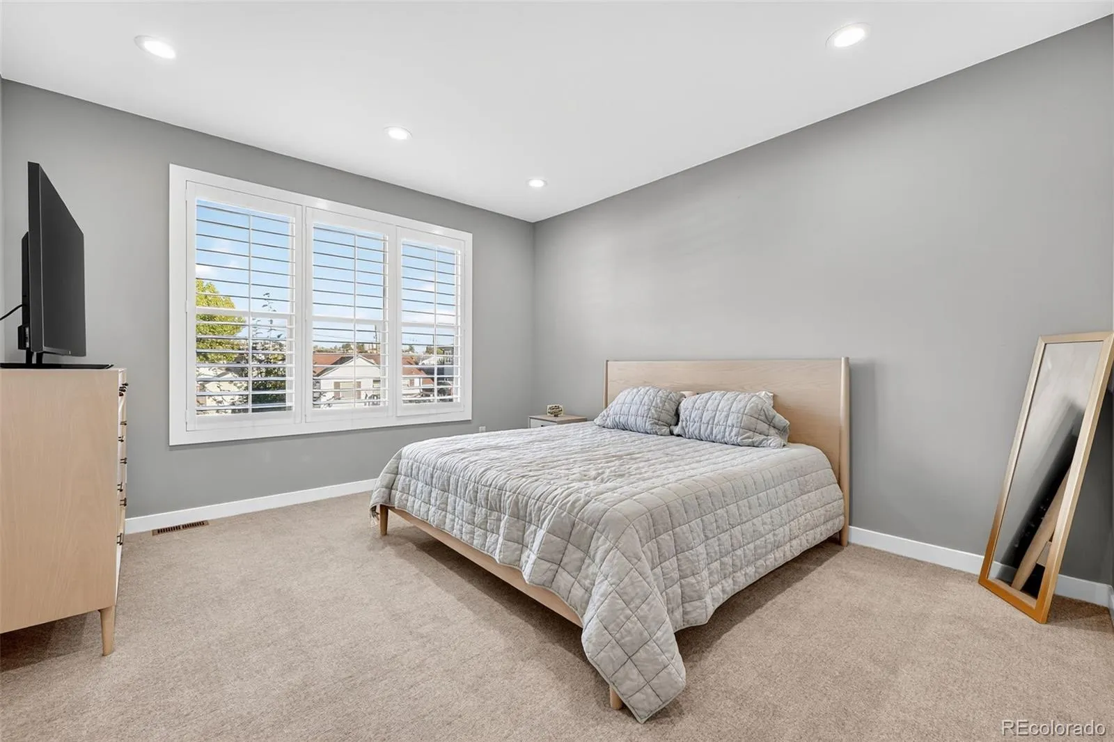 Welcome to this better-than-new half duplex in the heart of Overland, just minutes from Platt Park. Thoughtfully designed with a superior floor plan and timeless, elevated finishes, this home stands out among similar properties. From the moment you arrive, the modern curb appeal and professional landscaping make a lasting impression. Step inside to a welcoming entryway—perfect for greeting guests or slipping off your shoes—before entering the bright, open-concept living, dining, and kitchen area. Beautiful dark engineered hardwood floors, expansive windows, and light cabinetry create a striking yet inviting aesthetic. Custom high-end window treatments add a refined touch. The main level also features a versatile office or nonconforming fourth bedroom, a powder room, a convenient mudroom, and sliding doors that lead to the private backyard with new turf and a two-car garage. Upstairs, you’ll find three spacious bedrooms and two full bathrooms. The primary suite offers a luxurious retreat with a spa-like bath featuring dual sinks and a generous walk-in closet. Secondary bedrooms are equally well-appointed, sharing a stylish full bathroom. All bedrooms are finished with premium wool carpeting for an added sense of comfort. A laundry room, with washer and dryer included, on this level as well for extra ease. Two car garage completes this property. Situated in a neighborhood with incredible access to Denver’s hottest destinations—and with no HOA—this home offers both lifestyle and lasting value.