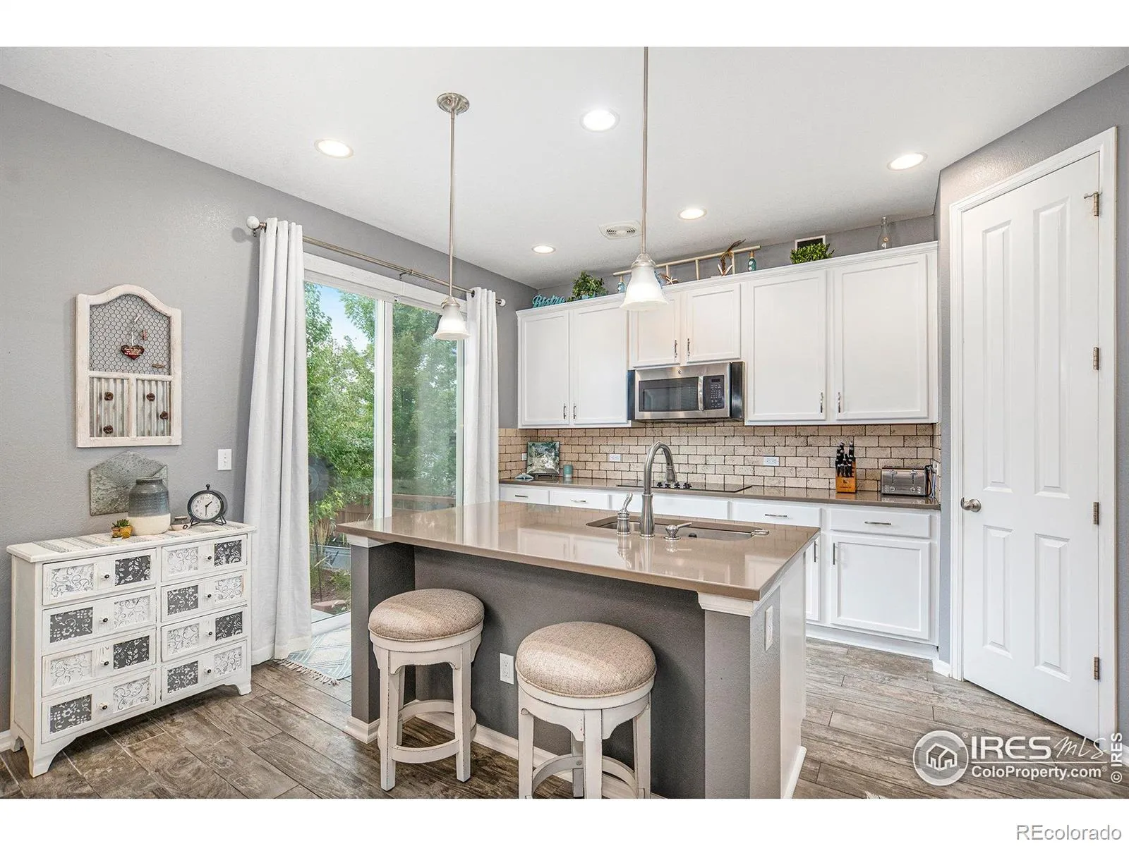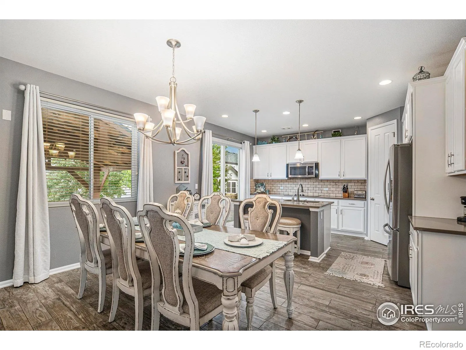 Single-story living in Wyndham Hill Community pool & park two blocks away Finished basement with kitchenette Video tour available online. This beautifully maintained ranch-style home offers over 3,700 sq ft of finished space with a bright, open-concept layout designed for modern living. The main level features a spacious living area with gas fireplace, upgraded flooring, and abundant natural light. The kitchen includes white cabinetry, quartz-style countertops, double ovens, gas cooktop, subway-tile backsplash, and a large island with pendant lighting-perfect for gatherings. A dedicated main-floor office provides flexible space for remote work or study. The finished basement adds exceptional versatility with a full kitchenette, bedroom, bath, and expansive living area-ideal for guests, multigenerational living, or recreation. Updated systems include newer roof and windows installed within the last few years. Enjoy outdoor living in the private, fully fenced backyard featuring a covered patio with pergola, concrete entertaining area, and landscaped beds. Additional highlights include a two-car garage, laundry room with built-in cabinetry, and neutral finishes throughout. Located in the Wyndham Hill community offering parks, playgrounds, trails, and a neighborhood pool just steps away. Easy access to I-25 provides quick commutes to Frederick, Firestone, Longmont, and the greater Front Range.