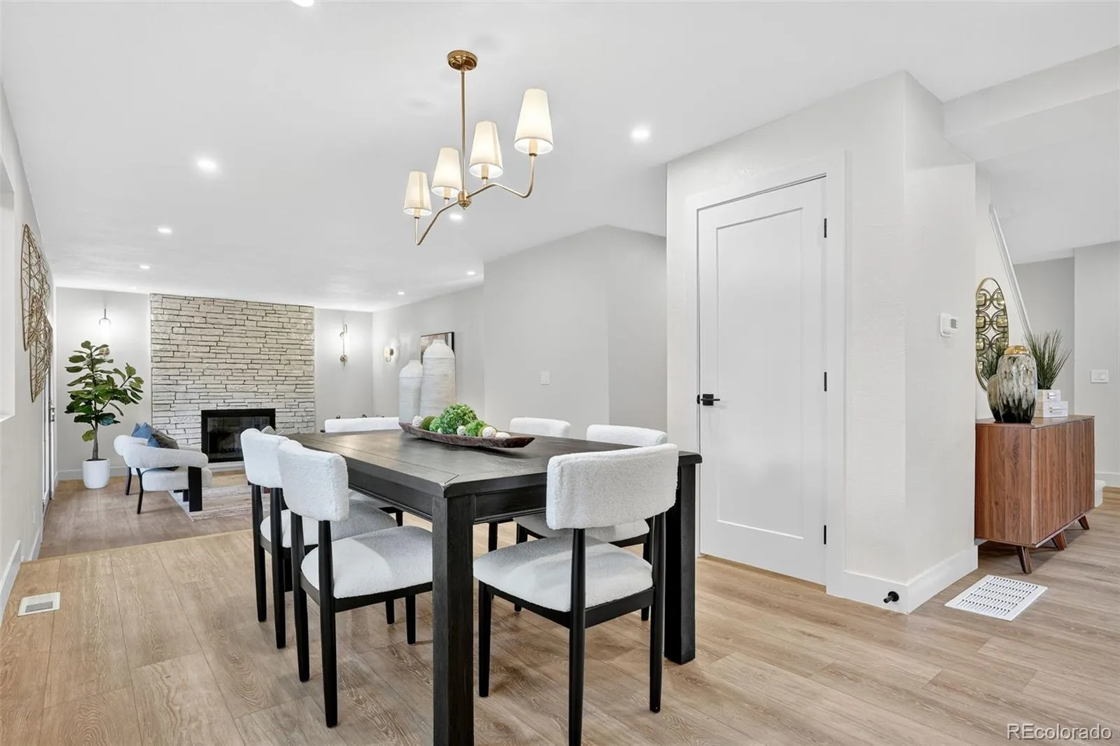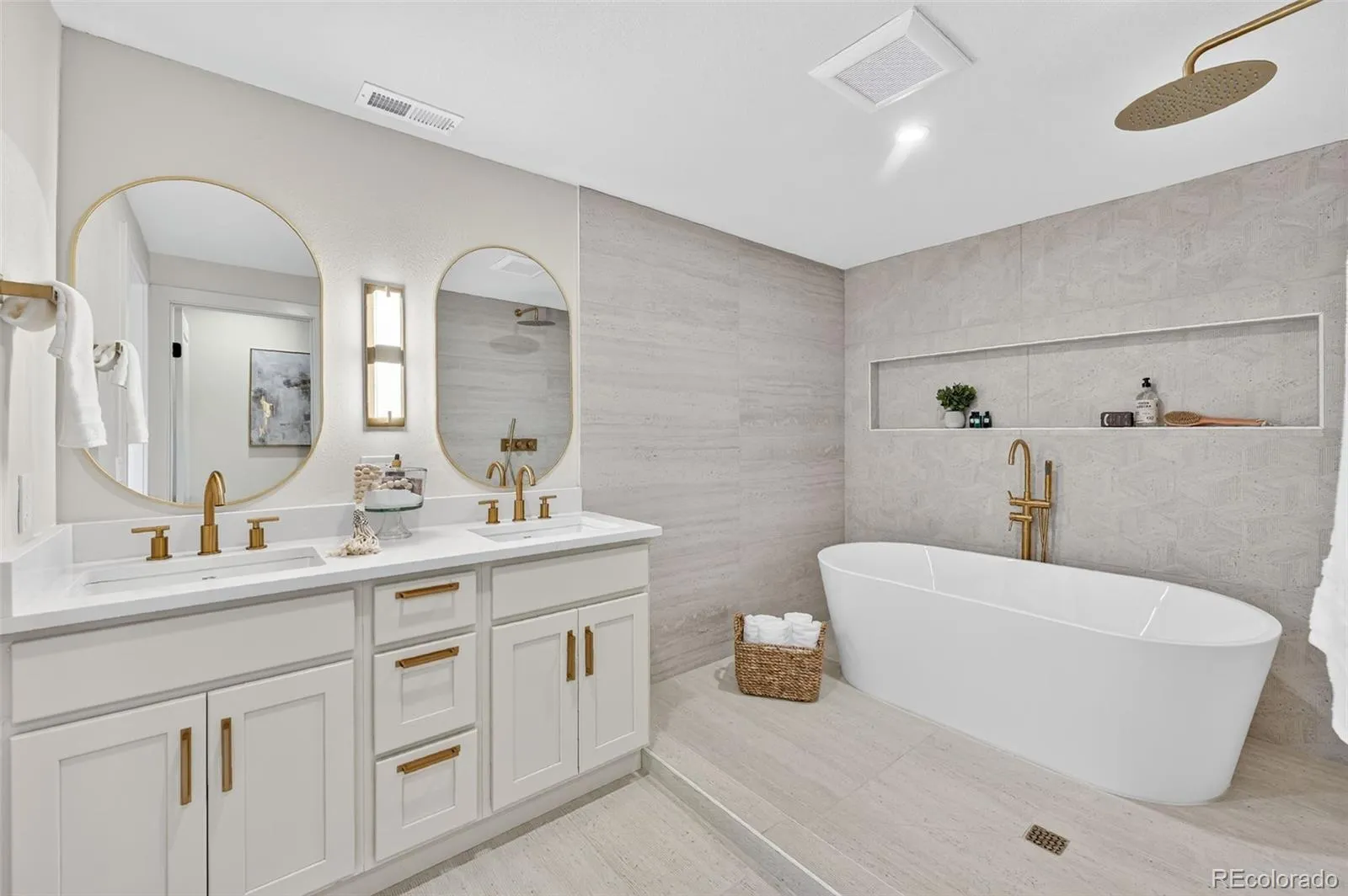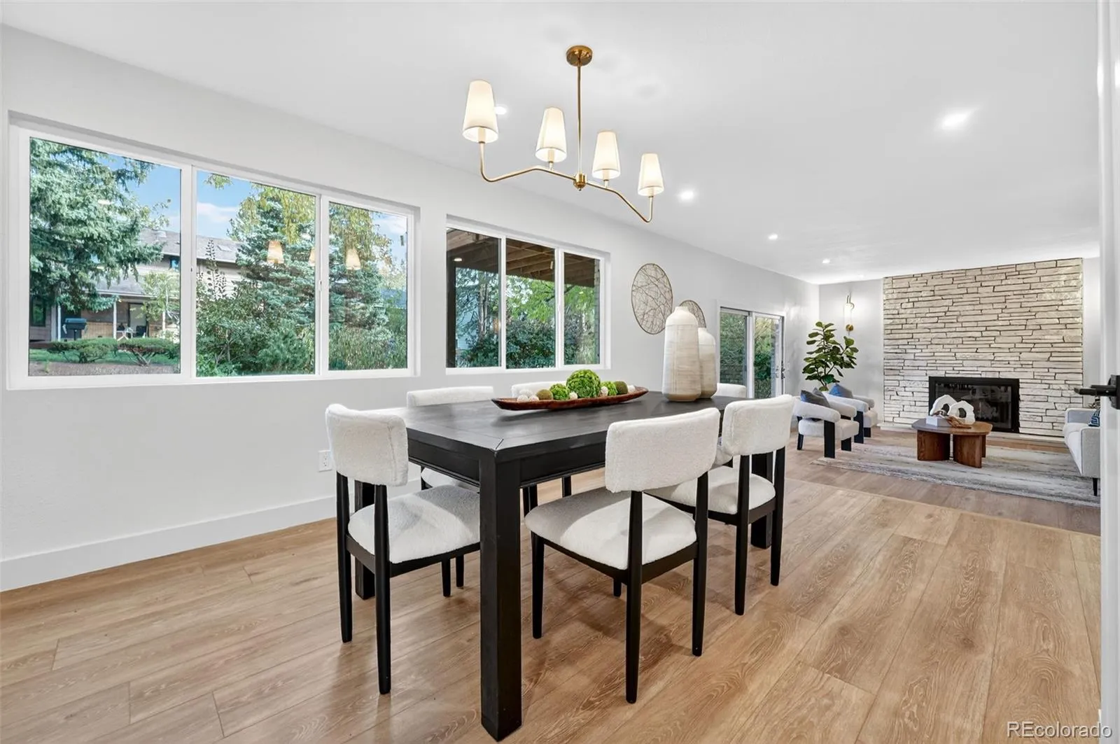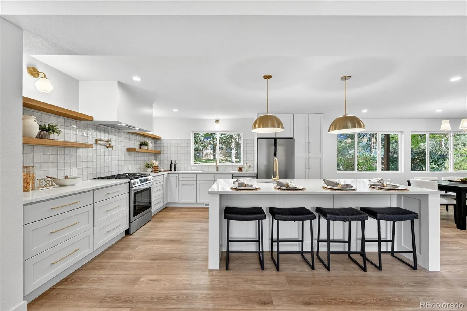 Welcome to this fully remodeled luxury home in the highly sought-after Sundance Hills community. This 5-bedroom, 4-bathroom residence has been meticulously updated from top to bottom with high-end finishes and a modern, open-concept floor plan designed for both everyday living and effortless entertaining. The heart of the home is a gourmet kitchen featuring custom cabinetry, premium appliances, pot filler, full-height designer backsplash, and a large center island. The kitchen opens to the formal living room and family room, complete with a cozy fireplace and 8-foot sliding glass doors that flood the space with natural light and lead to a beautifully landscaped backyard. Retreat to the private primary suite, where you’ll find a spa-like ensuite bathroom that rivals a luxury hotel—with a deep soaking tub, oversized shower, dual vanities, and sleek gold-toned fixtures. The suite also includes a private deck and large walk-in closet. A finished basement adds major versatility with a spacious rec room/game room, second dining area with wine fridge and bar fridge, a full bathroom, and an additional bedroom—ideal for guests or multigenerational living. Community amenities such as a six-lane competition pool, diving pool, tennis courts, sand volleyball, and playground are available through additional membership. Located in the top-rated Cherry Creek School District and just minutes from Cherry Creek Reservoir and DTC for premier dining, shopping, and outdoor adventures. Style. Comfort. Location. It’s all here