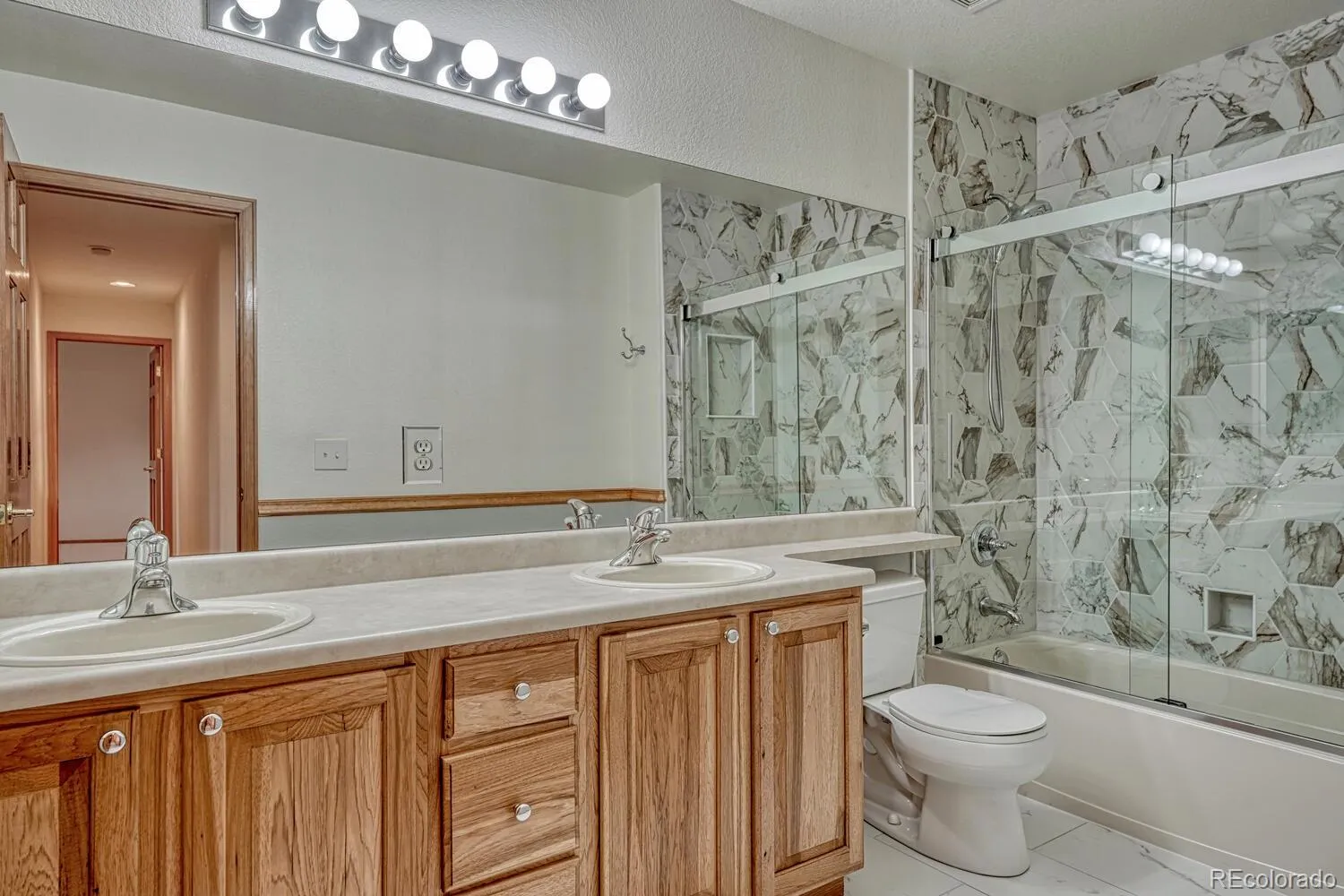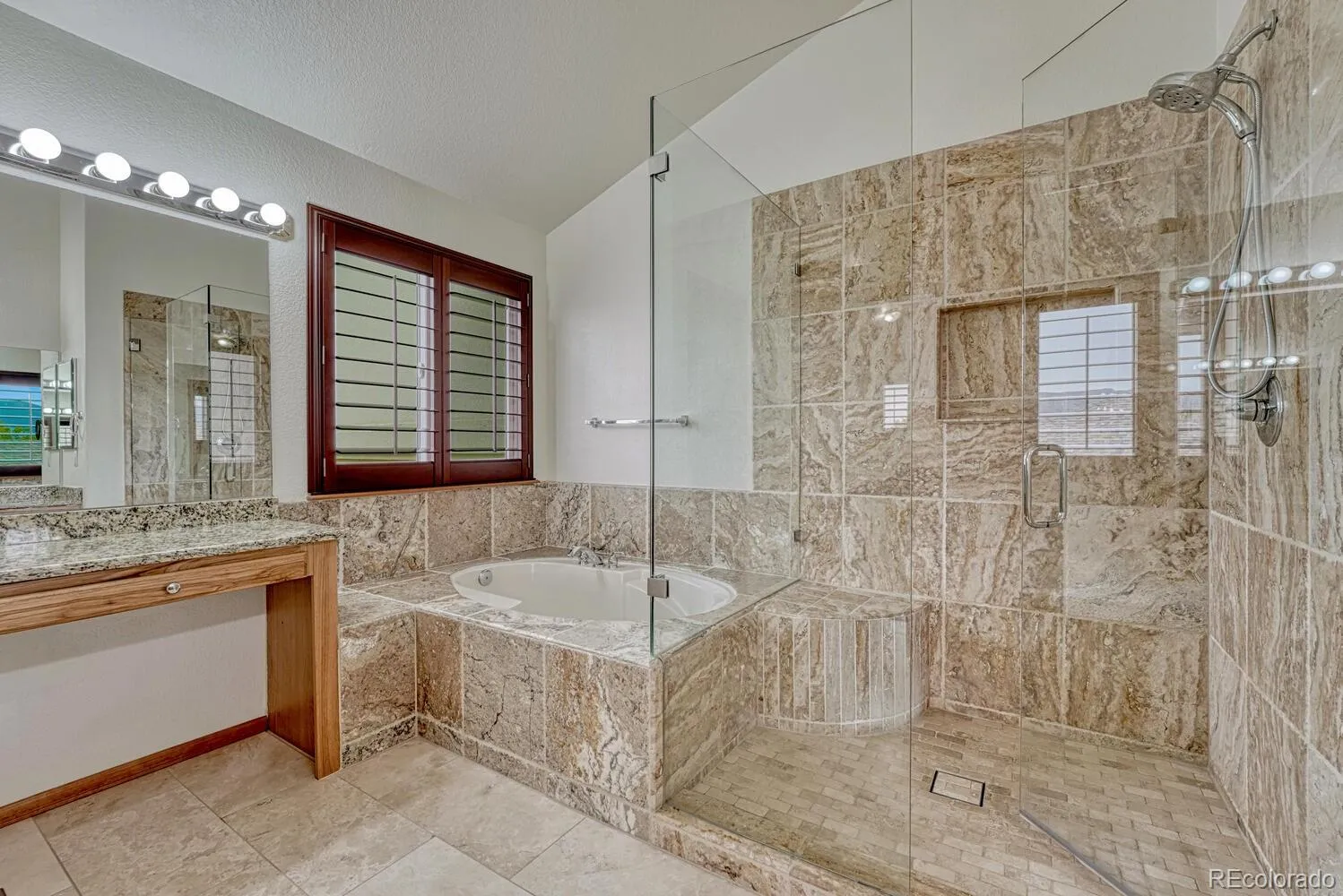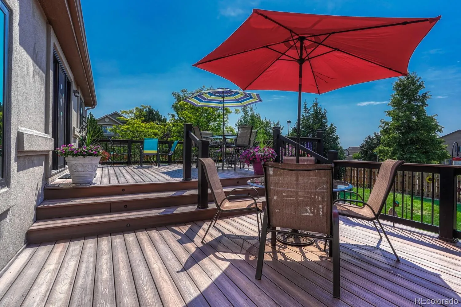 Impeccably maintained and beautifully appointed, this stunning 6-bedroom, 4-bath home offers over 4,100 square feet of elegant living space in a peaceful cul-de-sac location. Adjacent to acres of open space with scenic hiking trails, a creek, and a tranquil pond, as well as tons of restaurants and entertainment, this property perfectly balances nature and convenience. Step inside to soaring vaulted ceilings and an abundance of natural light pouring through upgraded high-end windows installed just four years ago. The open layout flows seamlessly from the formal living and dining areas into a spacious kitchen featuring granite countertops, double ovens, and extensive cabinetry—perfect for entertaining. The kitchen walks out to a sprawling custom deck overlooking pristine landscaping, mature trees, and expansive mountain views. The family room offers warmth and comfort with a cozy fireplace and tons of windows for natural light. Upstairs, the primary suite is a true retreat with breathtaking mountain views, a huge walk-in closet, and a fully remodeled spa-like bathroom showcasing granite counters, dual sinks, a soaking tub, and an oversized glass shower. Downstairs, the fully finished basement is an entertainer’s dream, complete with a 20-foot custom wet bar designed in the style of an English pub—ideal for hosting gatherings or relaxing with friends. Additional highlights include high-end plantation blinds, ample storage in the 5′ tall sealed crawlspace, a huge 3-car garage, and a lush backyard oasis that’s both inviting and low-maintenance. From top to bottom, every detail of this home reflects quality, care, and pride of ownership. Enjoy Colorado living at its finest—peaceful views, convenient to shopping and fun, outdoor adventure just steps away, and an exceptional home ready for its next chapter.