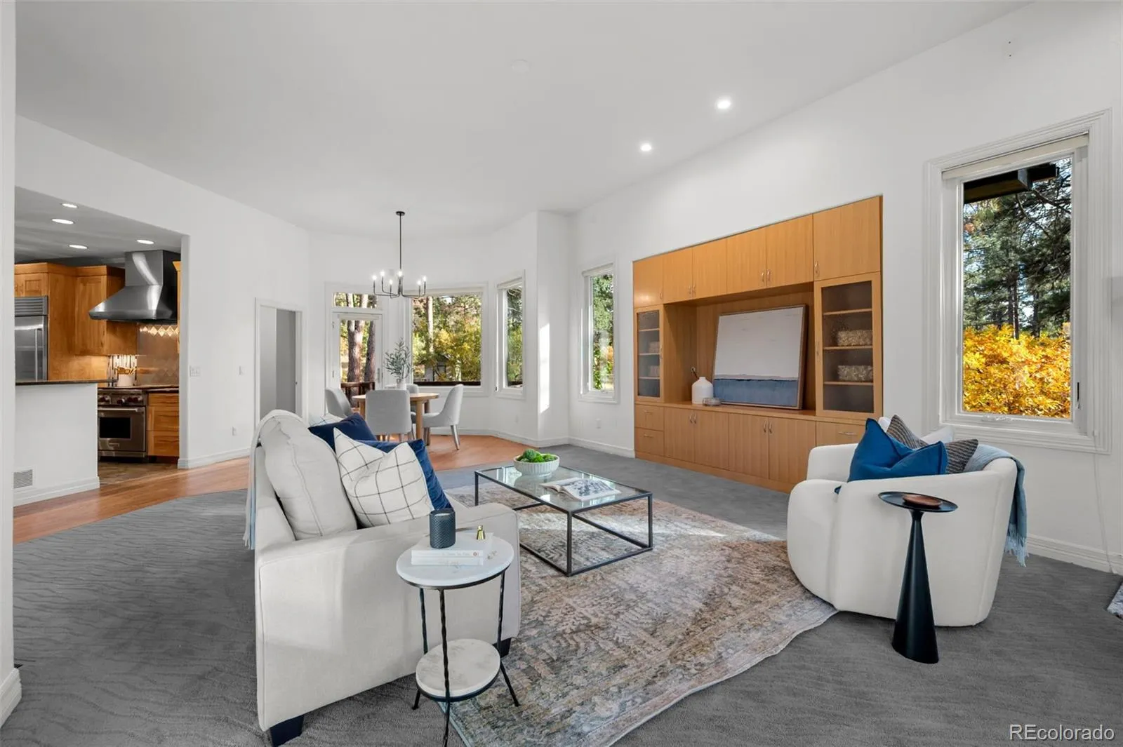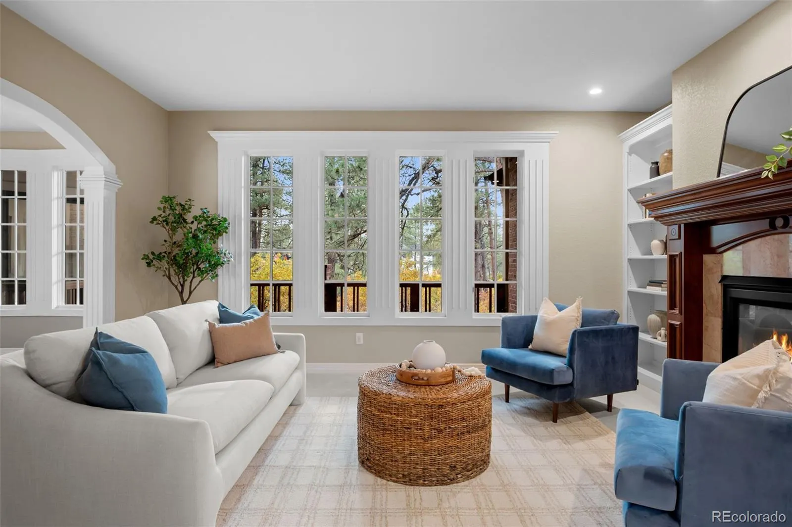 The family room filled with natural light, also features an electric fireplace. Just off the family room is the eat-in kitchen nook & the fully equipped kitchen—remodeled in 2019—boasts top-tier appliances (Wolf, Subzero & Asko) + a reverse osmosis water at the sink. A large walk-in pantry & a spacious laundry room add to the functionality of the home.
