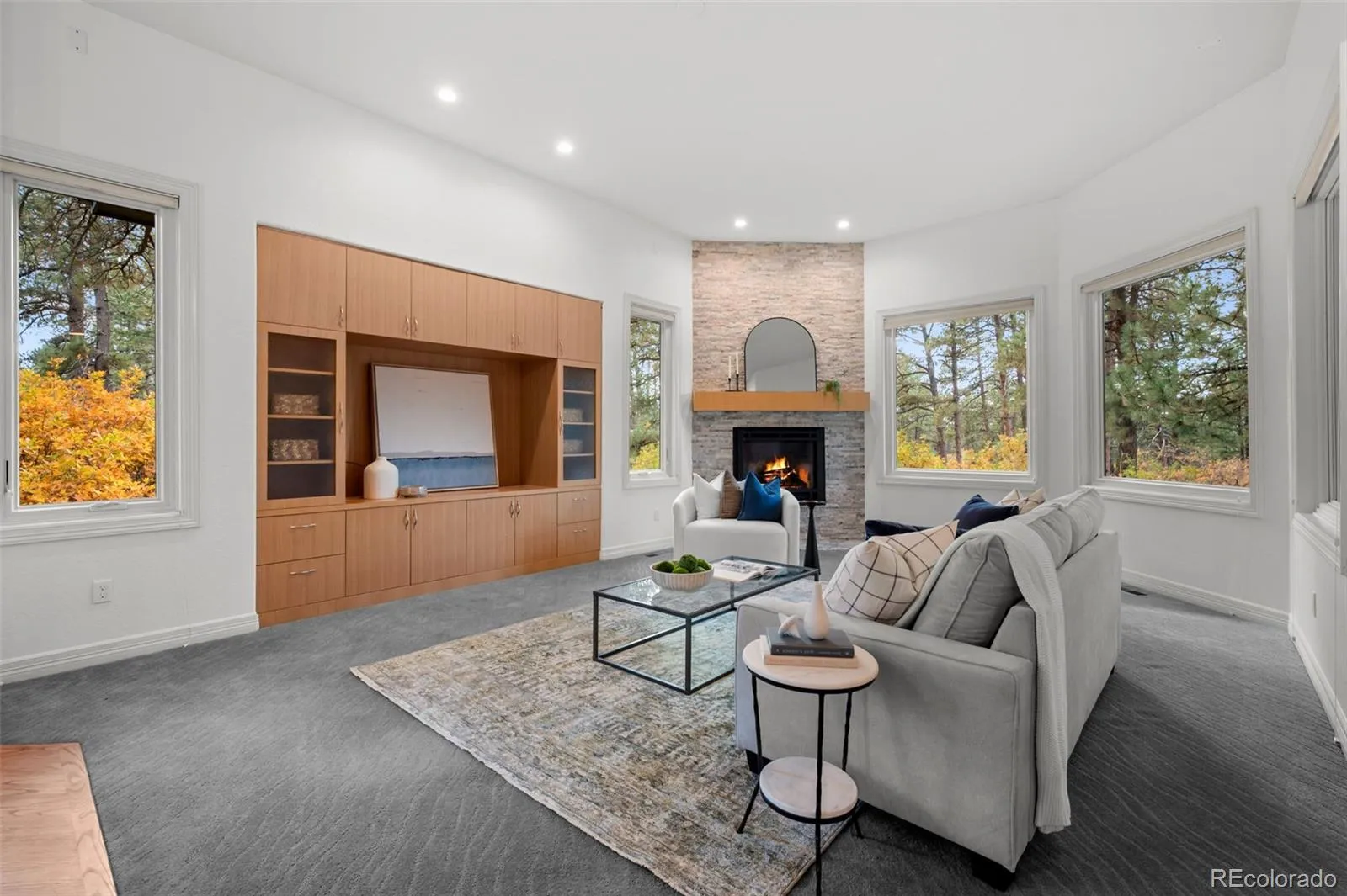 The main floor primary suite is a true retreat, complete with a gas fireplace, large picture windows, & direct access to the covered deck. The en-suite bathroom includes a steam shower & walk-in closet. The living room is warm & inviting, with wood accents & a gas fireplace, seamlessly connecting to the dining room—perfect for gatherings, especially during golden hour.