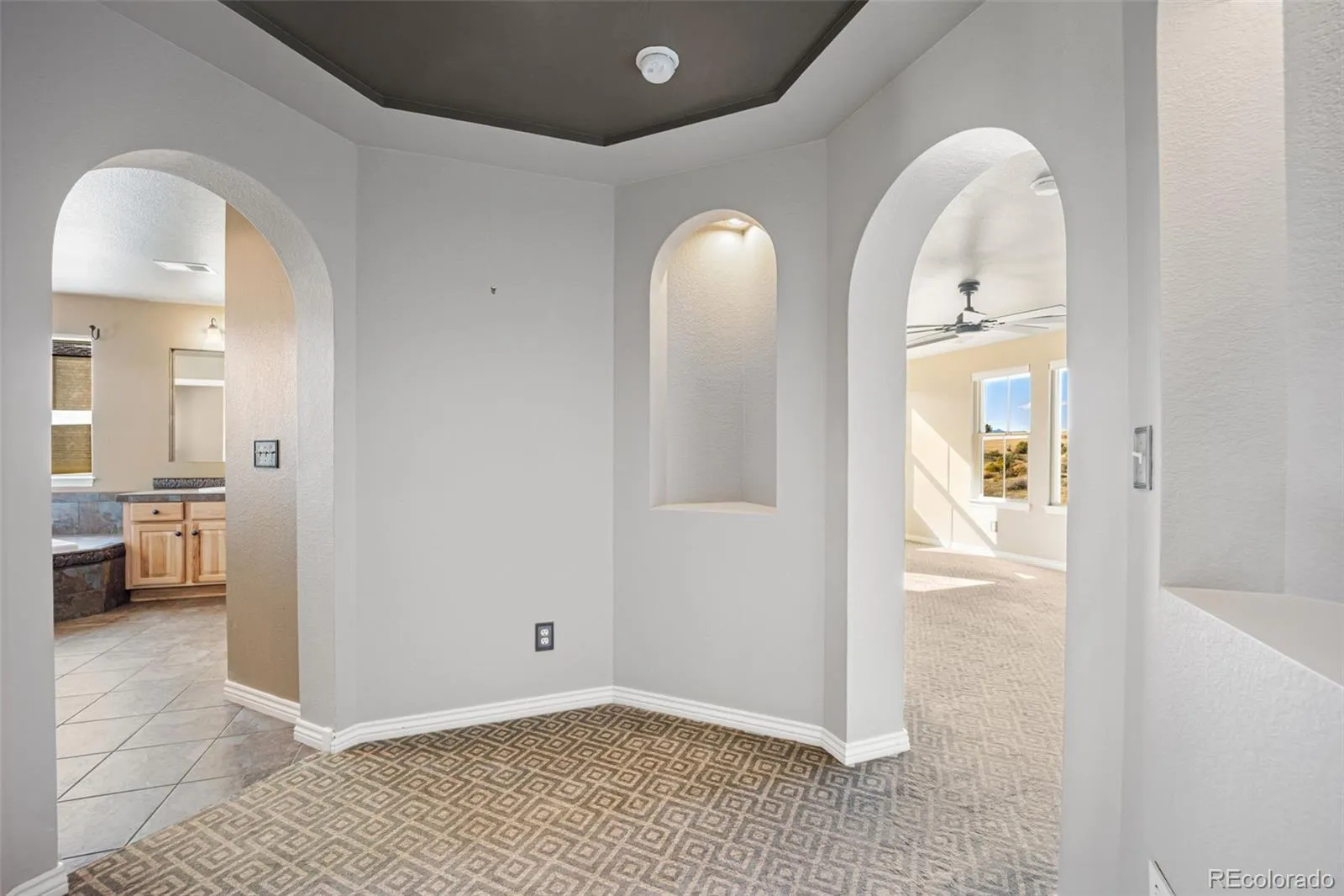 Welcome to this exquisite 5-bedroom, 5-bath semi-custom Joyce Home boasting over 4,600 sq. ft. of beautifully finished living space and a rare 4-car garage. Perfectly situated on a quiet cul-de-sac and backing to open space, this home offers breathtaking, unobstructed mountain views—your true Colorado dream! Step into the grand two-story foyer with a dramatic dual-landing staircase and newly refinished hardwood floors that flow throughout the main levels. The gourmet kitchen is a chef’s delight, featuring granite countertops, stainless steel appliances, gas cooktop, 42″ cabinets, a large island, and a sun-soaked breakfast nook. Enjoy stunning sunsets from the spacious TimberTech deck with natural gas hookups for grilling and heaters. Entertain with ease in the sun-filled great room, elegant dining room, or the private main-level study. Retreat to the luxurious primary suite with sweeping mountain views, dual walk-in closets, and a spa-like 5-piece bath with Roman soaking tub. Upstairs, you’ll also find a spacious loft with a wall of windows framing the Rockies, a private en-suite bedroom, and two additional bedrooms (one with a semi-private bath). The fully finished basement is an entertainer’s dream, showcasing a $230K remodel with a HIDDEN home theater, granite wet bar with full-size refrigerator, large game/rec room with shuffleboard, bonus bedroom, and a stylish ¾ bath. Step outside to the expansive 39×15 aluminum custom covered patio, complete with a 5-person luxury hot tub, outdoor TV, natural gas connections for year-round enjoyment. Located in one of Castle Rock’s premier communities that host favorites like Music in the Meadows, Castle Rock WineFest and holiday events hosted at The Grange and Taft House. This home truly has it all—luxury, views, and community. Don’t miss the chance to make it yours. Schedule your private tour today! Virtually staged pictures