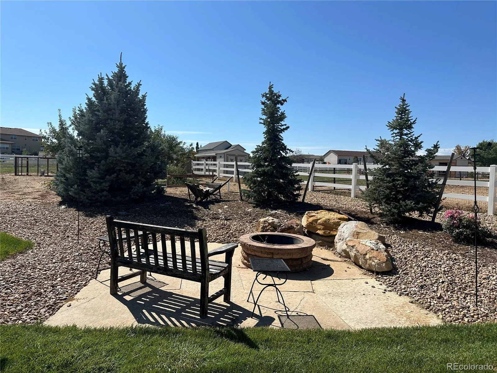 Welcome home! Located in the highly desirable Todd Creek Riverside Neighborhood, is your dream home! Sitting on 1 beautifully landscaped acre, surrounded by open skies and mountain views, this lot also features a custom fire pit and builder installed water mitigation French drain. In the backyard, you can enjoy the sunrise or sunset under the patio addition and custom pergola.