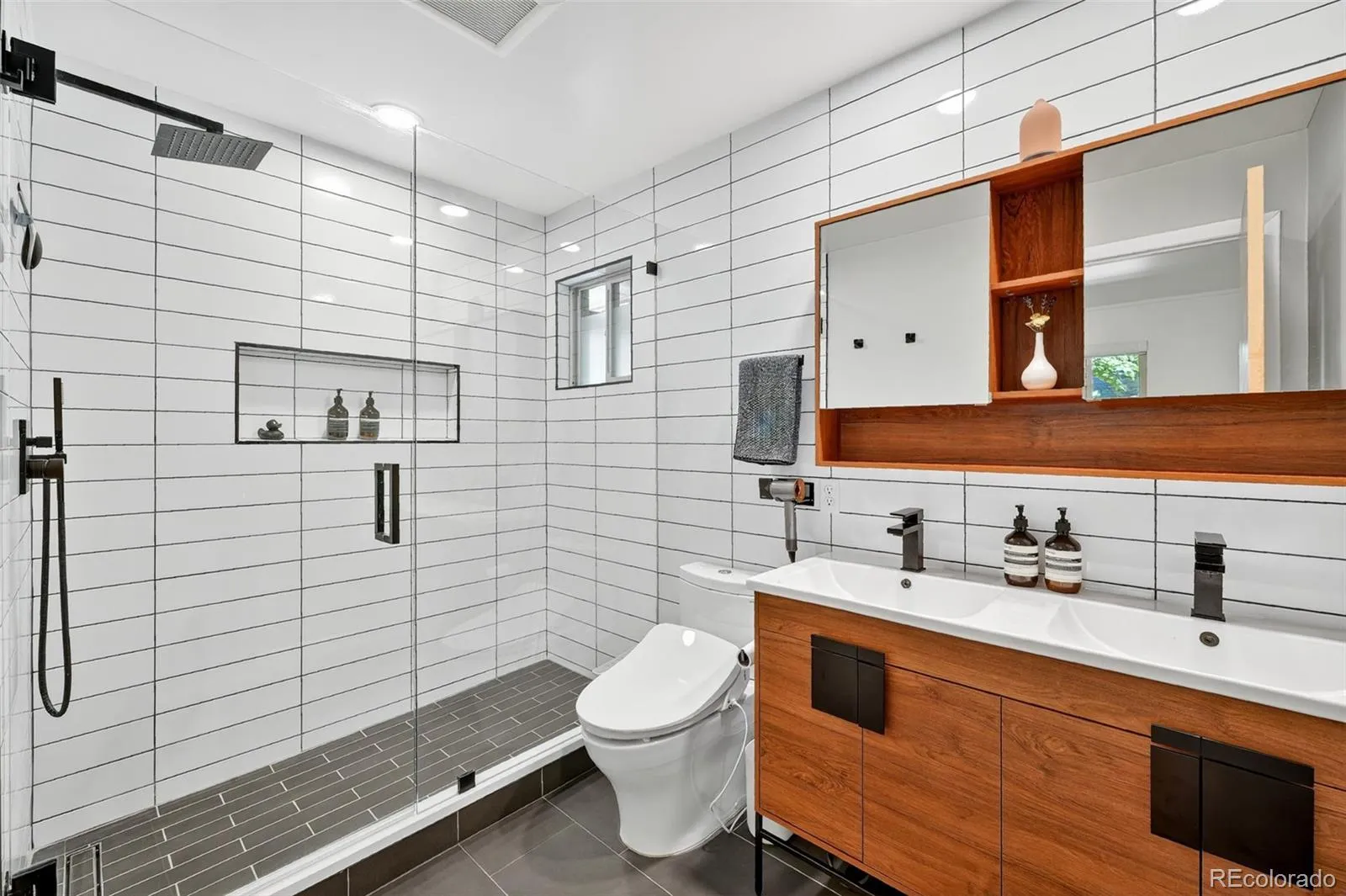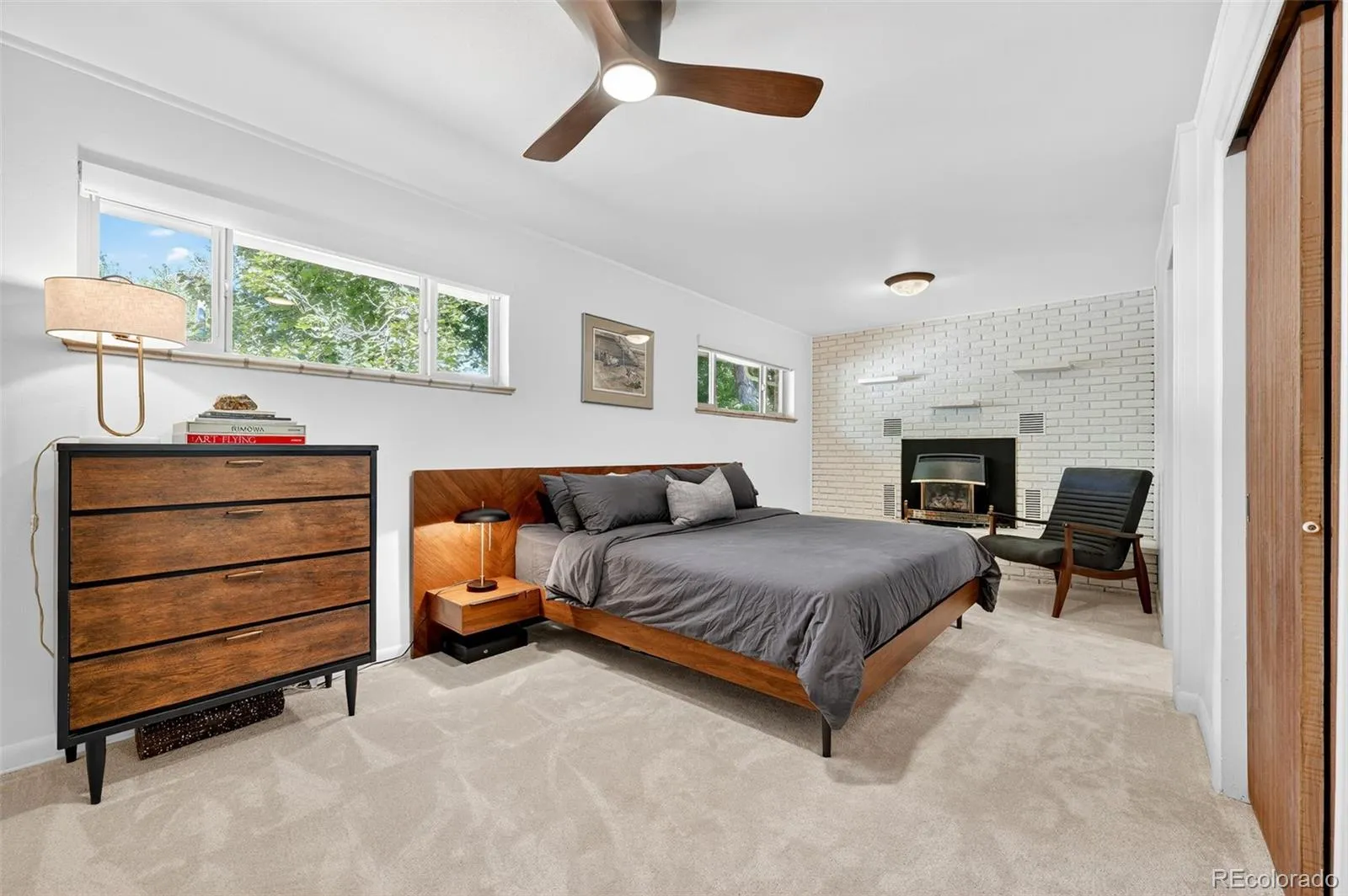 Both bathrooms have been newly reimagined with sleek modern tile, mid-century inspired vanities, mirrors, and lighting, plus the added luxury of heated floors. The spacious primary suite offers an ensuite bath — a true retreat at the end of the day. Two additional bedrooms provide flexibility for guests, a home office, or creative space.