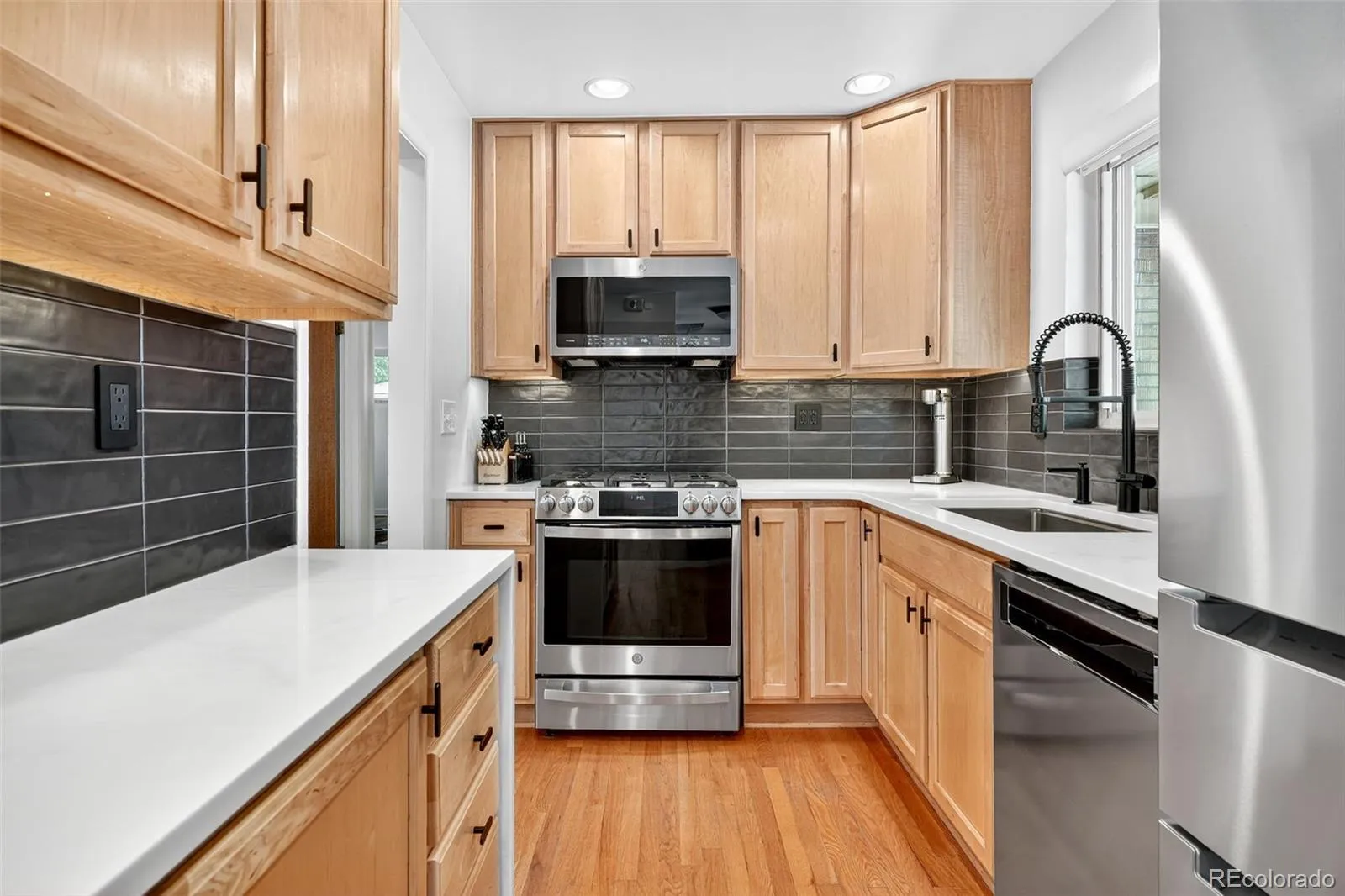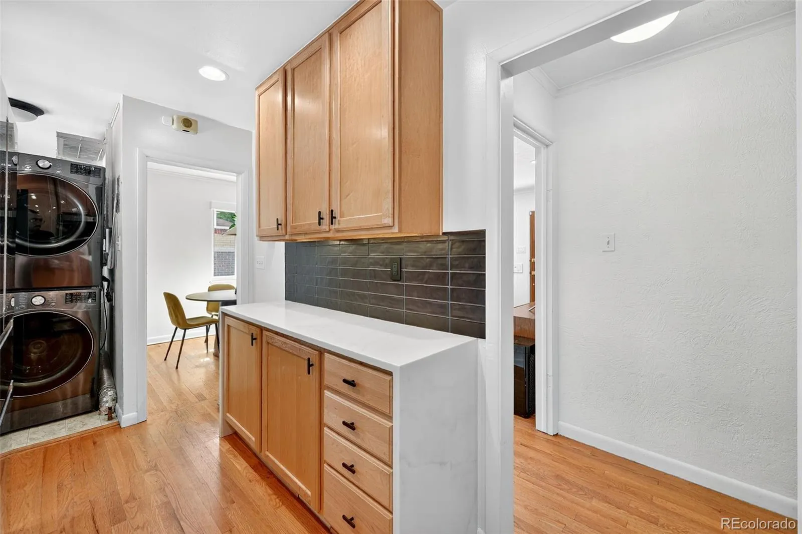 Entertain with ease in the open living and dining areas filled with natural light — the perfect space to gather, relax, and make memories. The kitchen has been completely remodeled with a modern tile backsplash, quartz countertops featuring a waterfall edge, stainless steel appliances, and updated electrical — blending beauty, functionality, and craftsmanship.