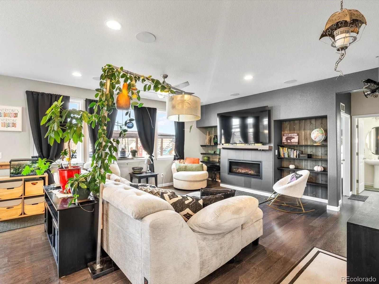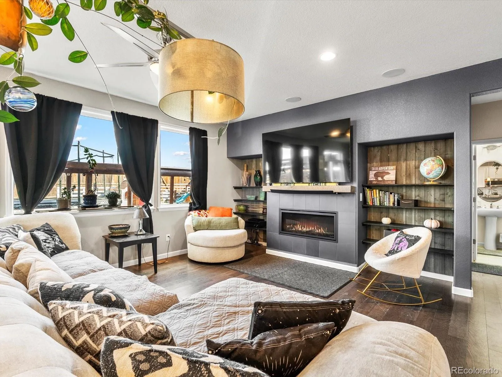 Discover exceptional living in The Hills at Buffalo Run! This stunning residence offers the perfect blend of sophistication, functionality, and comfort, inside and out. The thoughtfully designed floor plan maximizes every inch of its generous space with modern style and practical flow. Step through the front door and be welcomed by a bright, open layout that seamlessly connects the main living areas. The chef’s kitchen impresses with 42” white cabinetry topped with crown molding, slab granite counters, double ovens, Frigidaire Gallery appliances (including a 5-burner gas cooktop), and an oversized island perfect for gatherings. A casual dining nook and large formal dining room provide ideal settings for everyday meals or entertaining. The great room is warm and inviting, centered around a sleek gas fireplace and large windows that fill the space with natural light. A main-level office/den and powder bath add convenience, along with exceptional storage, including a walk-in coat closet. Upstairs, retreat to a private primary suite with a spacious sitting area, spa-inspired 5-piece bath, and expansive walk-in closet. Two additional bedrooms, each with its own walk-in closet, share a beautifully designed dual-sink bath. A versatile loft and well-placed laundry room make the upper level as functional as it is comfortable. Additional upgrades: Paid-off solar panels, dual A/C and furnace systems (one per level), and built-in surround sound in the family room. Situated on one of the largest lots in the community, this property offers both space and privacy. The unfinished basement (with 9’ ceilings and rough-in plumbing) provides endless potential for future customization. Outside, enjoy a covered front porch, manicured landscaping, and a private backyard backing to open space. With a 3-car garage, quick access to E-470, and Buffalo Run Golf Course just minutes away, this home delivers the ultimate blend of luxury, location, and lifestyle.