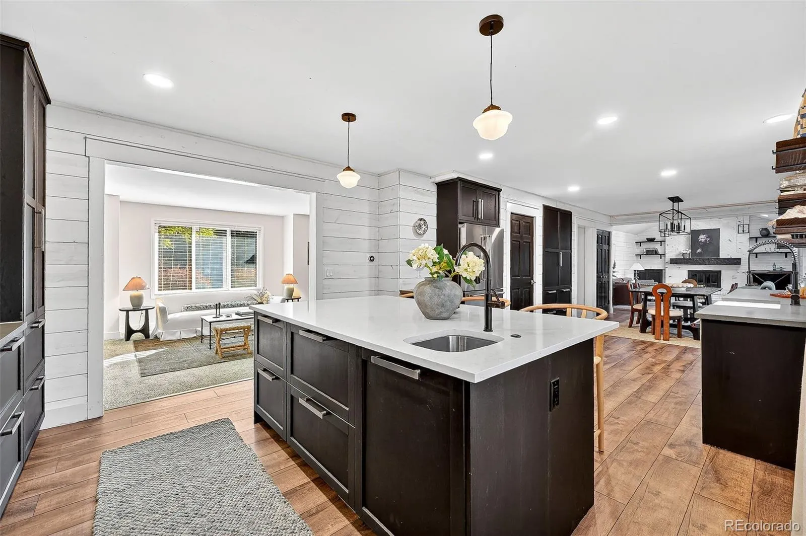 Nestled in the quiet Andover Glen neighborhood, surrounded by mature trees and beautifully maintained homes, this remodeled single-family residence is a standout at this price point. Gorgeous curb appeal and formal entryway welcome you home. The main level offers two inviting living areas—one with vaulted ceilings and a striking fireplace, the other ideal as a family room, playroom, or dining space. The open-concept kitchen, dining, and living area is perfect for everyday living and entertaining. The kitchen boasts designer upgrades including a pot filler, modern cabinetry with floating shelves, five-burner gas range with hood, prep sink, pantry, and two-toned quartz countertops. Sliding doors open to a covered deck and expansive, private fenced backyard. A charming updated powder room, office with French doors, and mudroom/laundry complete this level. Upstairs, you’ll find four spacious bedrooms, all with new plush carpet and fresh paint. The primary suite is a true retreat with a newly remodeled spa-like bathroom and walk-in closet. The secondary bathroom is also beautifully updated with modern finishes. Additional highlights include brand-new interior paint and carpet, updated exterior paint, custom window treatments, shiplap and designer touches, a finished basement, central A/C and forced-air heat, new electrical panel (2020), and a Class 4 hail-resistant roof. Three-car attached garage.