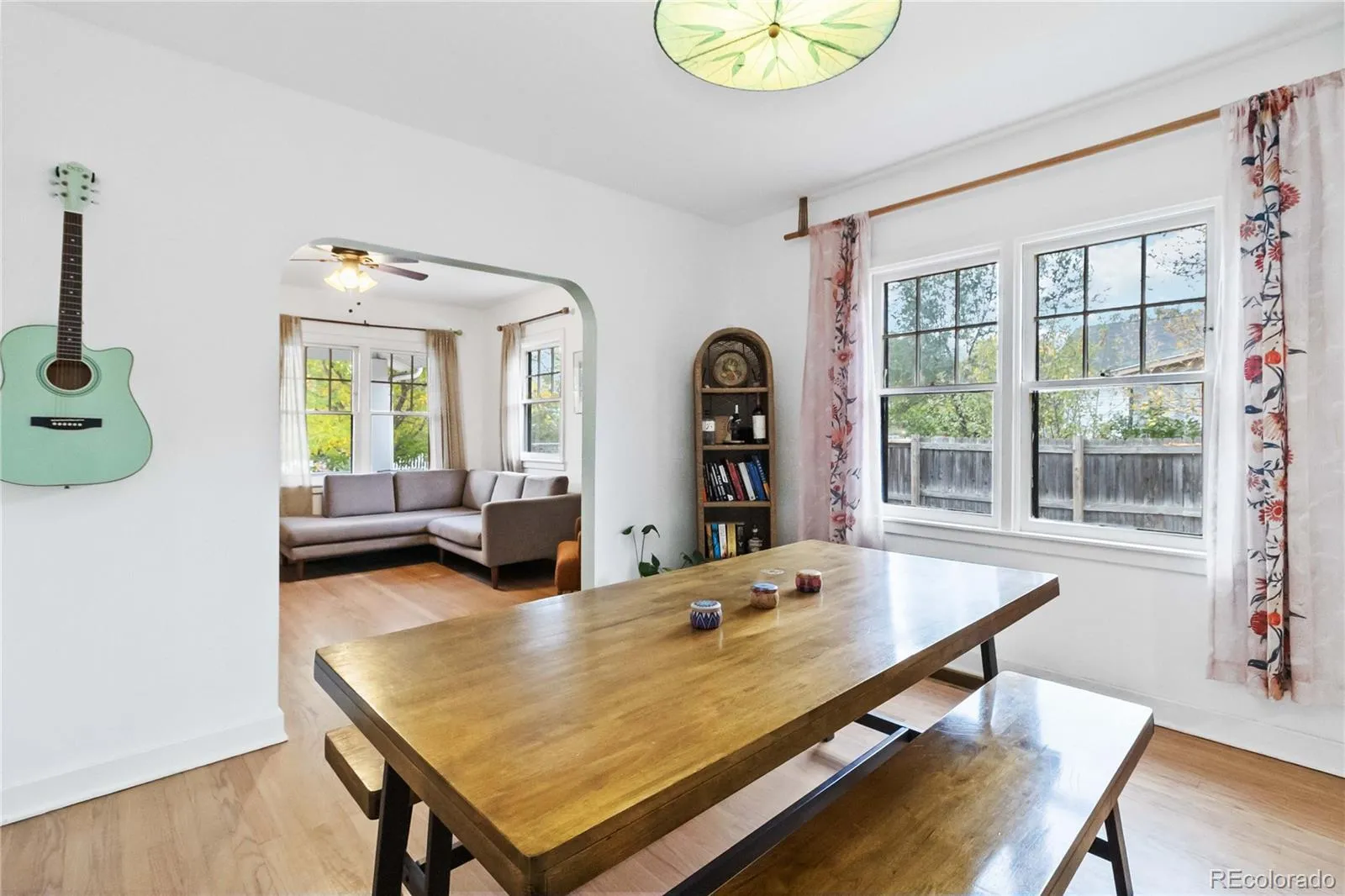 Discover vintage character blended with thoughtful updates in this inviting 3-bedroom, 1-bath bungalow located in Denver’s vibrant Barnum neighborhood. Set on a quiet street with a welcoming front porch, this home offers warm natural light, beautiful hardwood floors, and a functional layout designed for comfortable living. Inside, the living and dining spaces flow effortlessly with refinished wood flooring and arched openings that enhance the home’s charm. The kitchen features updated flooring, an added dishwasher and garbage disposal, and cheerful design accents. The remodeled bathroom includes new flooring, sink, and toilet completed about a year and a half ago, with a creative tiled accent wall that adds a modern touch. Recent updates include a new roof and sewer line completed approximately five years ago, an upgraded electrical panel with AFCI and GFCI protection, refinished wood floors, newer washer and dryer, fresh paint throughout much of the interior, a recently painted garage exterior, and a new water heater installed five months ago. The back flex room—redone with new floors and walls—offers space for a home office, creative studio, or mudroom. A private yard and detached garage complete this gem, with convenient access to parks, shops, and downtown Denver. This well-maintained home combines character, updates, and location—perfect for anyone looking to enjoy the best of Denver living. This home qualifies for the community reinvestment act providing 1.75% of the loan amount (up to $7000 max) as a credit towards buyer’s closing costs, pre-paids and discount points. ASK YOUR AGENT.
