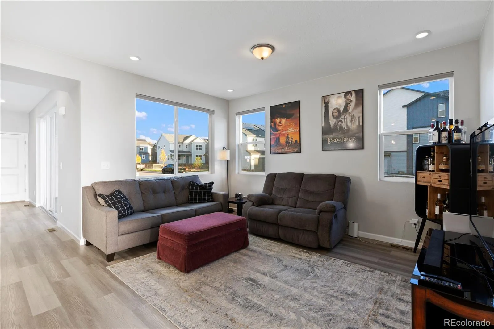 Welcome home to this beautiful 4 bedroom, 3 bathroom, oversized 2 garage home located just 7 minutes from Old Town! This home sits on a corner lot and has tons of natural light throughout! Enter this home through the fenced and xeriscaped front yard! Enjoy the spacious front patio with peaceful views! Head inside to find beautiful Luxury vinyl plank flooring throughout the entire main level! The main level office has great natural light and views of the mountains! Enjoy the spacious formal dining room with plenty of room for all your great get togethers! A chef’s kitchen stands at the center of this home, complete with quartz countertops, sleek cabinetry, stainless steel gas cooktop with hood, double wall oven, stainless steel dishwasher, stainless steel refrigerator, built-in microwave, and a walk-in pantry! The huge island offers plenty of seating! This kitchen is a cooks delight! The large living room adjoins this great kitchen and is large enough for all your entertaining needs, or just hanging out! Walk-out to your large private patio, with plenty of space for your grill and patio furniture! There is a 1/2 bath conveniently located to finish out this level! Head upstairs to find the private owner’s suite which boasts a spacious walk-in closet and a private bath with modern finishes, while three additional secondary bedrooms share a full bath. The convenient laundry room completes the second floor! The community will feature walking trails, a park, wetlands, and a dog park scheduled to be completed in 2026. With a prime Fort Collins location, you are just minutes from CSU, I-25 and only a short drive or bike ride to the breweries, shops, and restaurants of historic Old Town. With A/C for those warm Colorado summer days, a fully paid off solar system and an electric car charging port in the garage, there is nothing left to do here but move in!