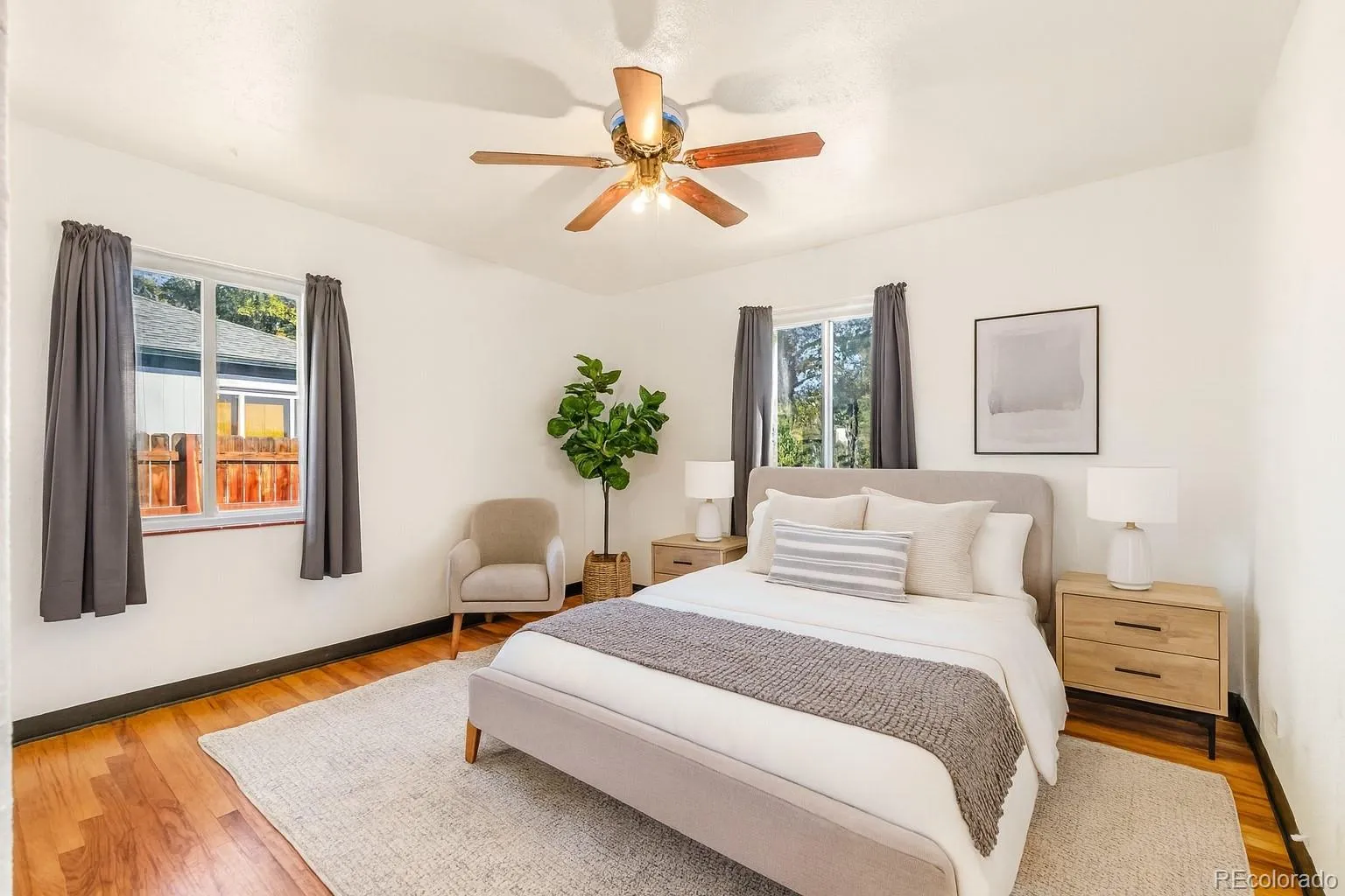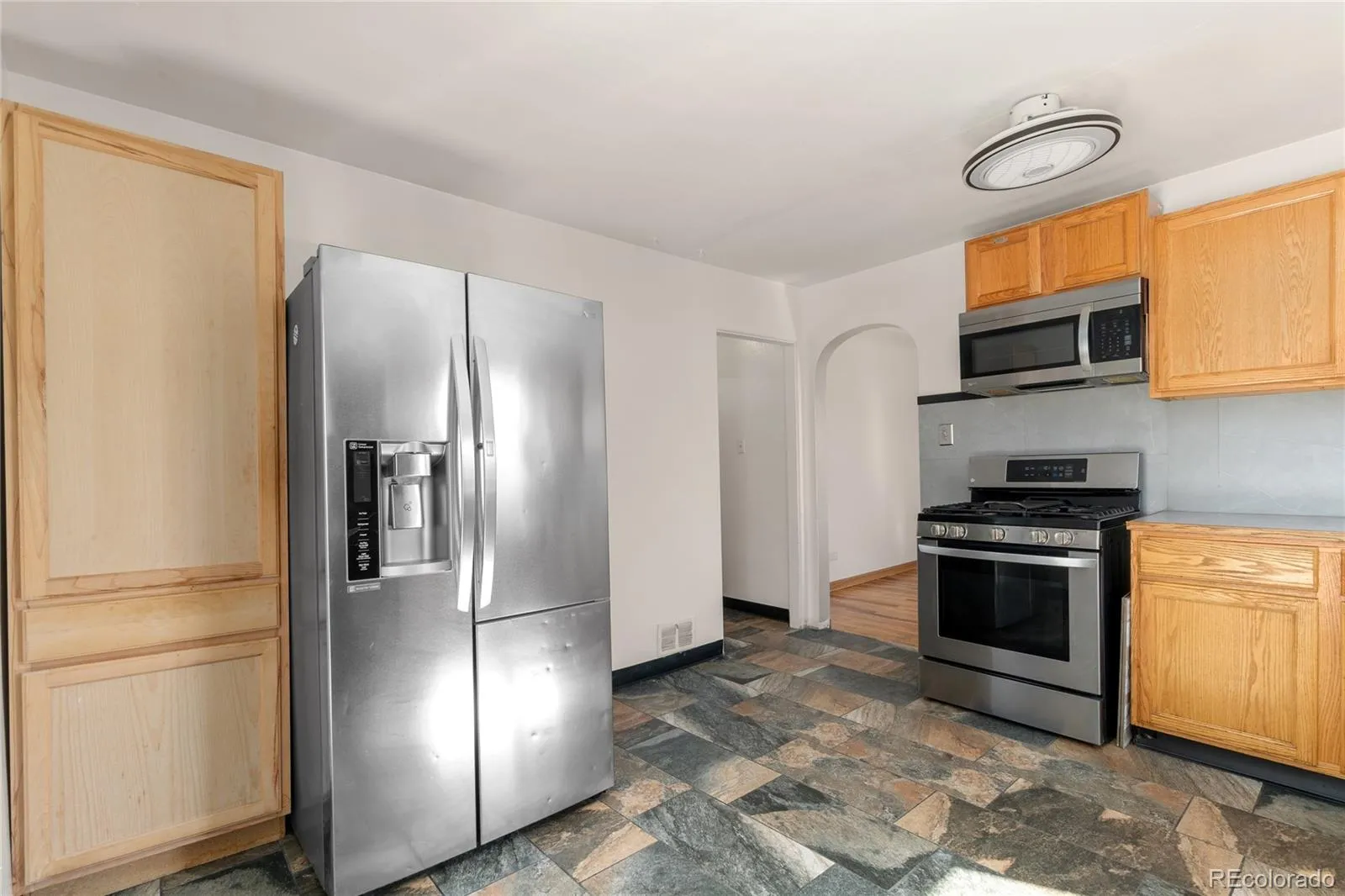 Welcome home to this inviting property that blends classic charm with modern convenience! The sunny living area features gleaming original wood floors that flow beautifully into the spacious main-floor primary bedroom. The updated eat-in kitchen offers stainless steel appliances, stone tile flooring, a pantry, and generous storage—perfect for everyday living. The second bedroom includes brand-new carpet, and a new water heater has just been installed for peace of mind. Some TLC and cosmetic updates will make this gem shine. Enjoy a covered front porch and a large covered rear patio overlooking an established lawn and private fenced backyard with alley access. Some cosmetic updates will make this gem shine. The detached, oversized two-car garage is fully finished and heated with a 220 outlet—ideal for an at-home workshop or studio. A securely gated driveway provides extra parking for an RV, boat, or additional vehicles. Fantastic location just two blocks from the Sheridan Light Rail Station, Lakewood Dry Gulch Park, and only minutes to downtown Denver or I-25 via 6th Avenue. Move-in ready and full of character—this one checks every box!