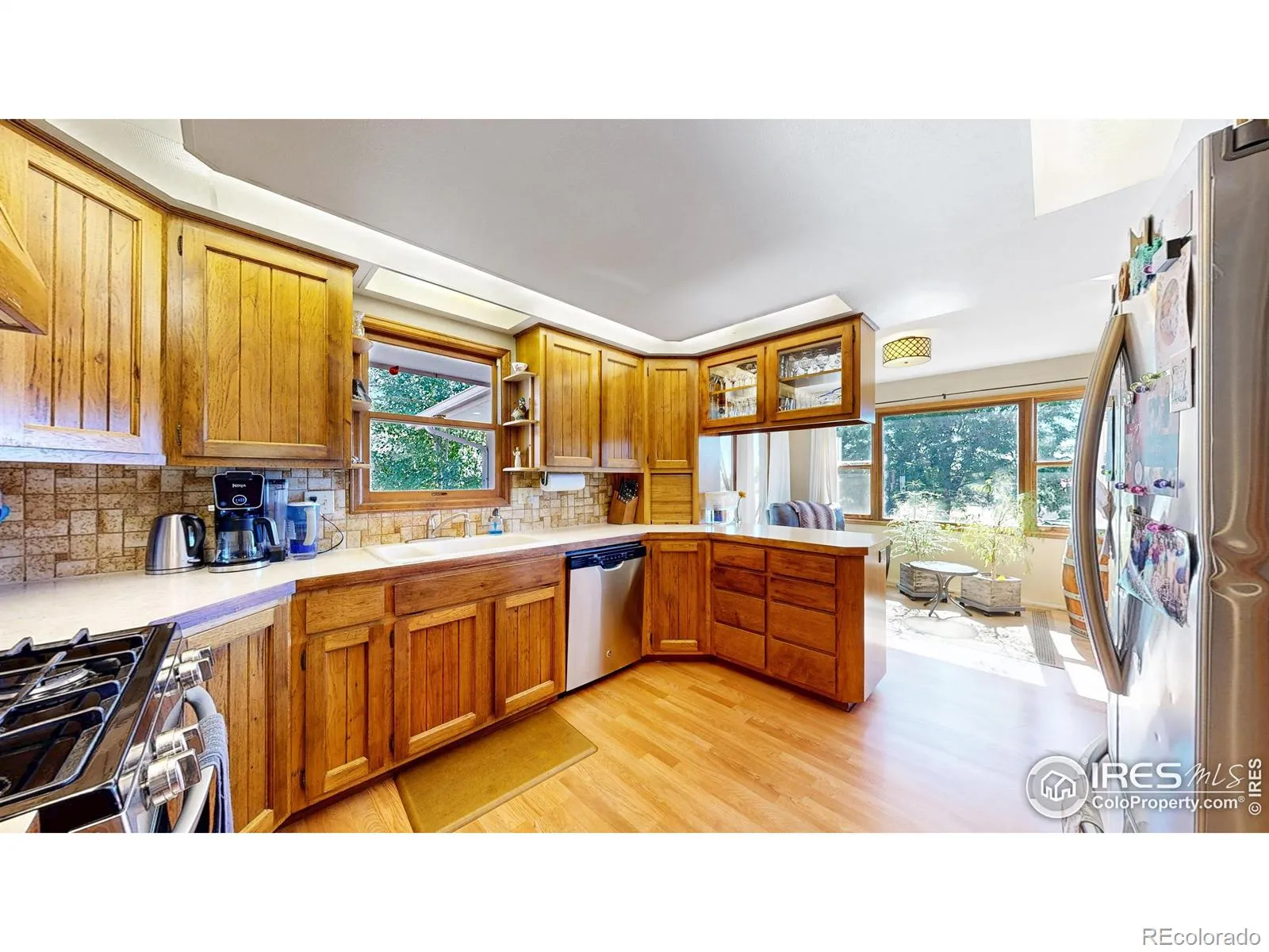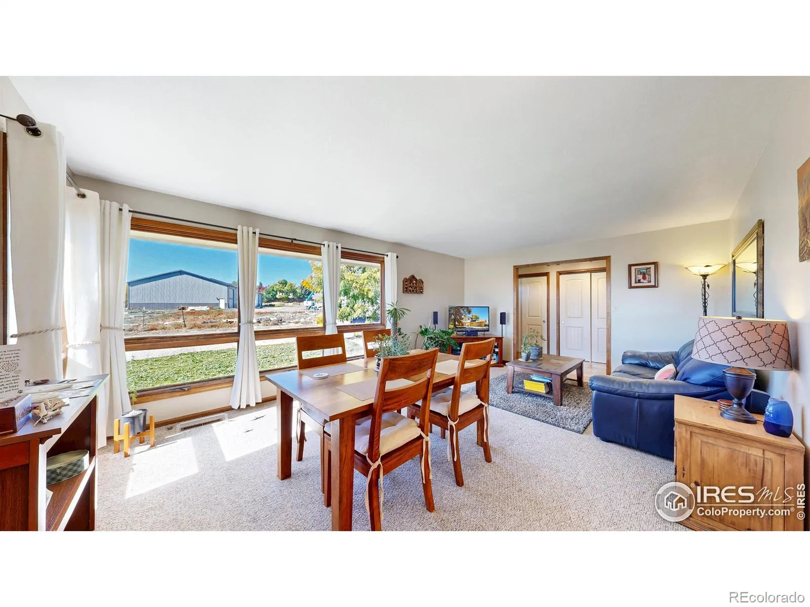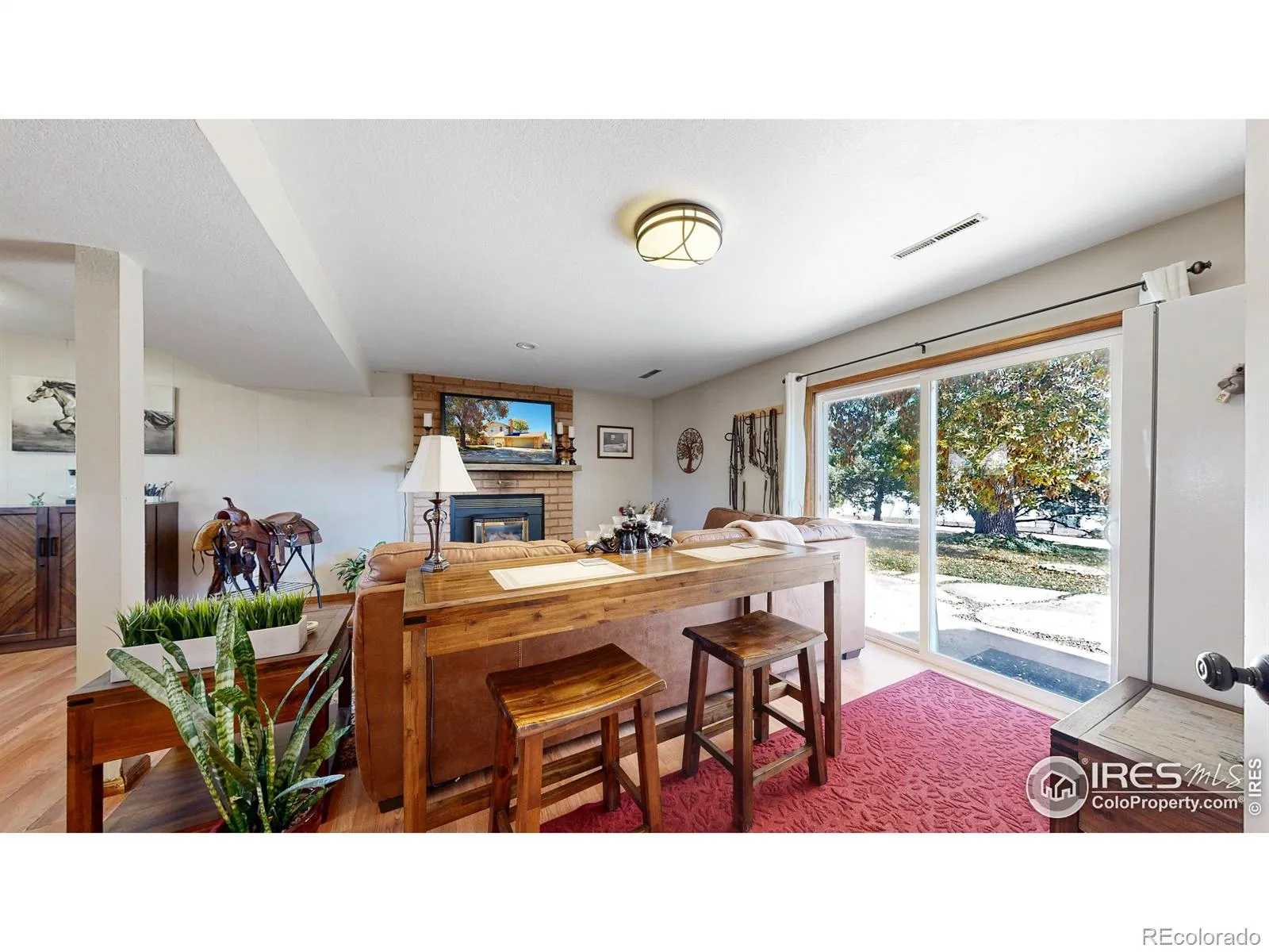 Rare find! Infill 2.33 acre horse property in south Fort Collins. Updated 3 bedroom, 2 bathroom home with multiple living areas with 5 car garage. Home has nice finishes including beadboard kitchen cabinets and wood wrapped range hood, tile backsplash, and stainless appliances including gas range. The upstairs features three bedrooms and a full bathroom. Multiple living areas include a living room off of the kitchen and a large open family room with fireplace and full bathroom on the lower level. Outdoor space includes covered patio, veggie garden, and mature pine trees.