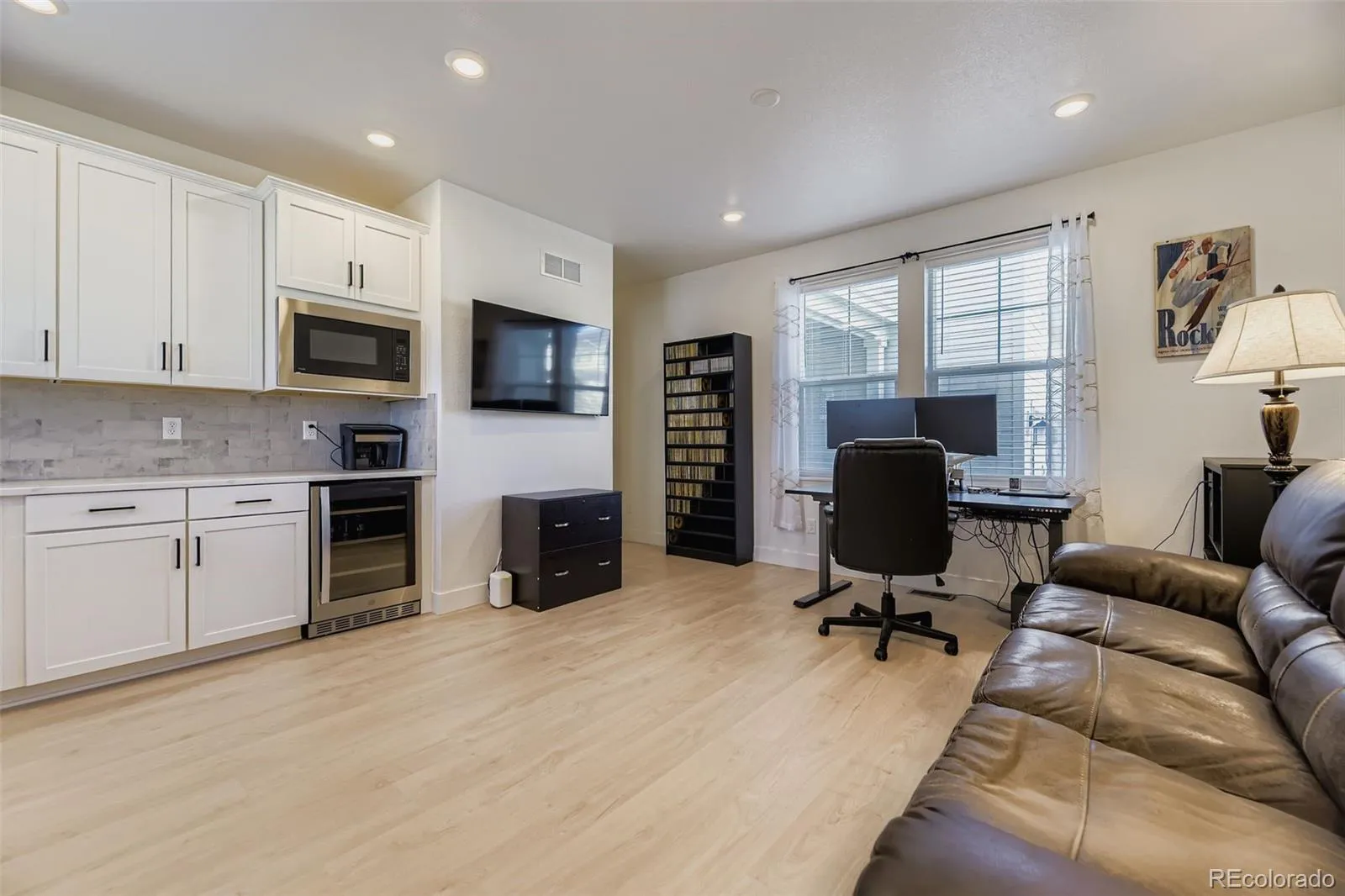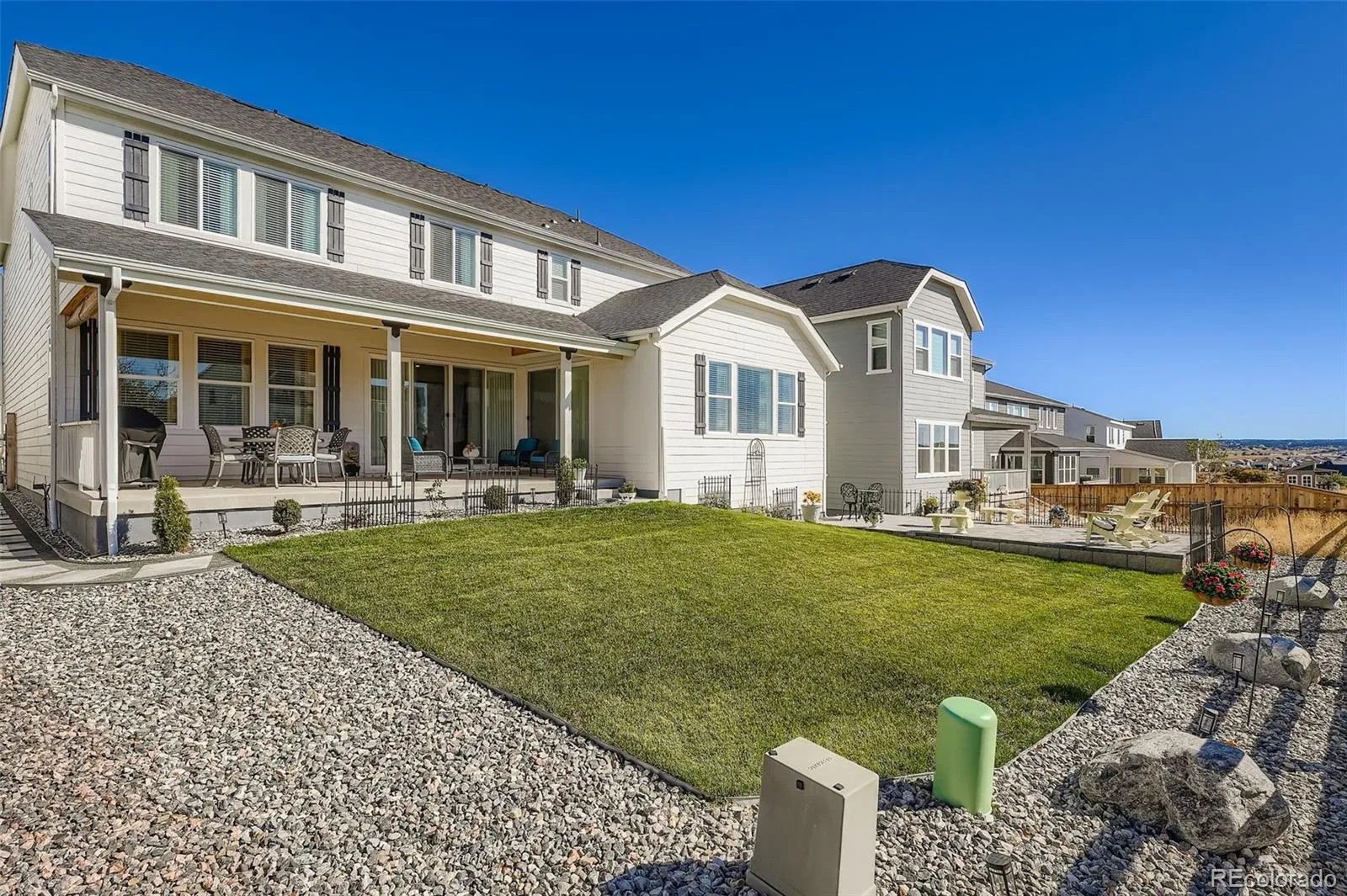Beautiful upgrades throughout including window treatments (window blinds, curtain rods, Hunter Douglas patio door curtains – 2 doors, shutters for all windows), electrical wiring (foyer chandelier, island pendant lighting, primary bath vanity lighting, primary bath chandelier, ceiling fan); light fixtures (foyer crystal chandelier, primary bath chandelier & vanity lights, kitchen chandelier); water softener, garage door window panels, hose spigot in 3rd garage; covered porch, front door; front & rear landscaping, front yard stone planter, paver stone patio in the rear; roof awning over the 2-car garage and more. The NextGen suite is perfect for guests or that teen wanting their own space. Finish the basement for even more living space. Relax on the rear covered patio and entertain on the paver stone patio overlooking the greenbelt/open space.